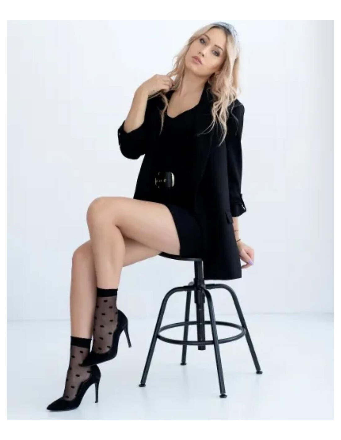 Plonos kojinės 20 den - dekoratyvinis taškų raštas - juodas kaspinas - nematomi sutvirtinimai ant kojų pirštų