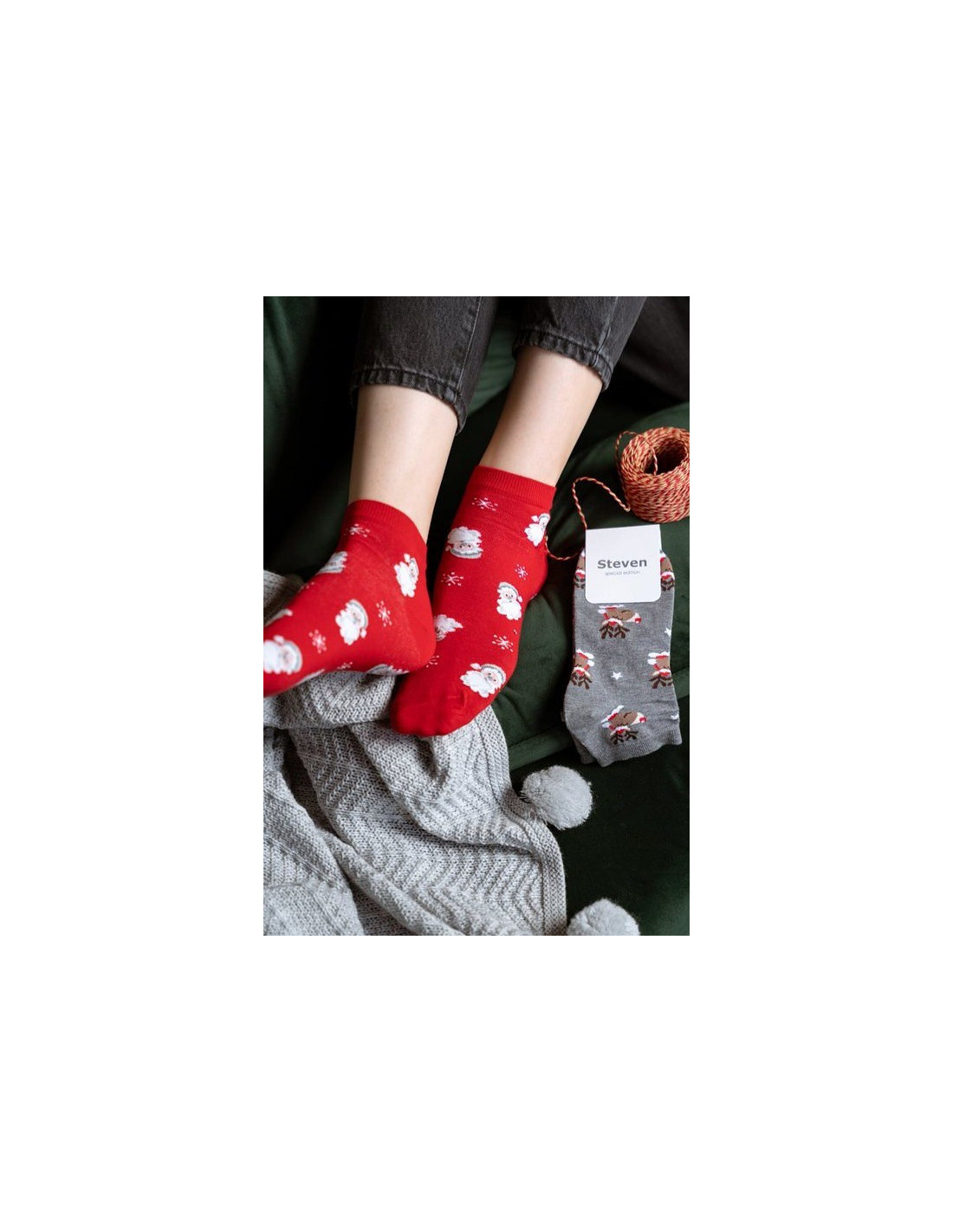 Moteriškos kojinės iš kalėdinės kolekcijos - gaminys iš aukštos kokybės medvilninių siūlų - besiūlė technologija - gaminį galima rinktis iš kelių dizainų ir spalvų - kojinių dydžiai nuo 35 iki 46