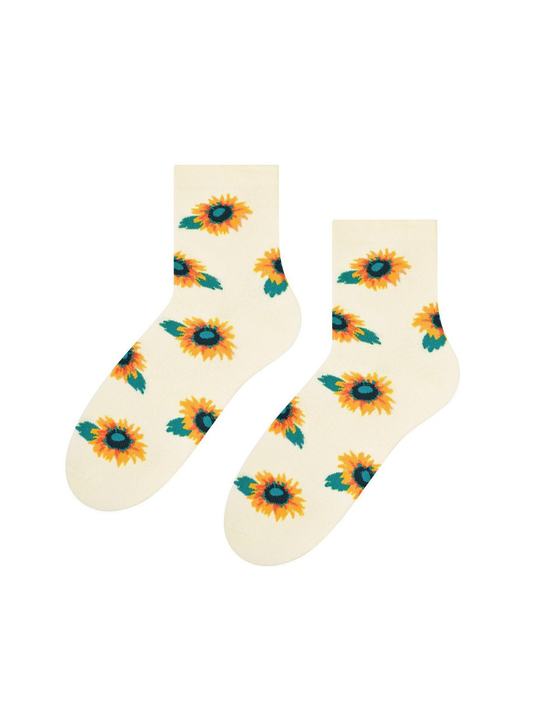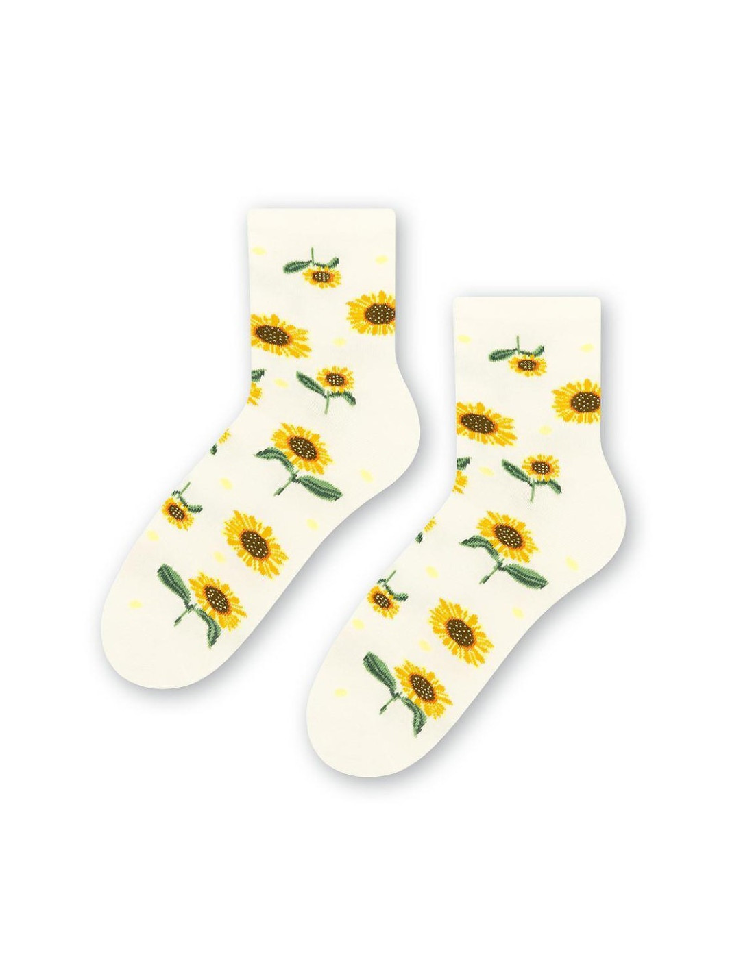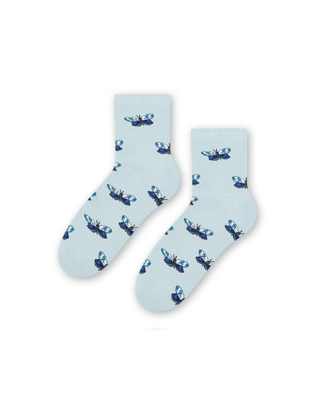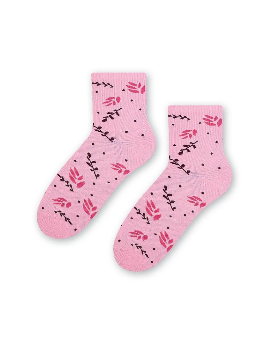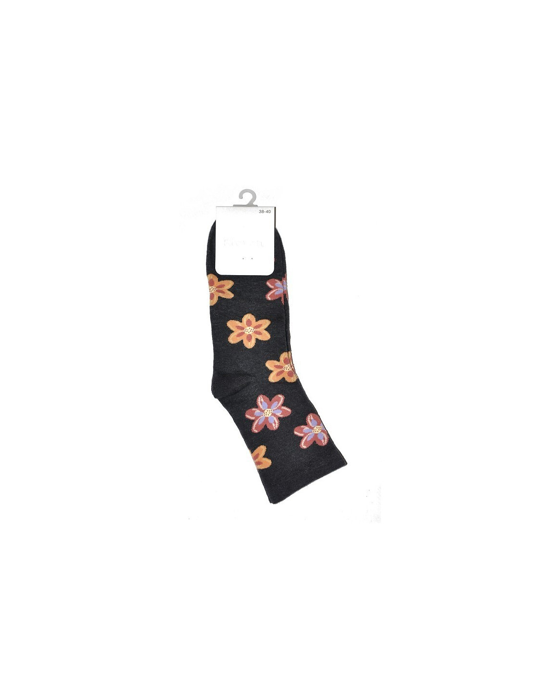 Medvilninės moteriškos kojinės - turtingi raštai ir spalvos - subtilus raištis - plokščia, patogi siūlė