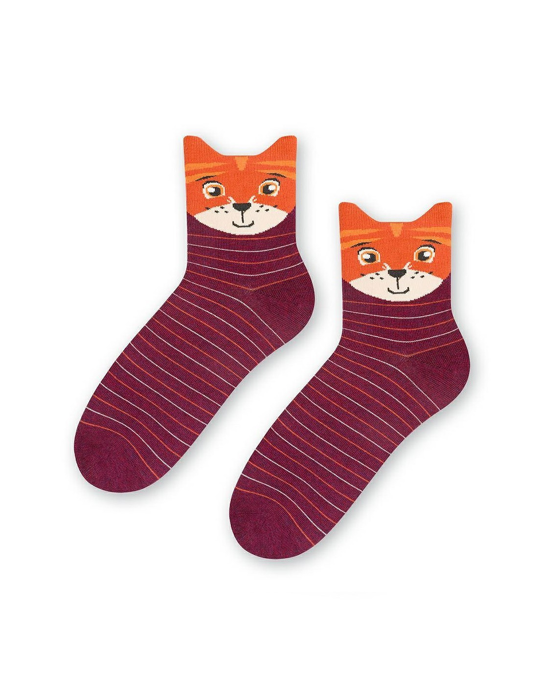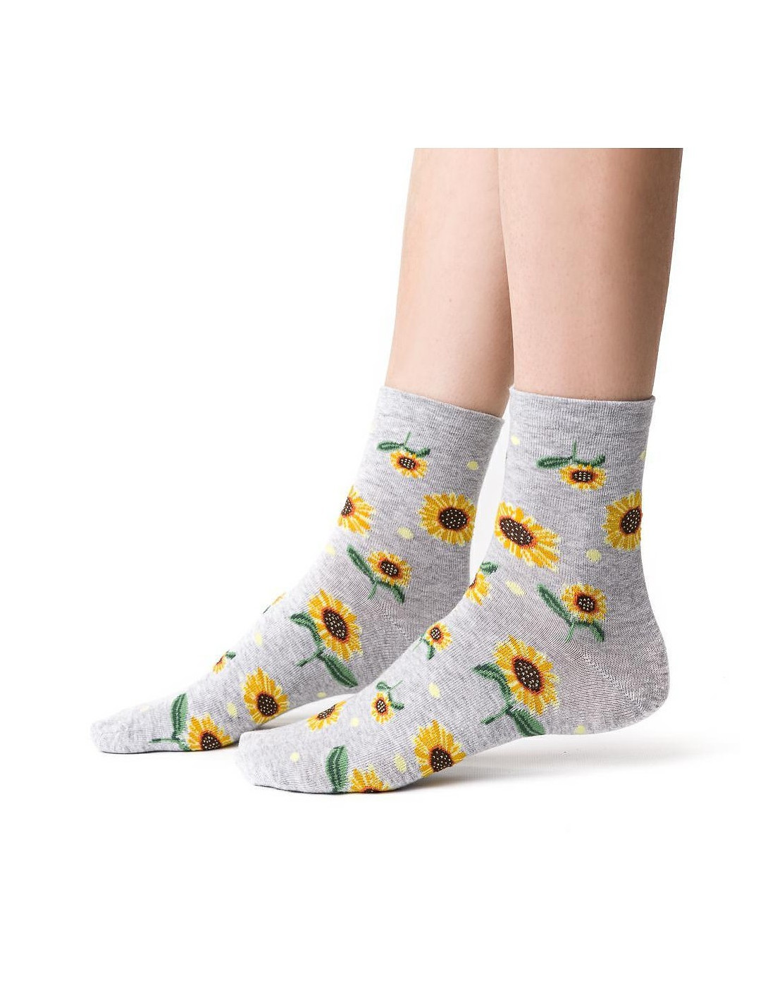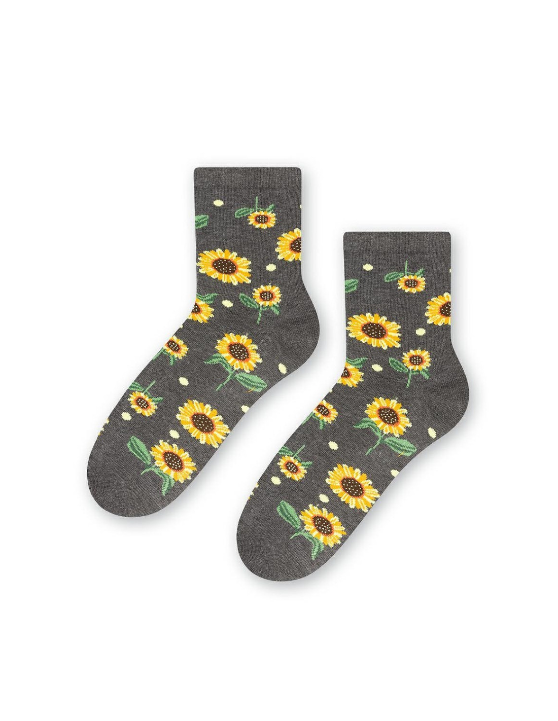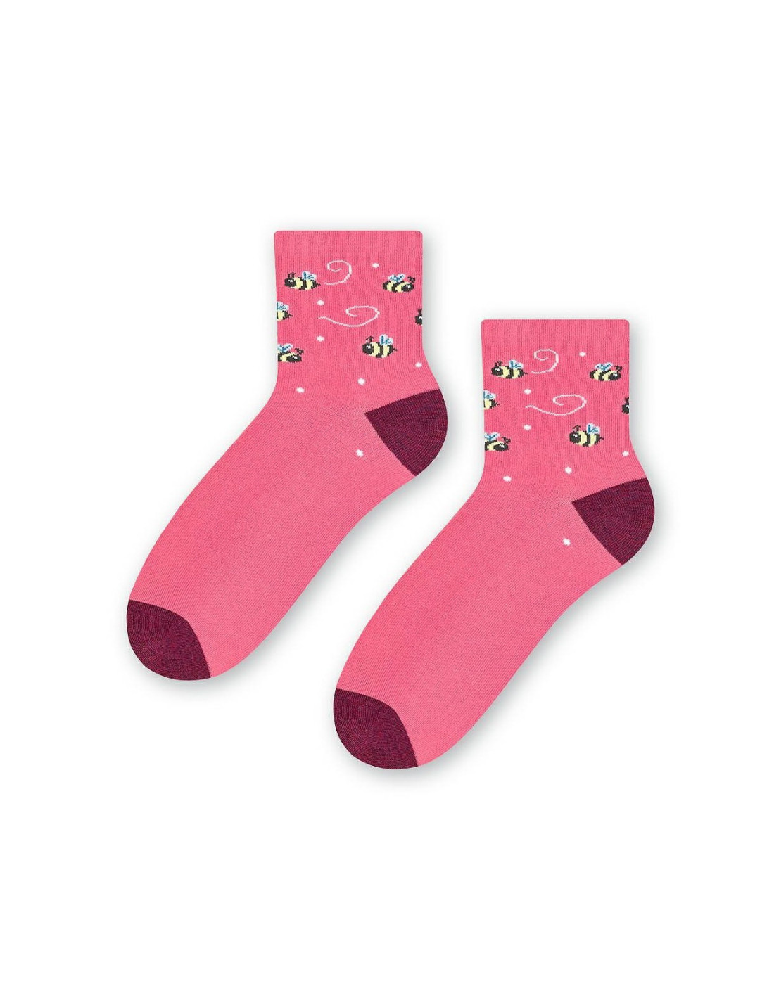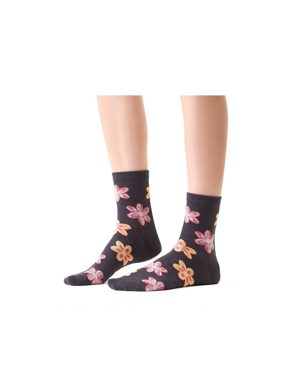 Medvilninės moteriškos kojinės - turtingi raštai ir spalvos - subtilus raištis - plokščia, patogi siūlė