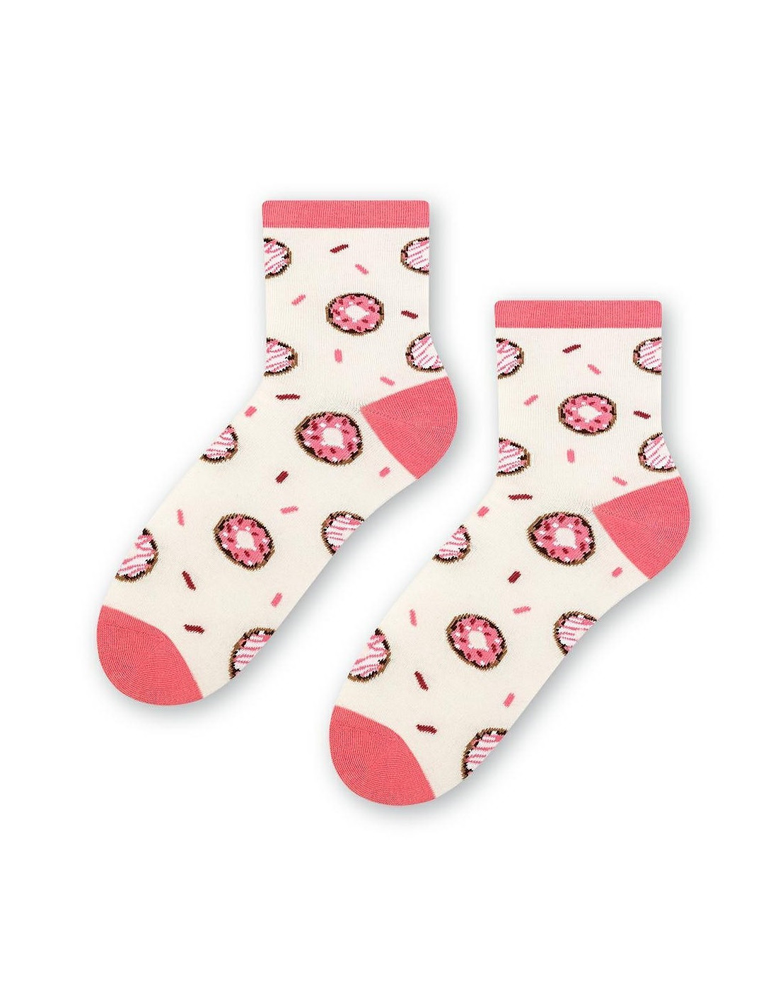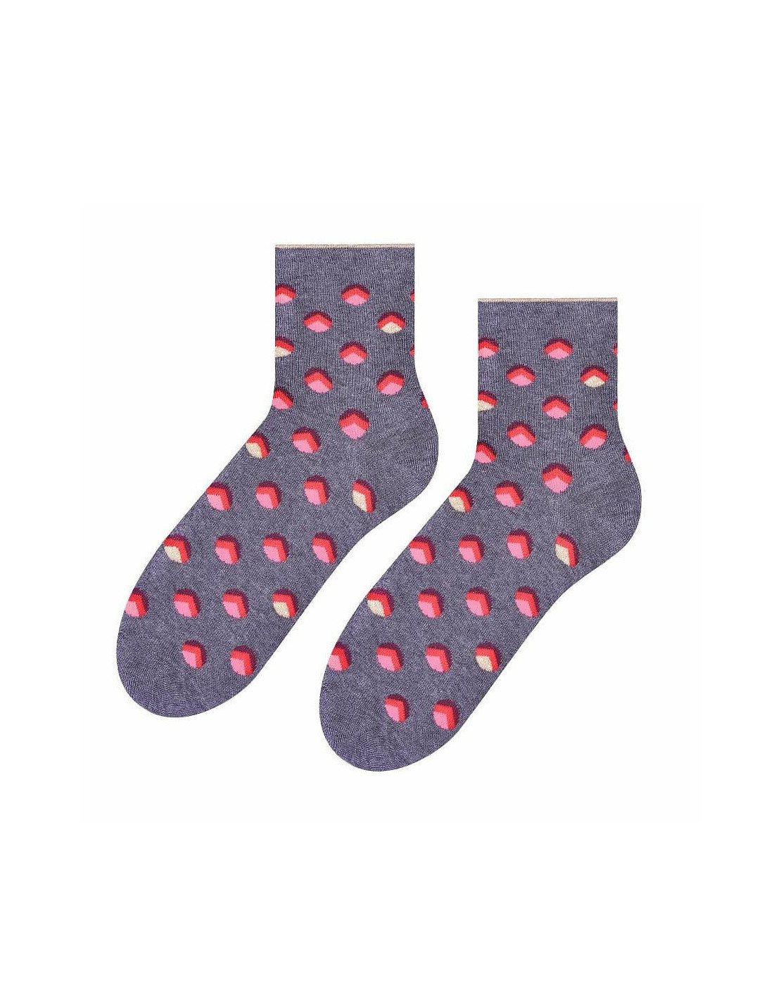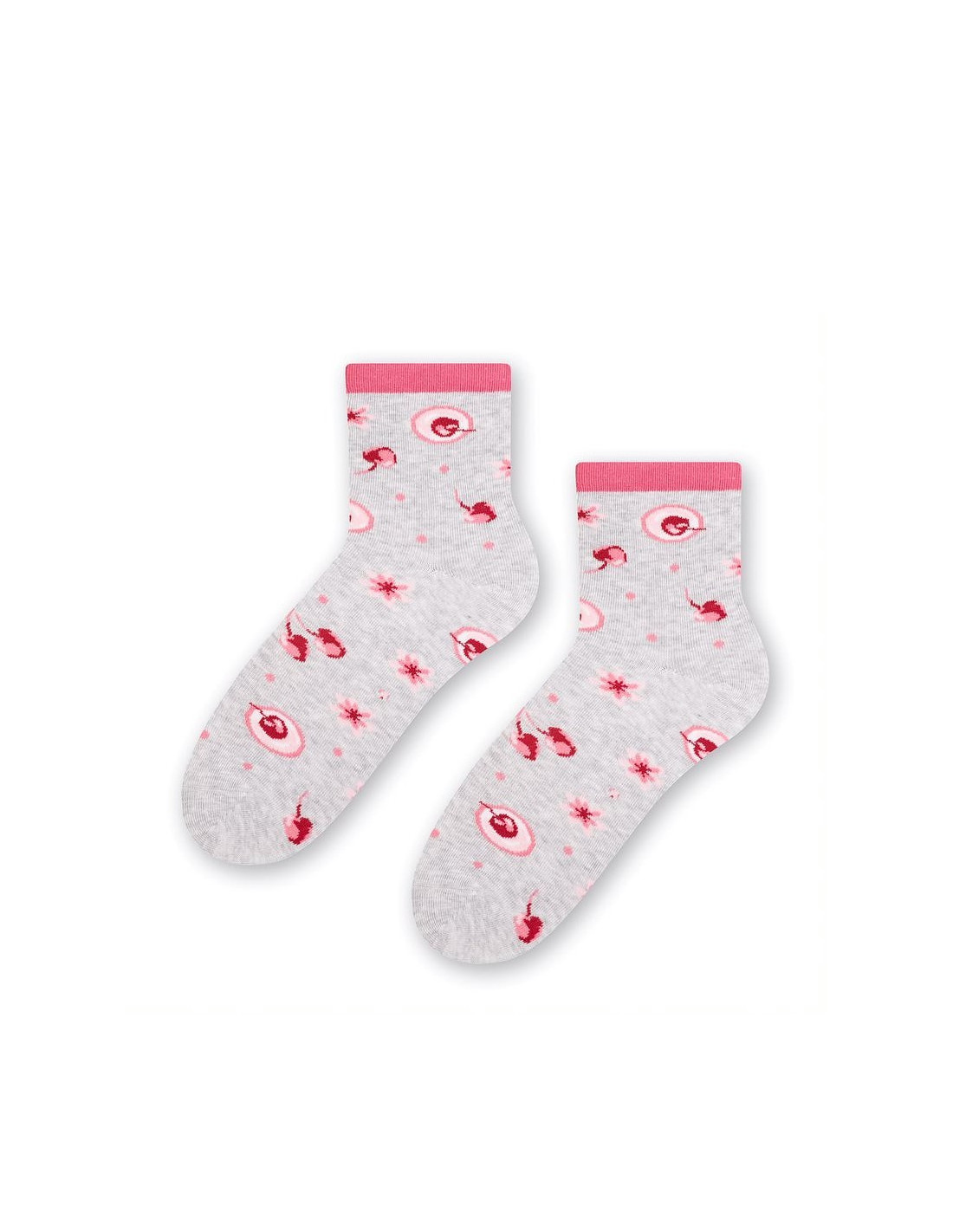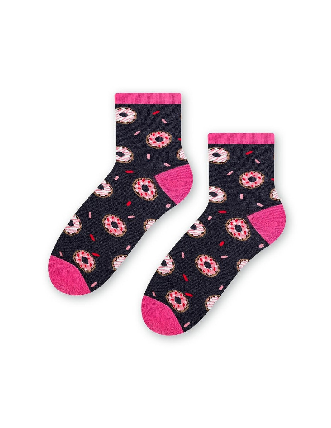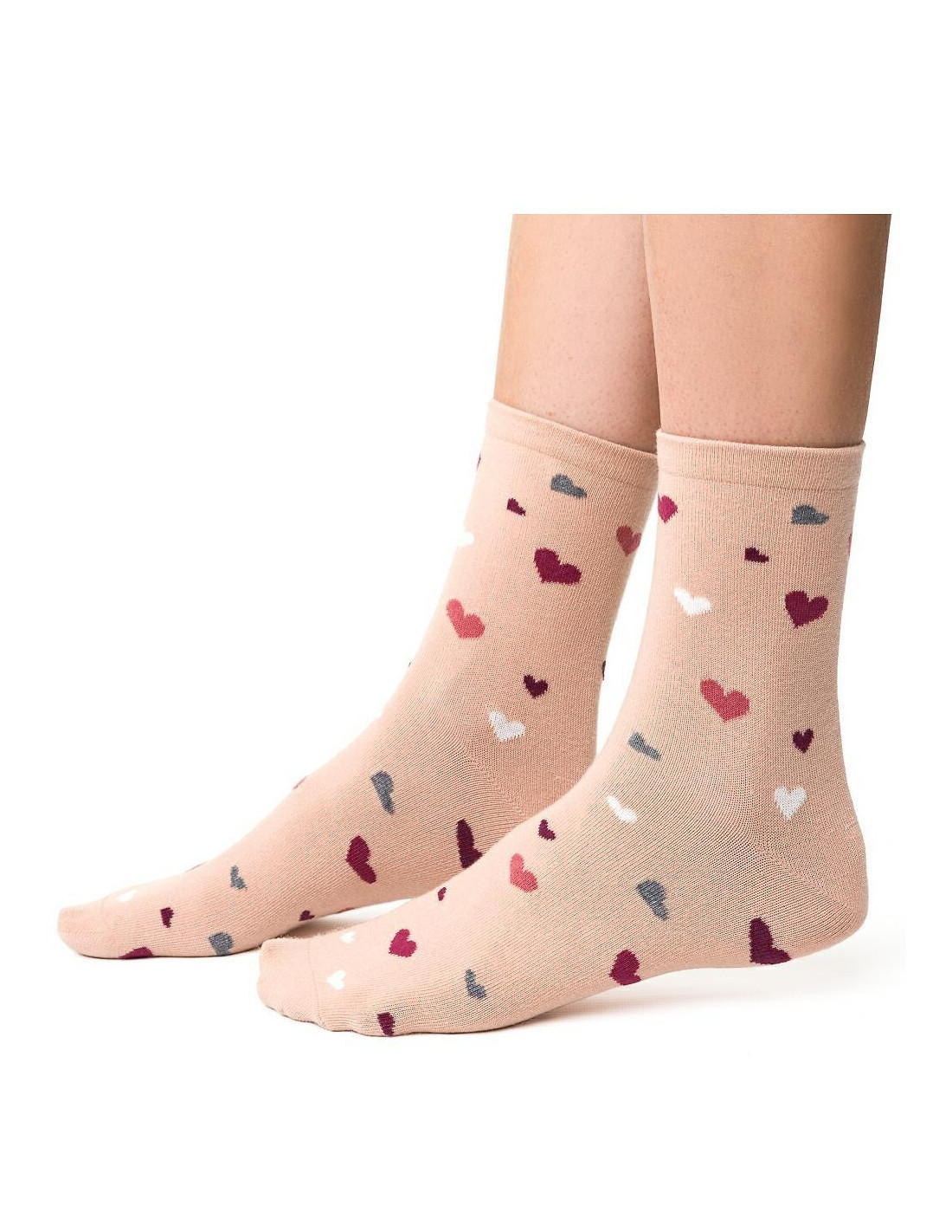 Medvilninės moteriškos kojinės - turtingi raštai ir spalvos - subtilus raištis - plokščia, patogi siūlė
