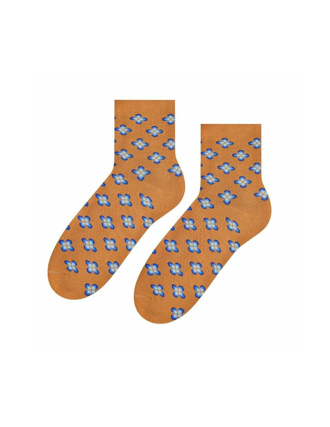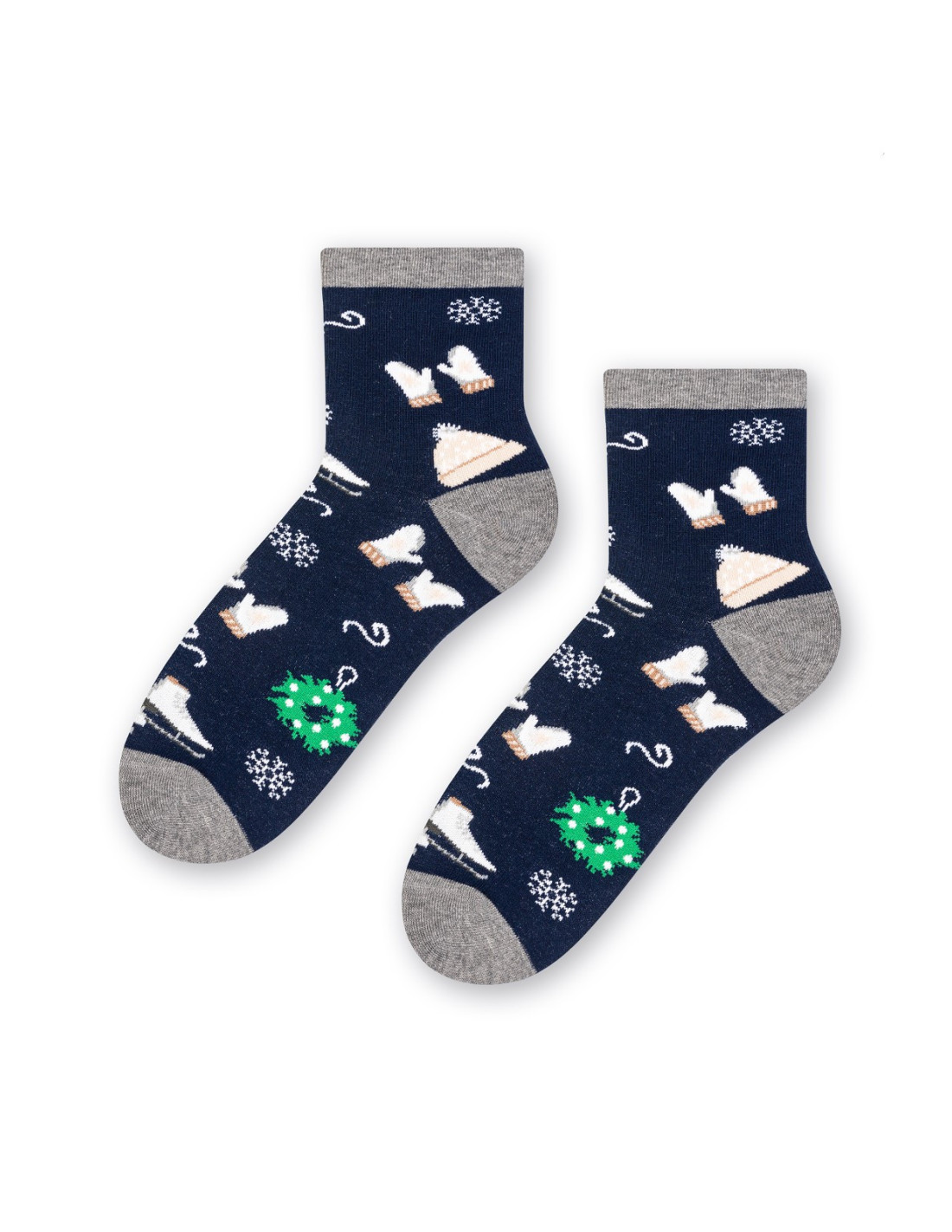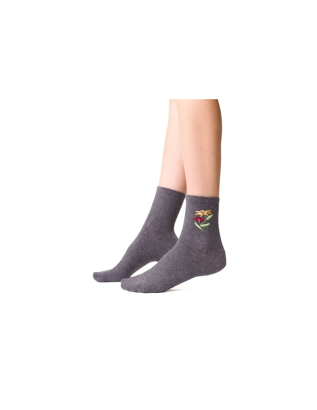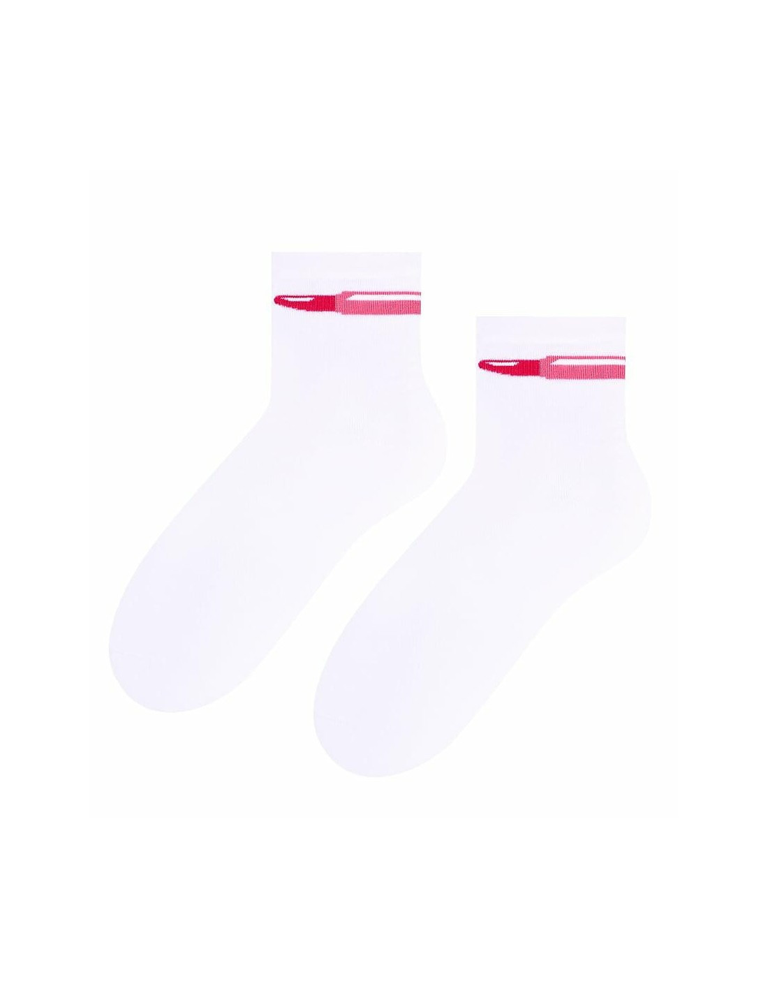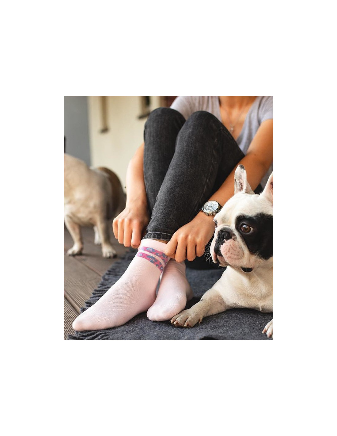 Medvilninės moteriškos kojinės - turtingi raštai ir spalvos - subtilus raištis - plokščia, patogi siūlė