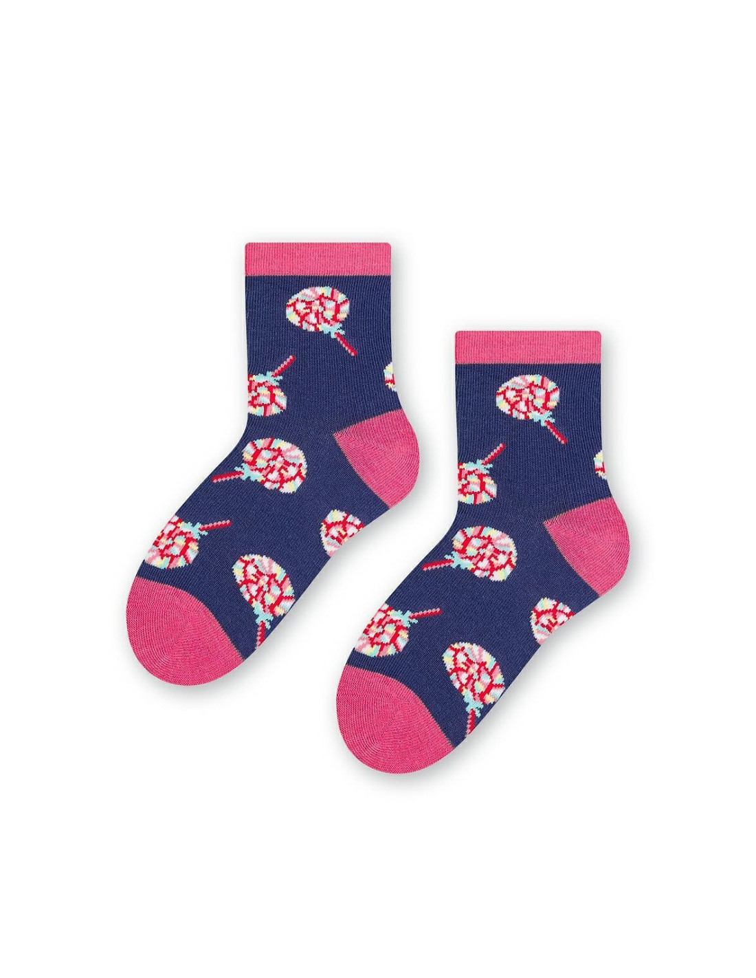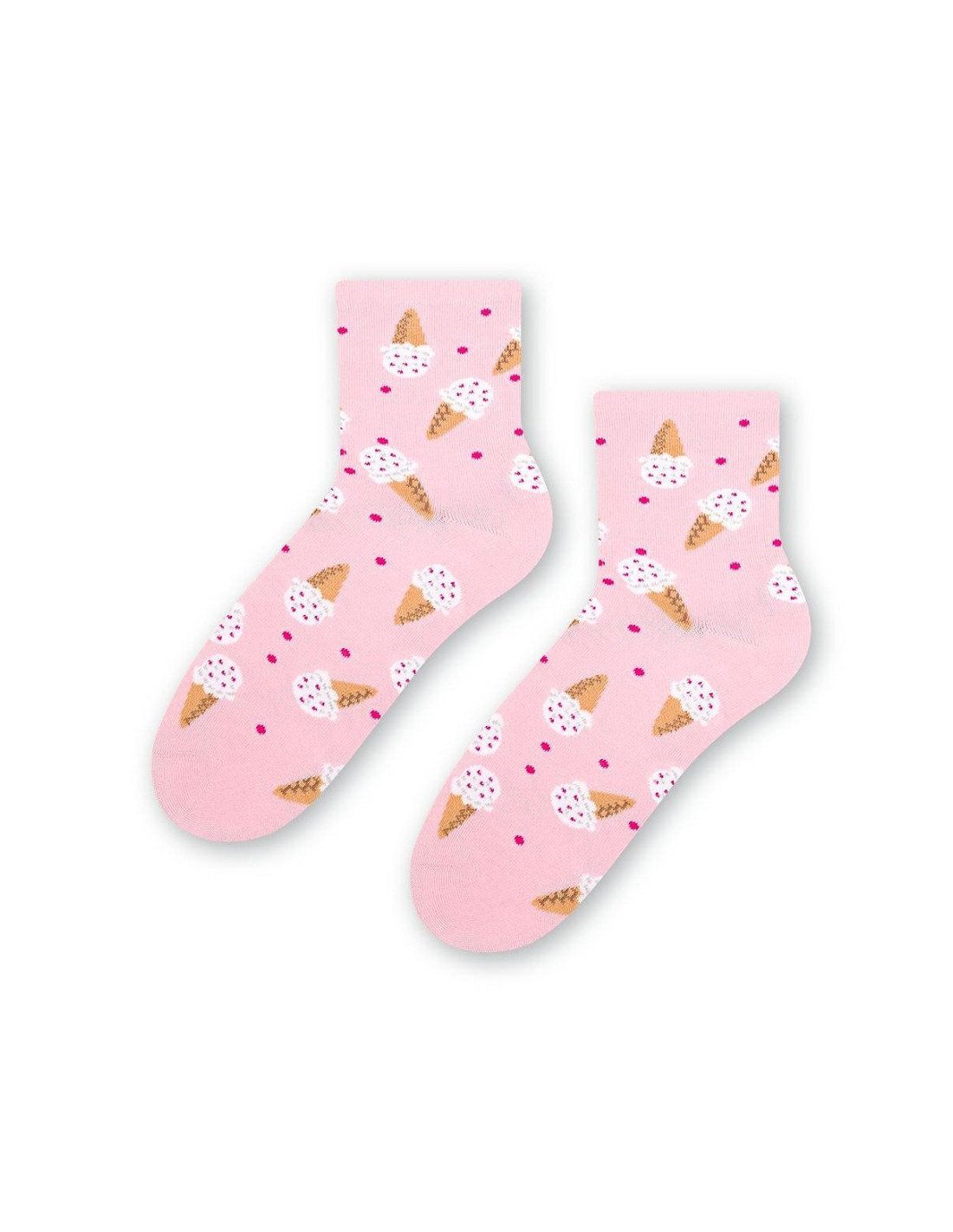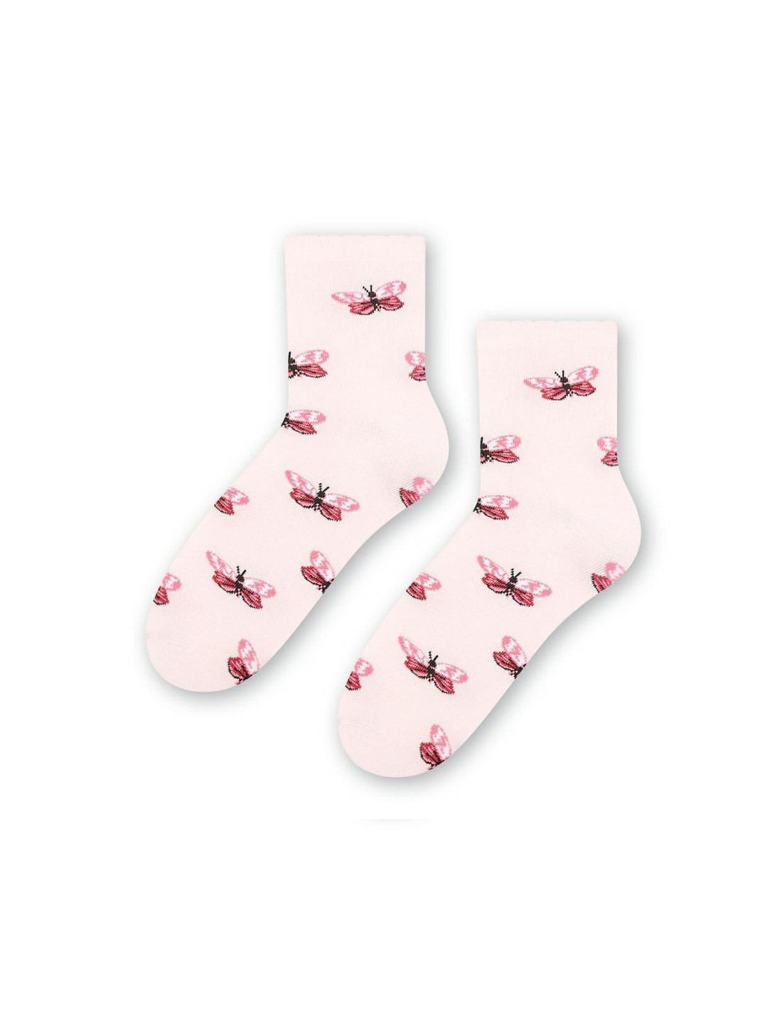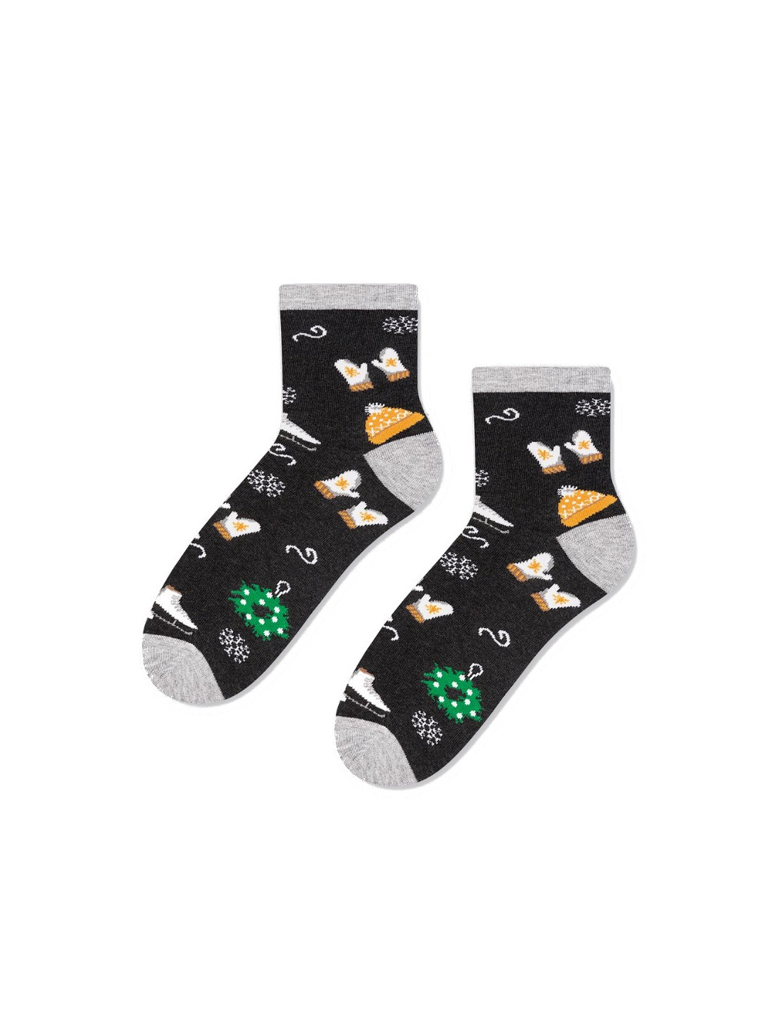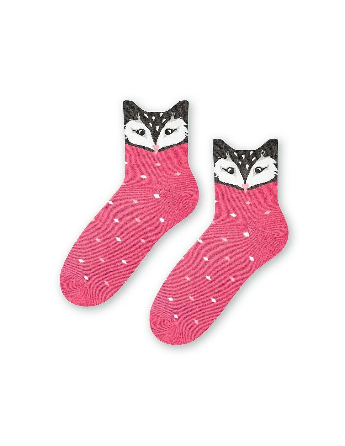 Medvilninės moteriškos kojinės - turtingi raštai ir spalvos - subtilus raištis - plokščia, patogi siūlė