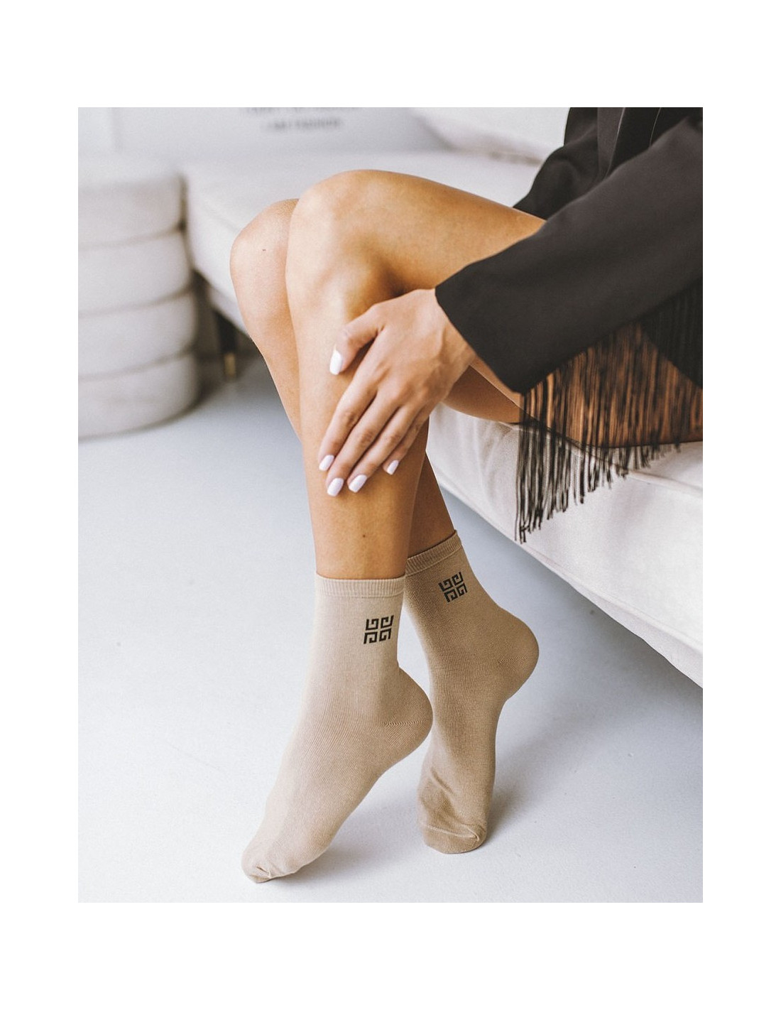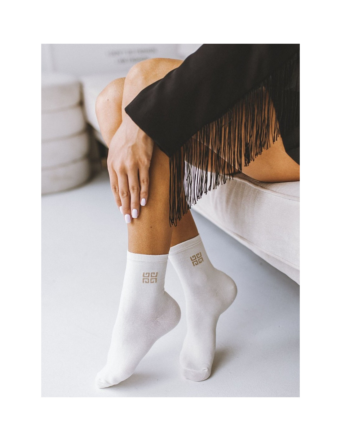 Moteriškos kojinės - aukštos kokybės medvilnė - dekoruotos akį traukiančiu piešiniu su lurekso siūlais