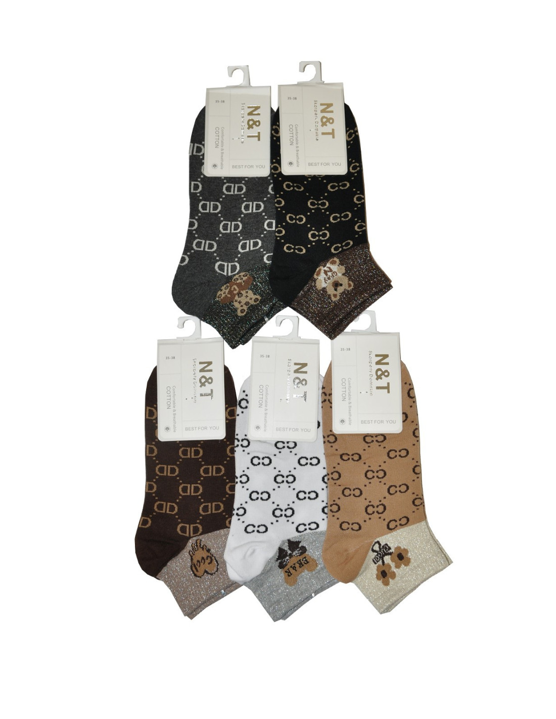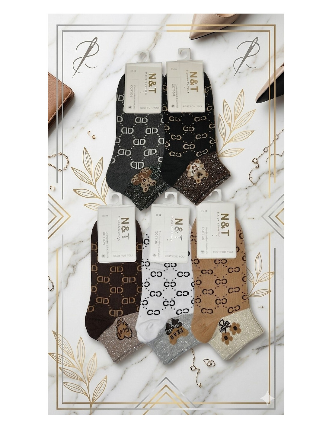 Moteriškos kojinės - aukštos kokybės medvilnė - juostelės, dekoruotos blizgiu liurekso siūlu - galimos spalvos: juoda, ruda, grafito, balta, smėlio spalvos