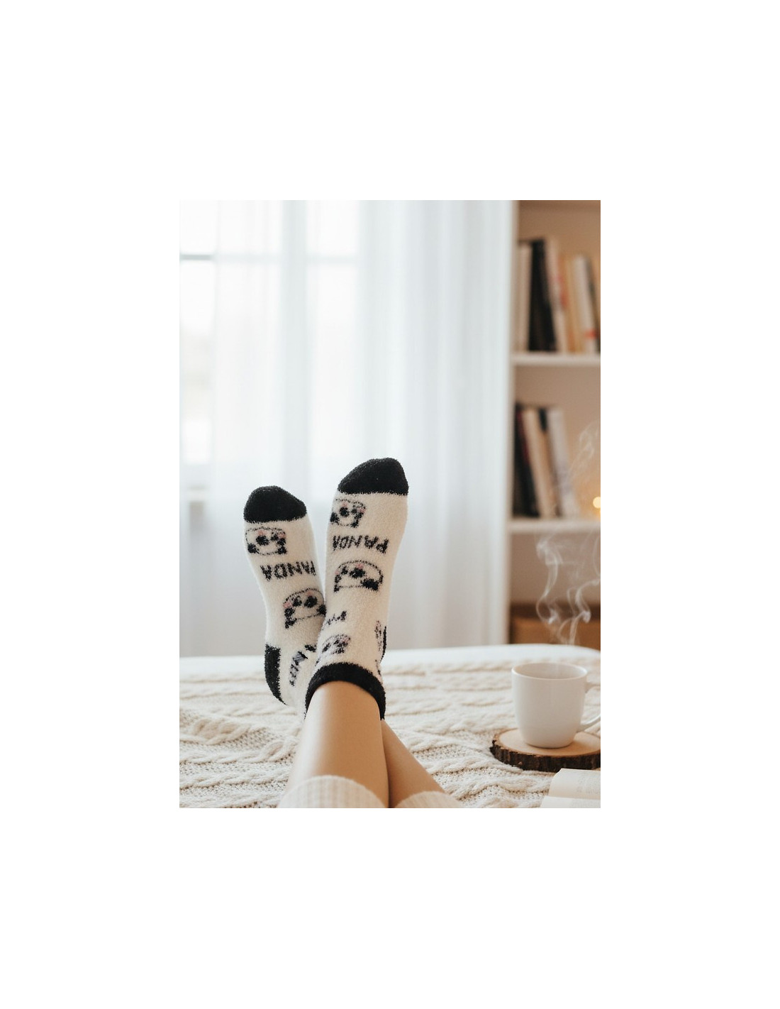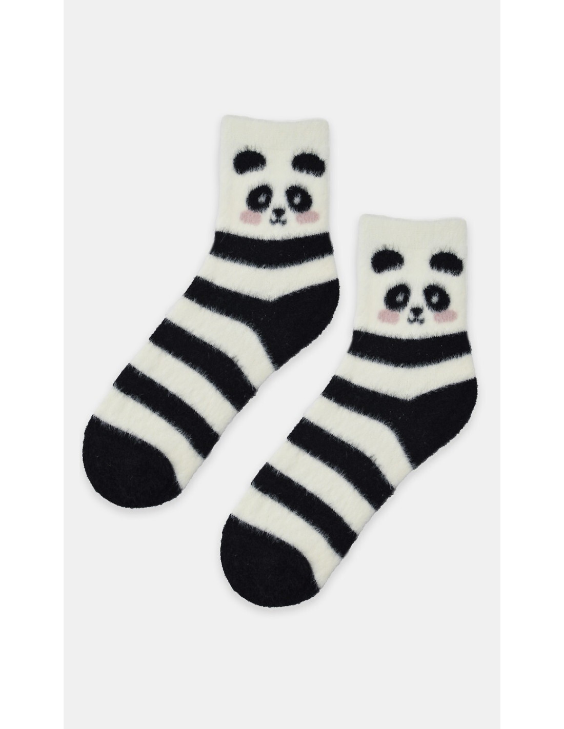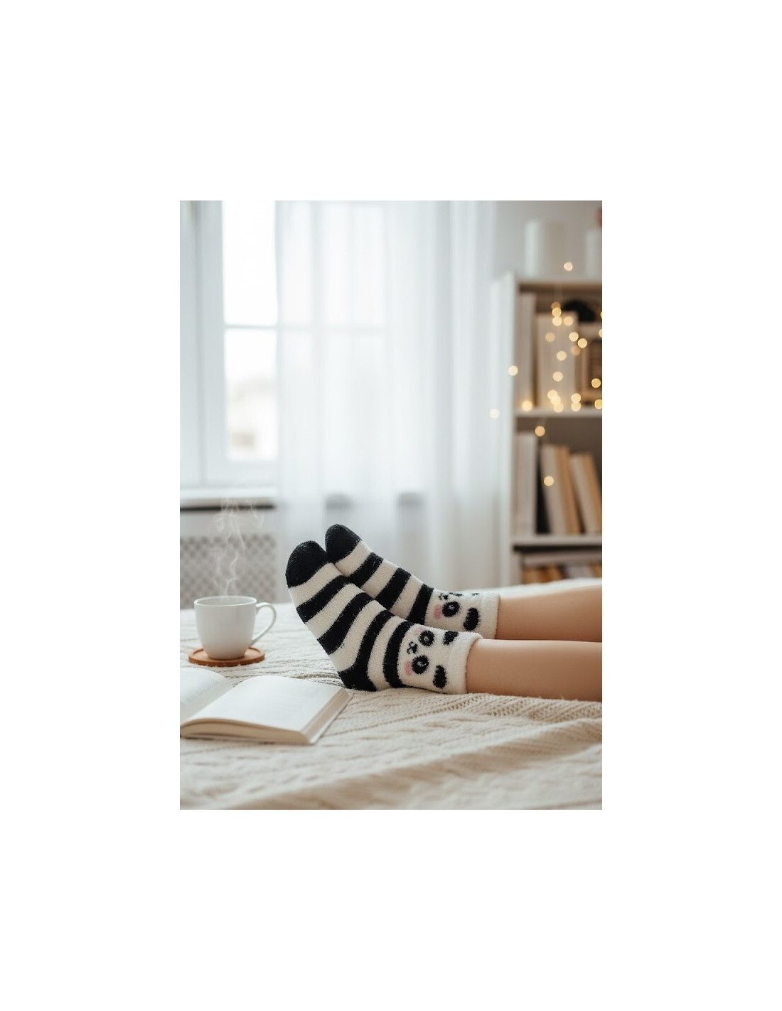 Moteriškos kojinės - minkštas ir purus trikotažas - nespaudžiantis apvadas - pandos ir dryžuotas raštas - idealiai tinka dovanoms