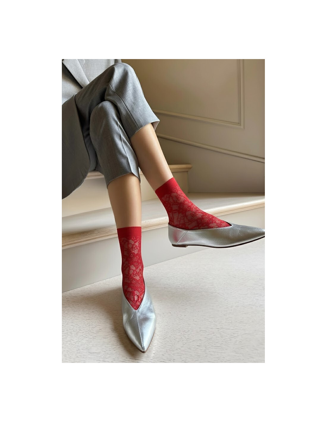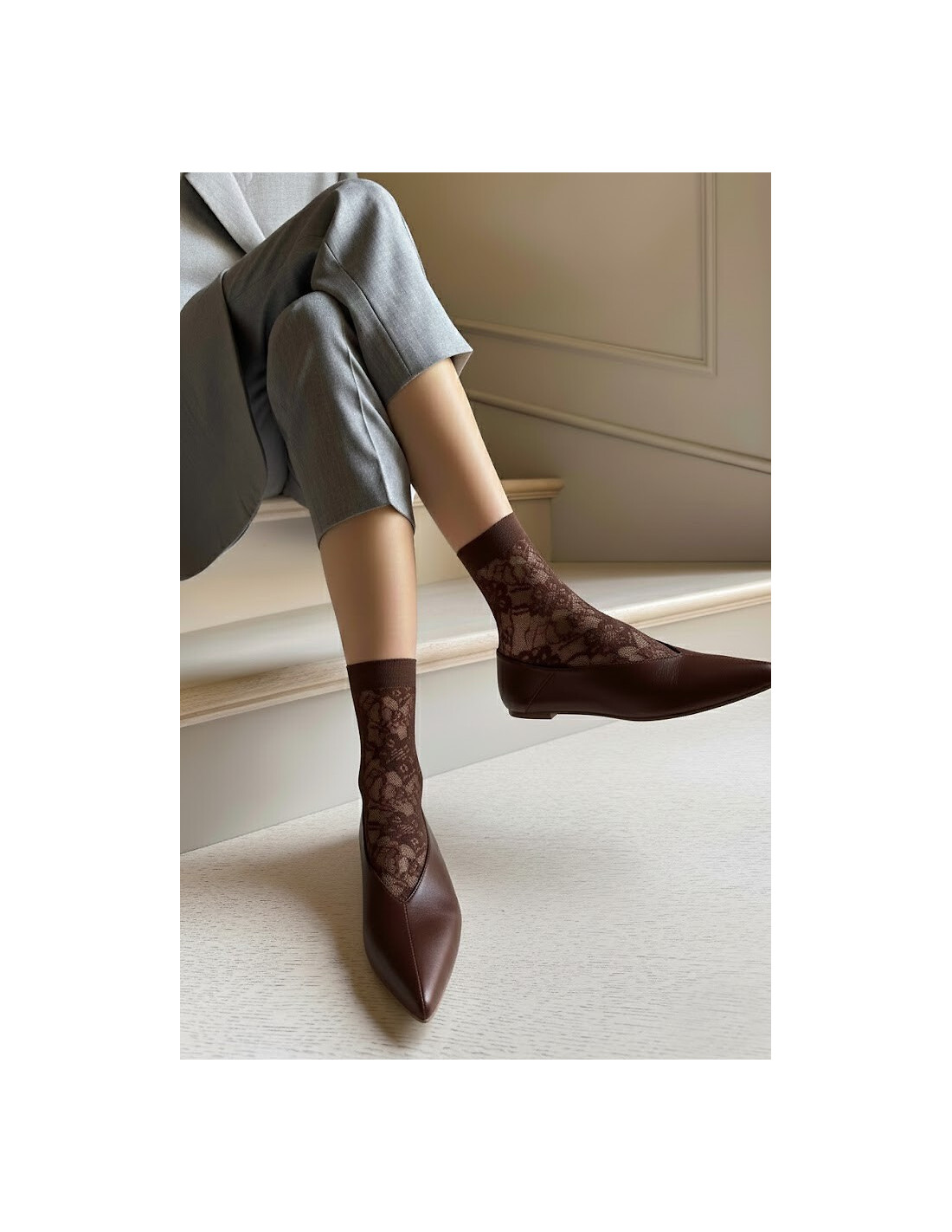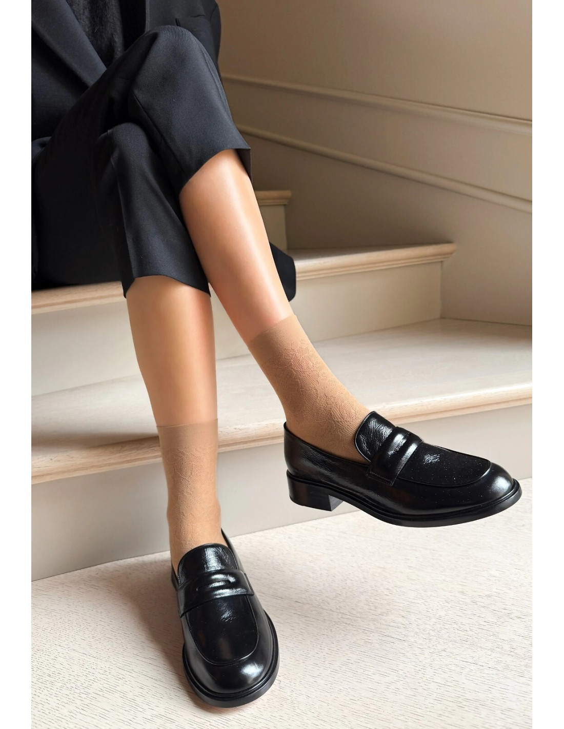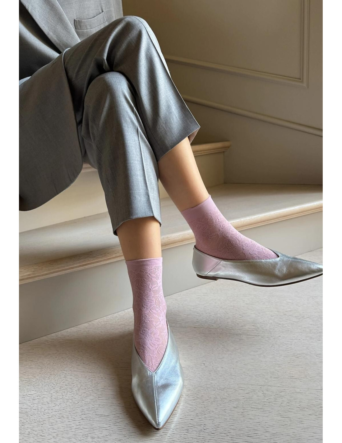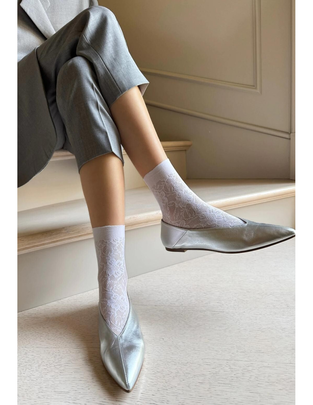 Moteriškos ažūrinės megztos kojinės - puikiai priglunda prie kojos - apsaugo nuo įbrėžimų - turi minkštas siūles ir nespaudžiančias siūlės
