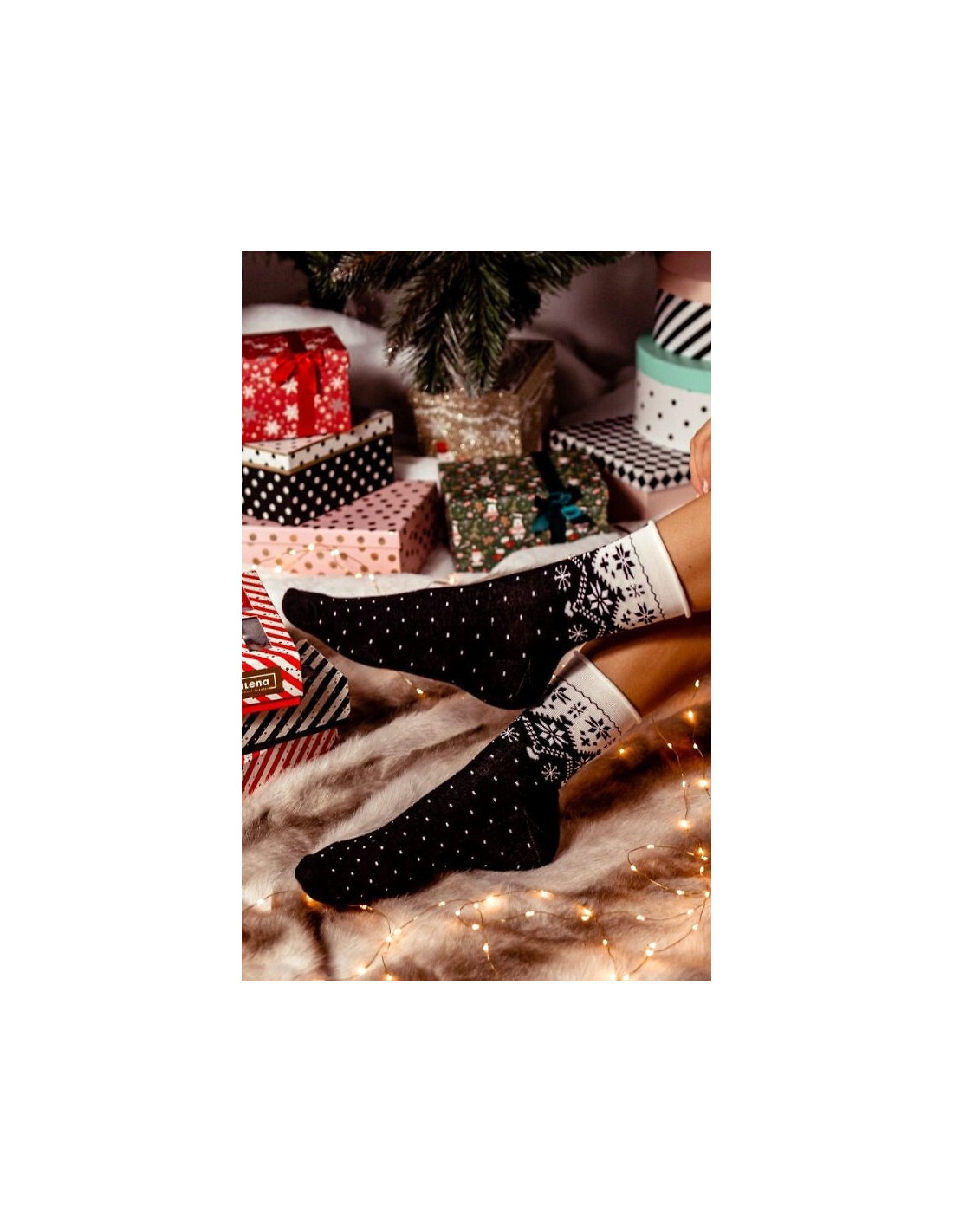 Dvispalvės moteriškos kojinės - dekoratyvinis snaigės raštas - šiltas frotinis audinys vidinėje pėdos pusėje - patogus, nespaudžiantis raištis
