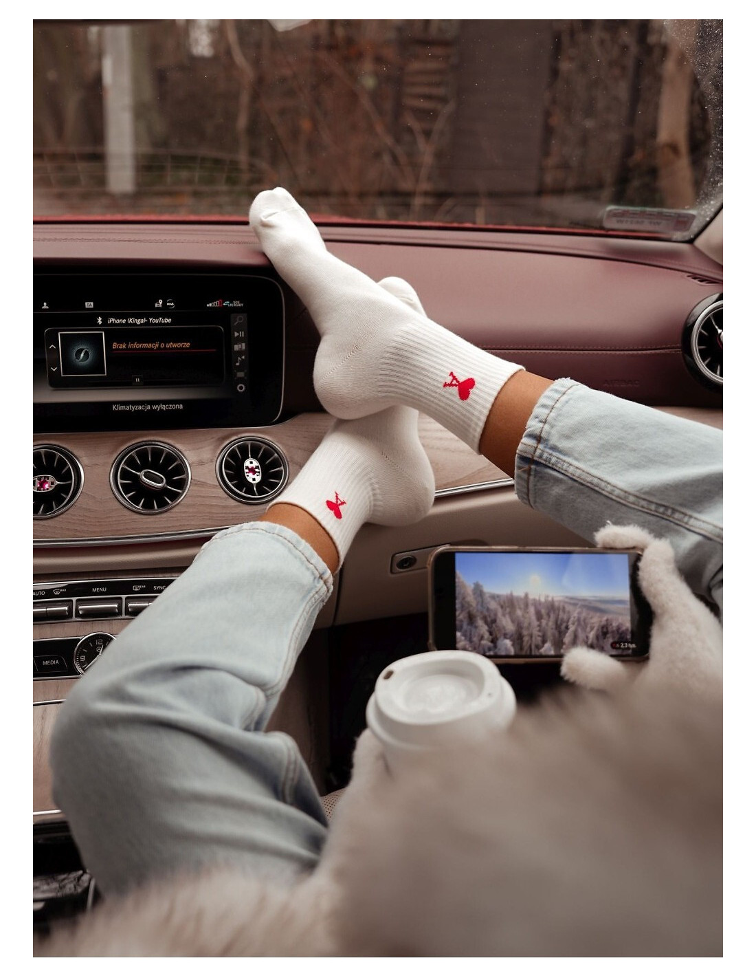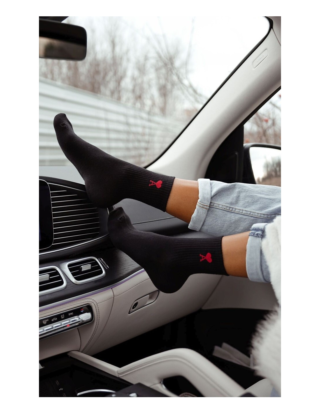 Vyriškos kojinės - aukštos kokybės medvilnė - briaunuotas viršus, papuoštas raudona širdele - plokščios siūlės - patogus briaunavimas