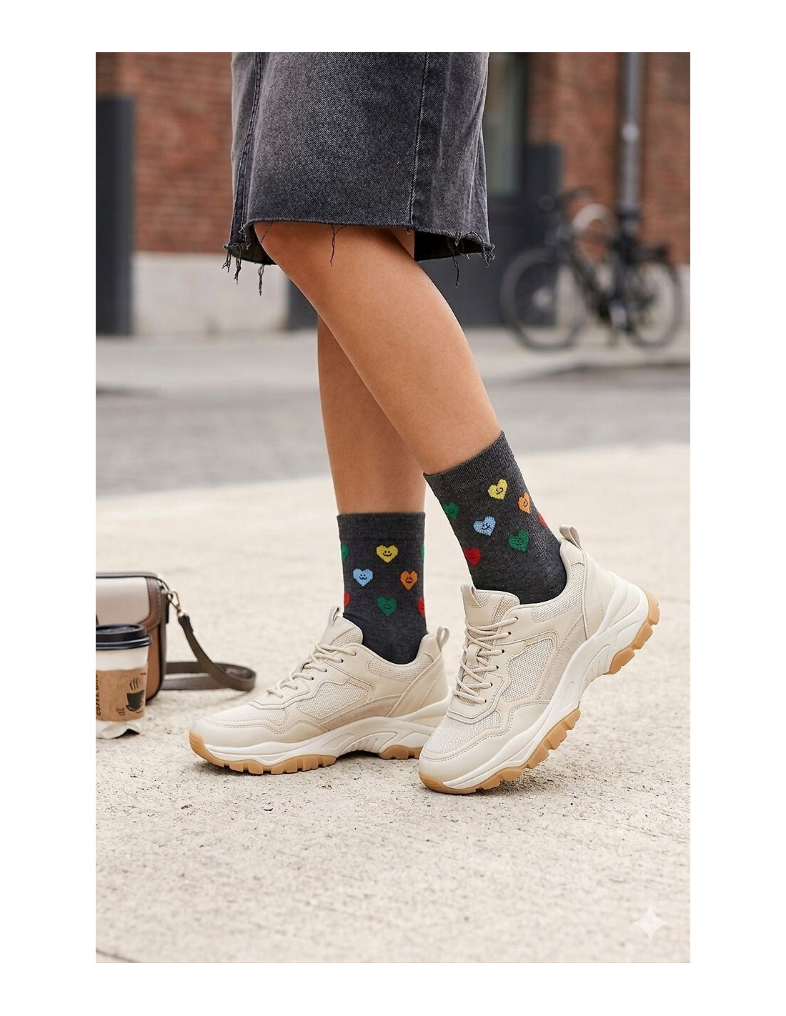 Moteriškos kojinės - medvilninės - su širdelėmis puoštu kaspinu