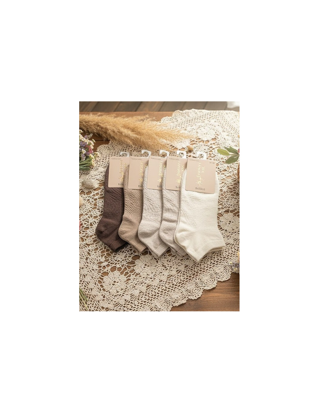 Minkštos moteriškos kojinės - aromatizuotos - pagamintos iš bambuko pluošto - nespaudžiantis apvadas dekoruotas blizgių siūlų raštu
