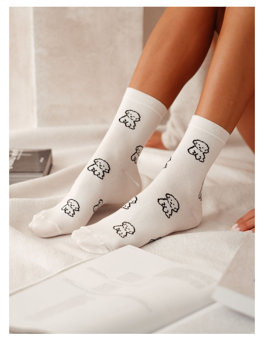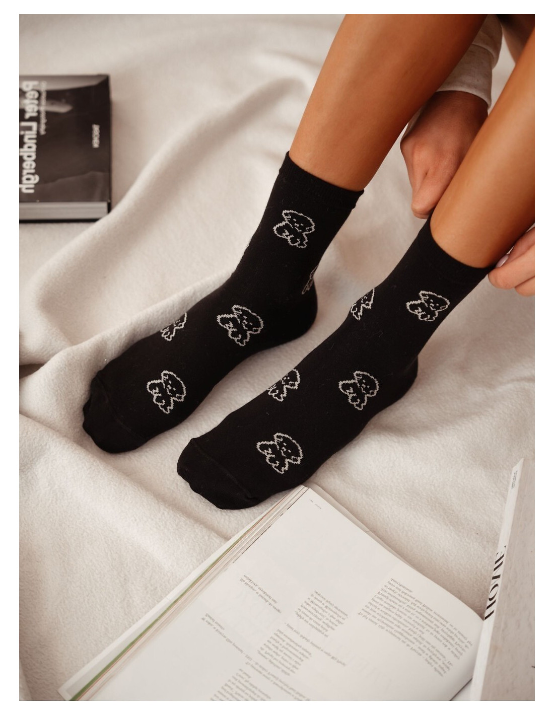 Moteriškos kojinės - pagamintos iš aukštos kokybės medvilnės - dekoruotos šuniuko raštu - puikiai tinka kasdieniam stiliui - puikiai priglunda prie pėdų - užtikrina didelį dėvėjimo komfortą