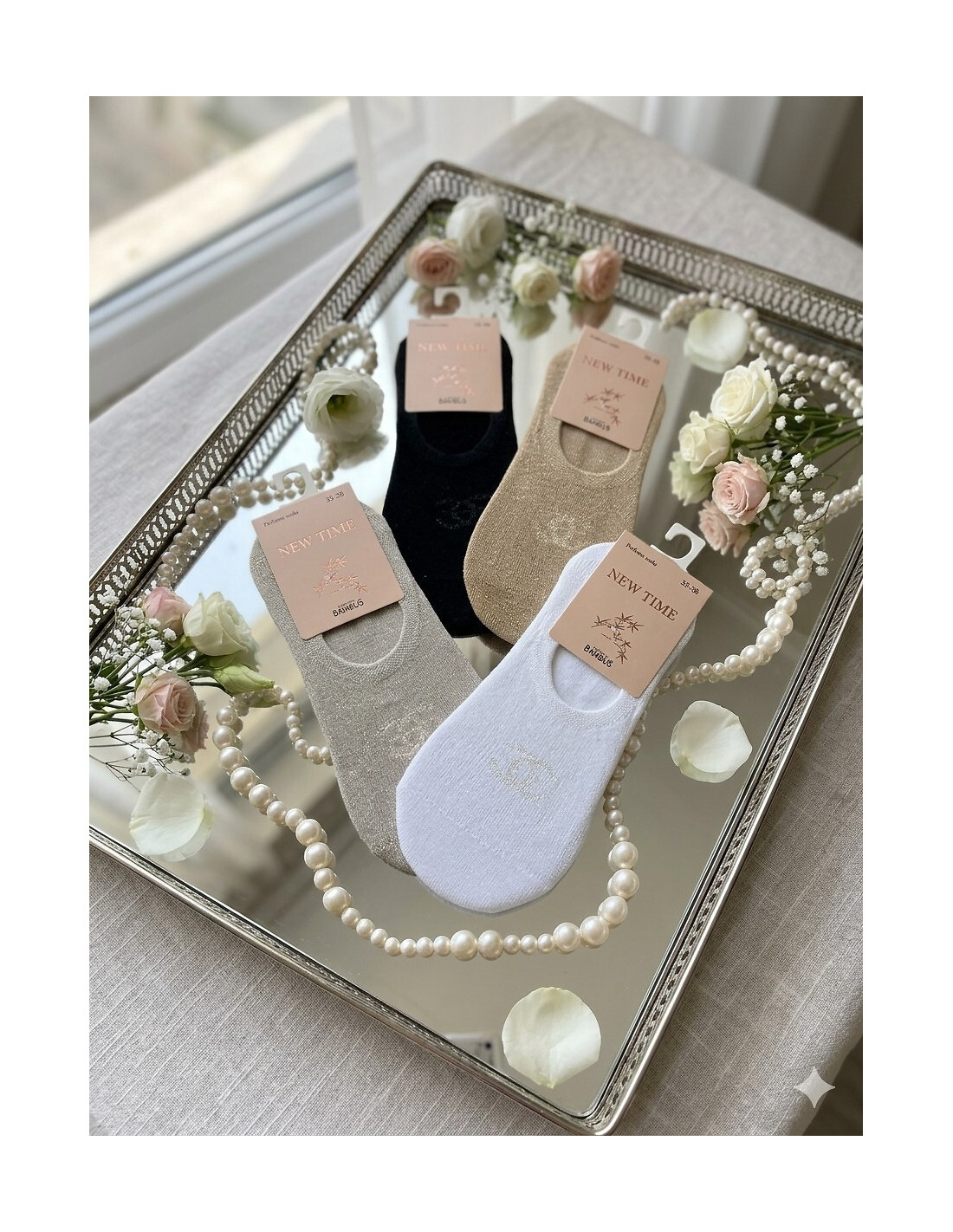 Moterų balerinos - pagaminti iš bambuko pluošto - kvepiančios - nespaudžiantis apvadas, dekoruotas nedideliu raštu - kulnas su silikonu, kad neslystų