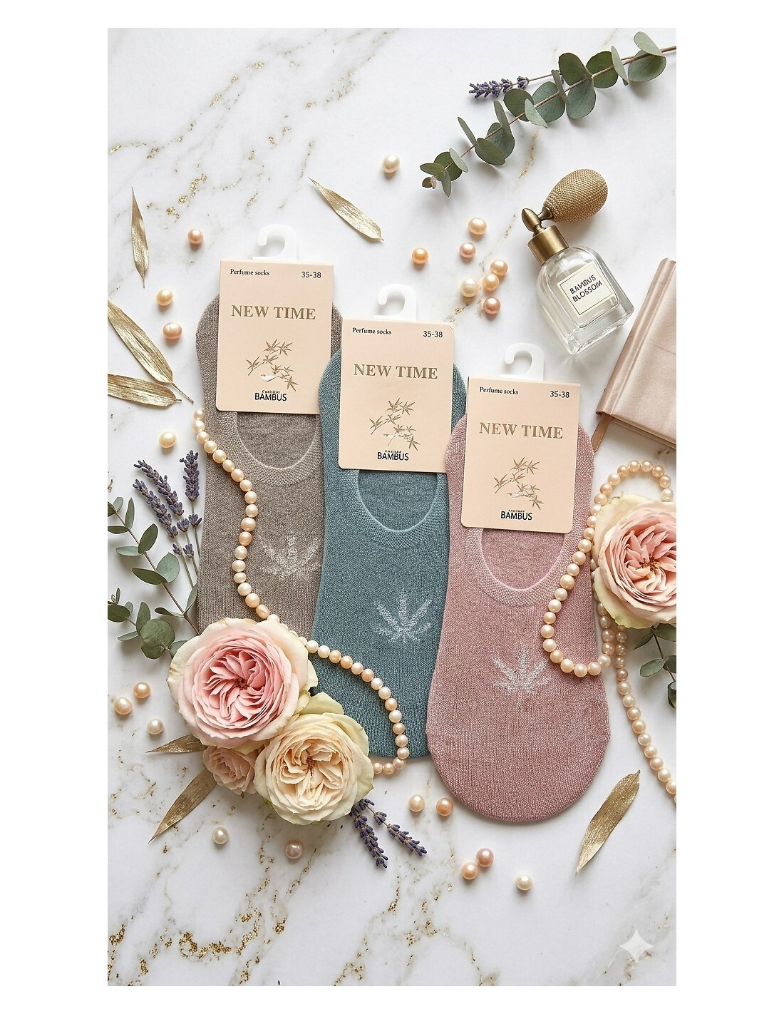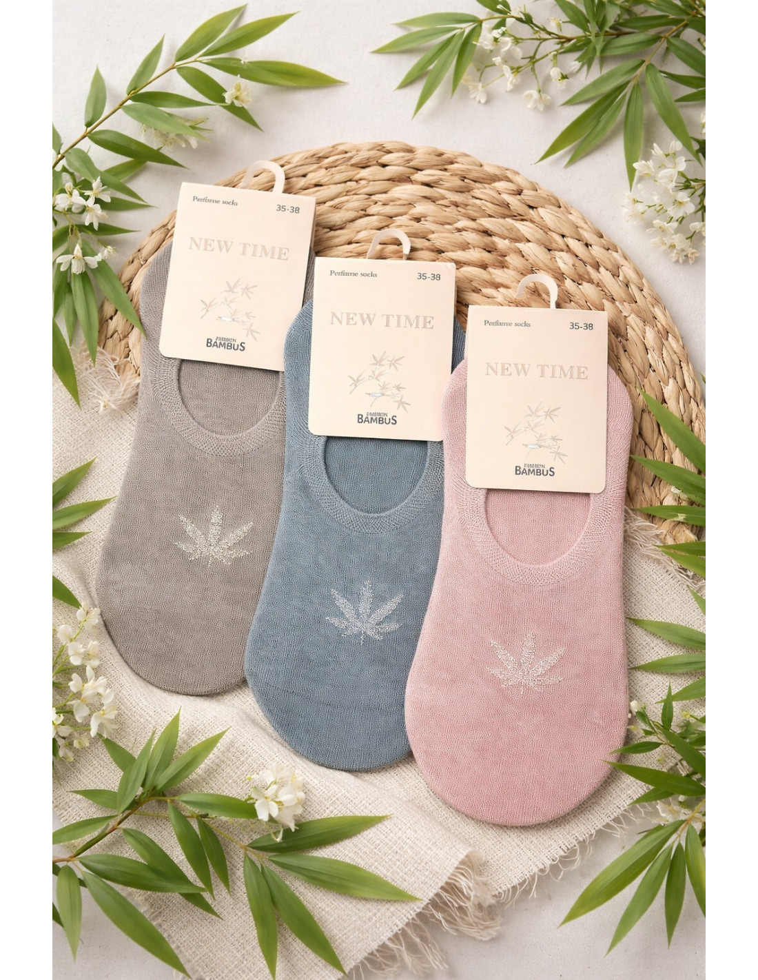 Moterų balerinos - pagaminti iš bambuko pluošto - kvepiančios - nespaudžiantis apvadas, dekoruotas nedideliu raštu - kulnas su silikonu, kad neslystų