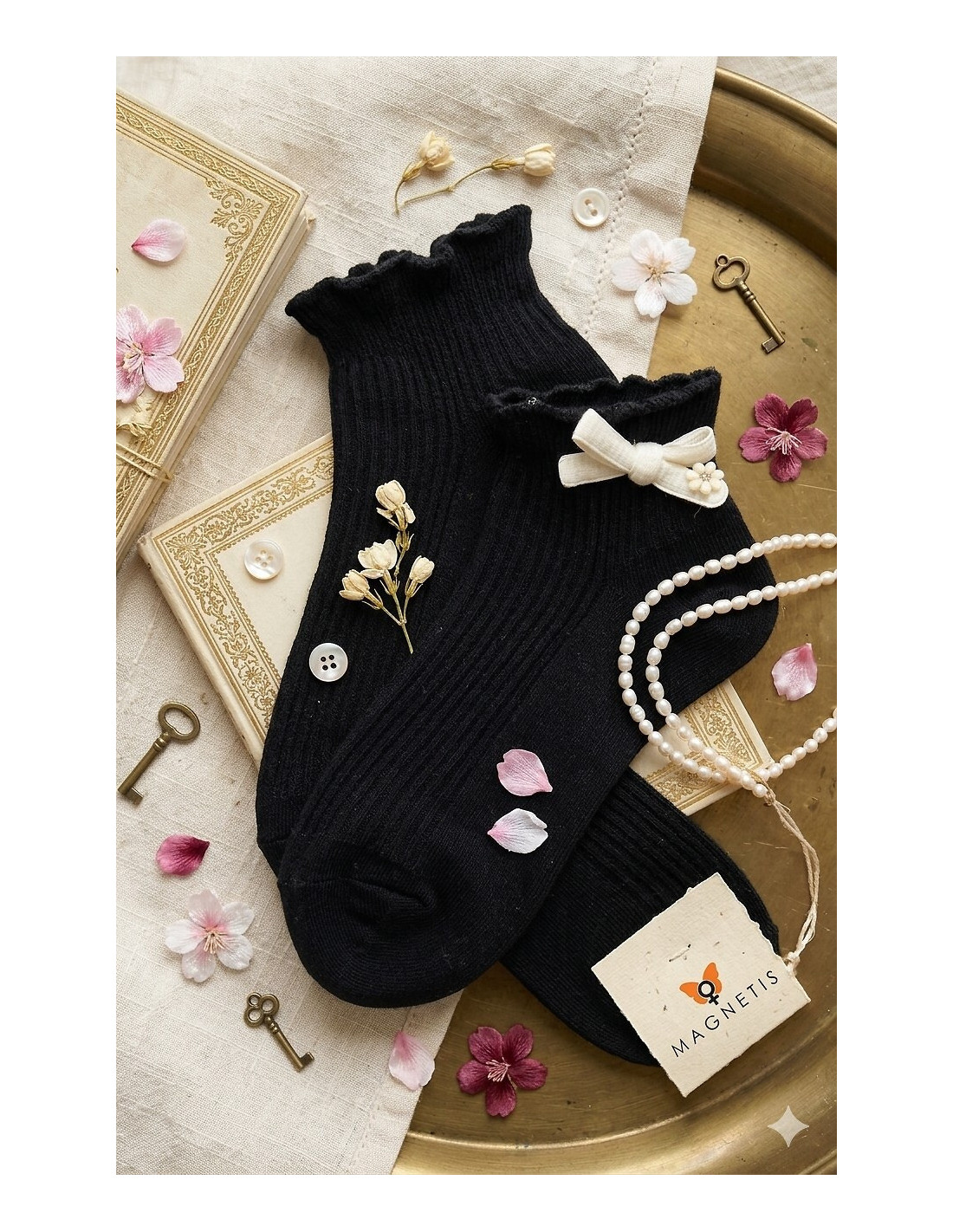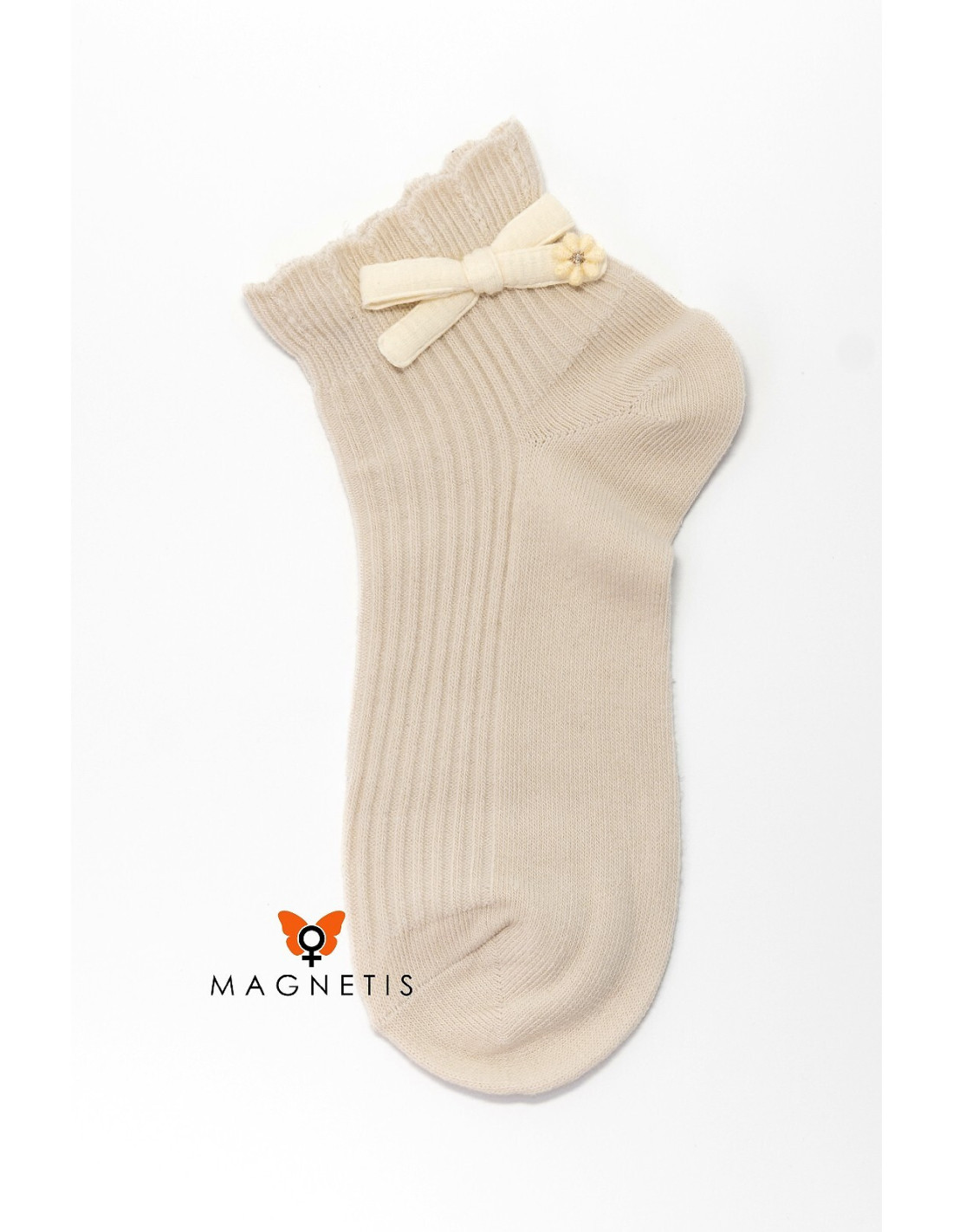 Moteriškos kojinės - pagamintos iš briaunuotos medvilnės - juostele, papuošta prisiūtu lankeliu - puikiai priglunda prie kojos - labai malonios liesti