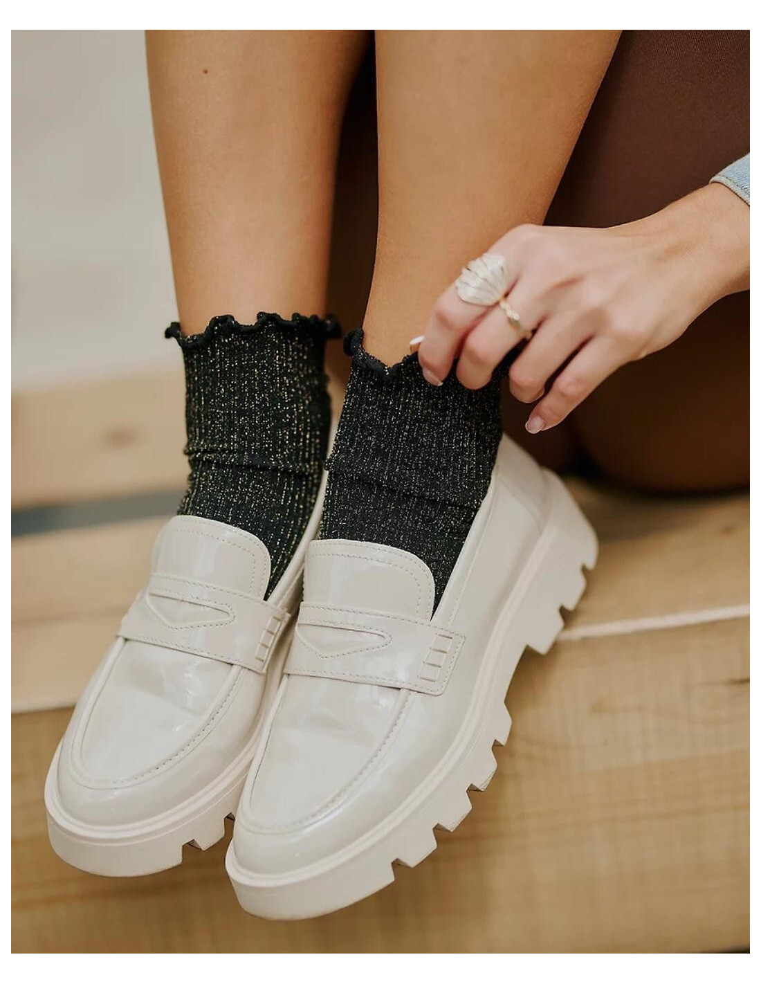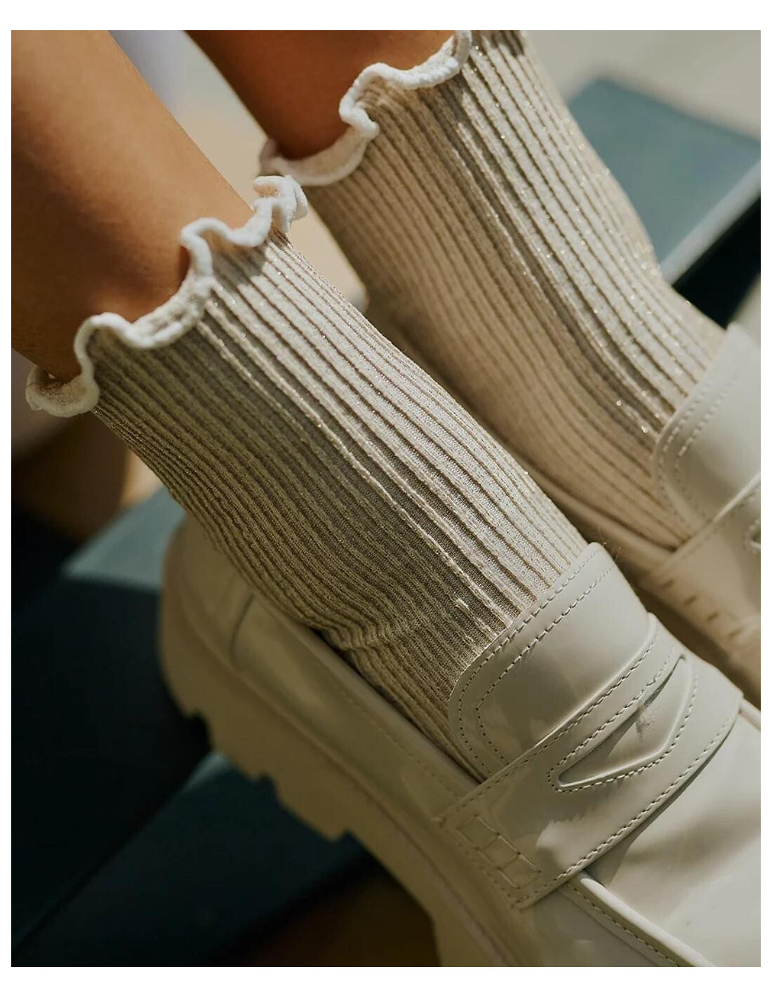 Moteriškos kojinės - minkštas, nepermatomas briaunuotas trikotažinis audinys - su blizgiais liurekso siūlais - briaunuotos, apsiūtos raukiniais - plokščios siūlės