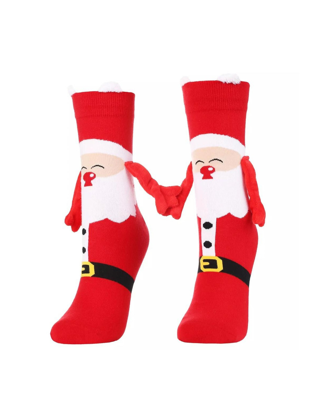 Vyriškos kojinės su magnetinėmis rankenėlėmis - aukštos kokybės medvilnė - šventinis dizainas su 3D Kalėdų Seneliu - turi rankenėles su magnetais, kurie jungiasi tarpusavyje - supakuotos į patrauklią dėžutę - puikiai tinka kalėdinei dovanai