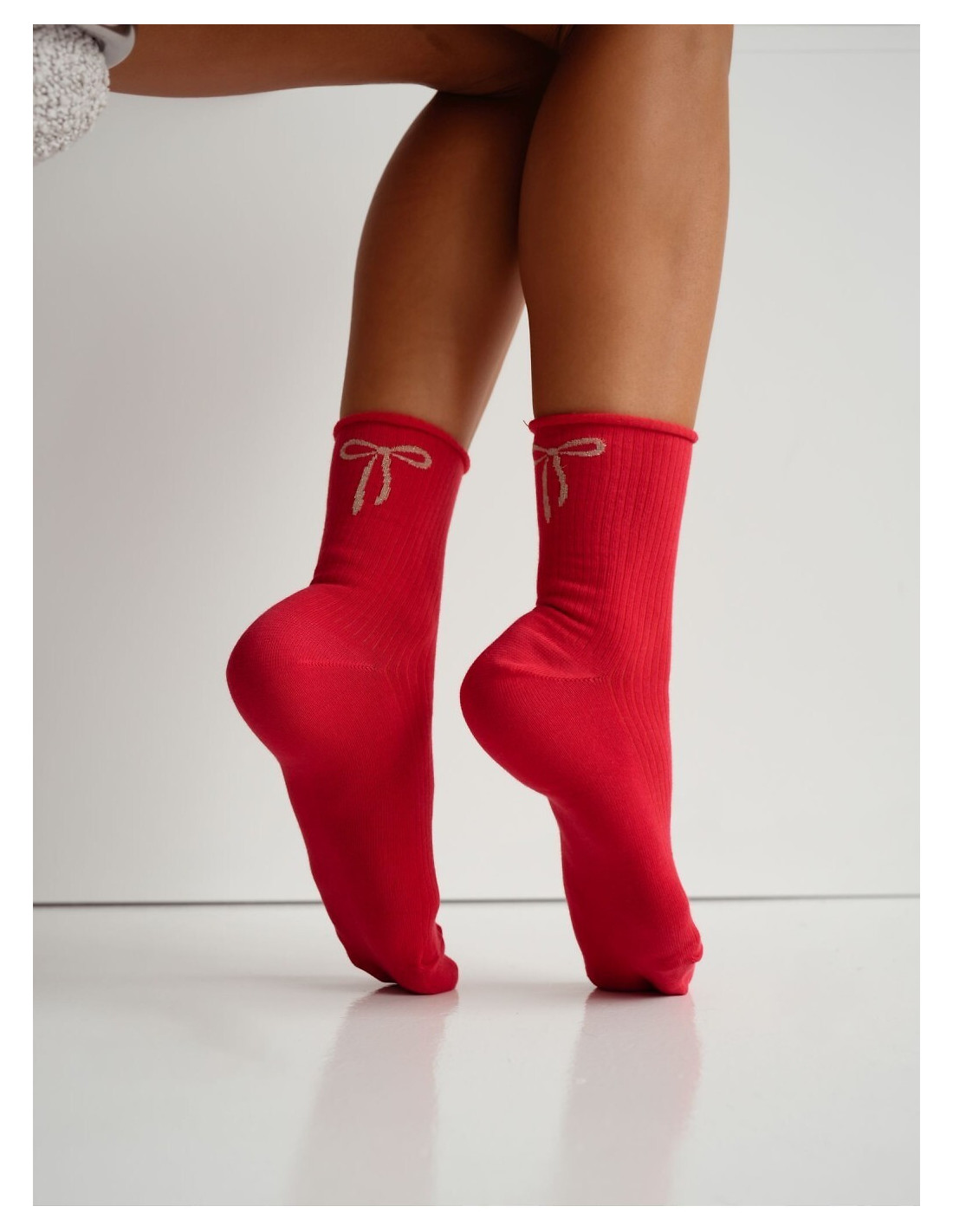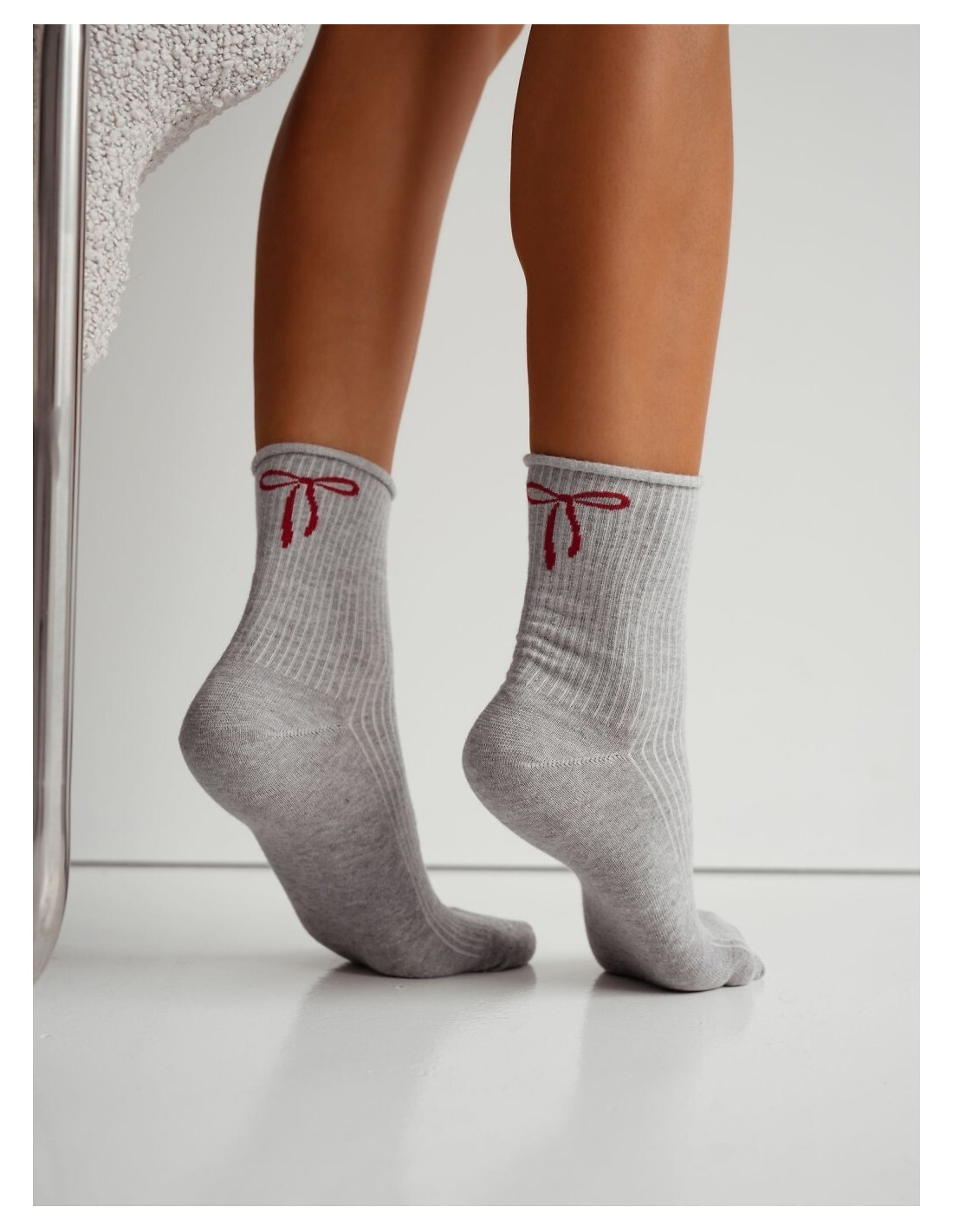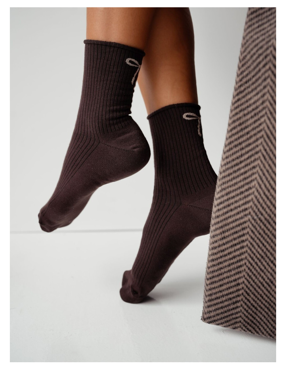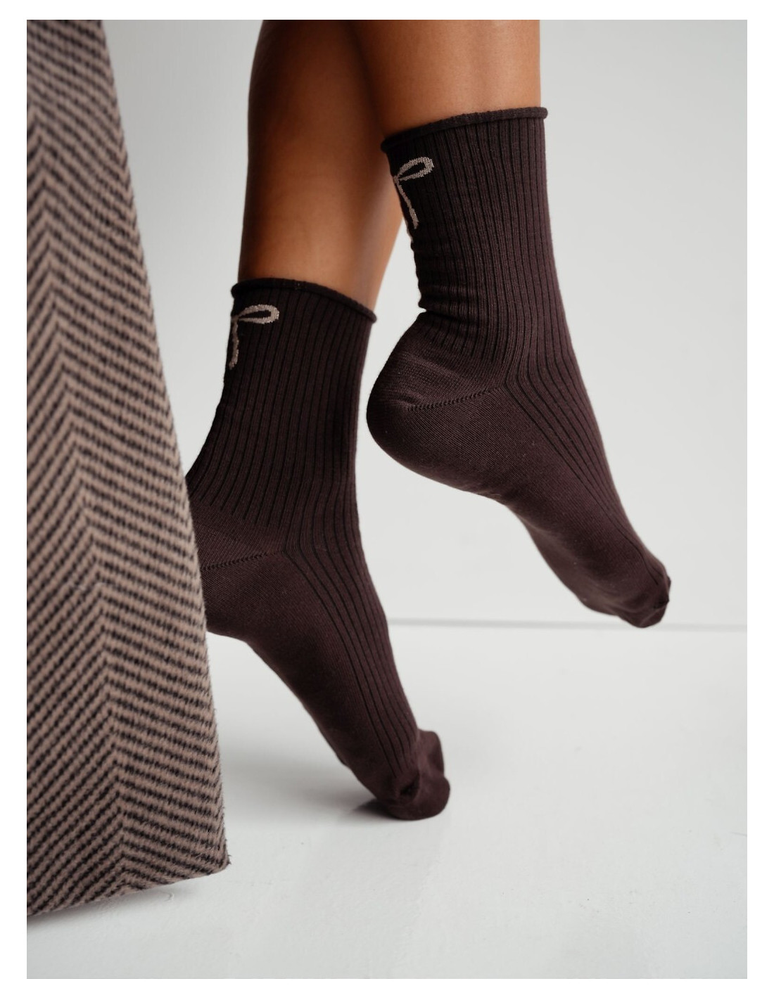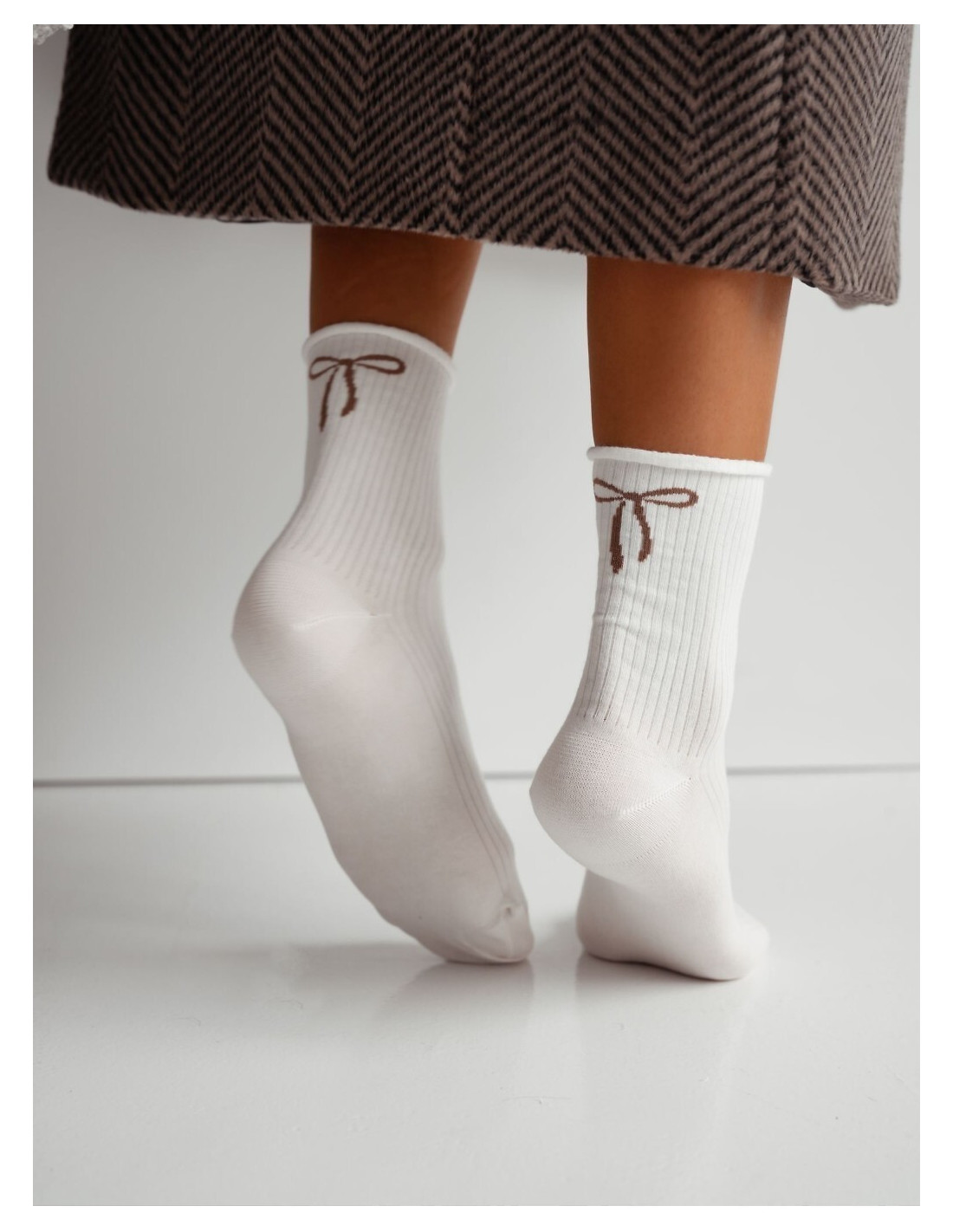 Moteriškos kojinės - pagamintos iš aukštos kokybės medvilnės - briaunuotos - papuoštos mažu lankeliu -nespaudžiantis apvadas - puikiai tinka kasdieniam stiliui - puikiai priglunda prie kojos - užtikrina didelį dėvėjimo komfortą