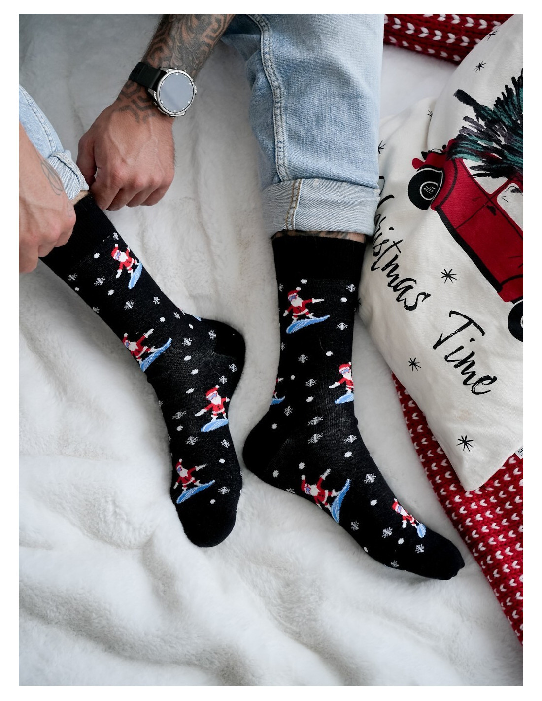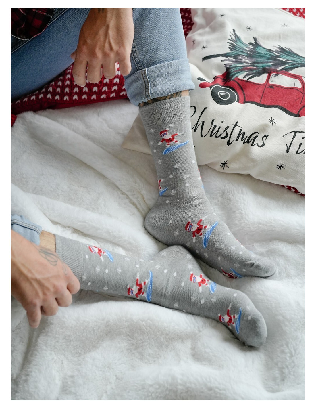 Spalvingos vyriškos kojinės - aukštos kokybės medvilnė - papuoštos kalėdiniu motyvu - idealiai tinka dovanai