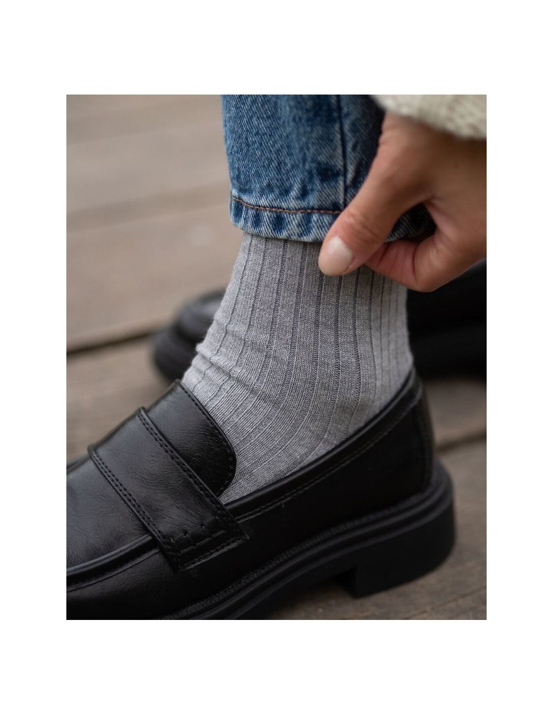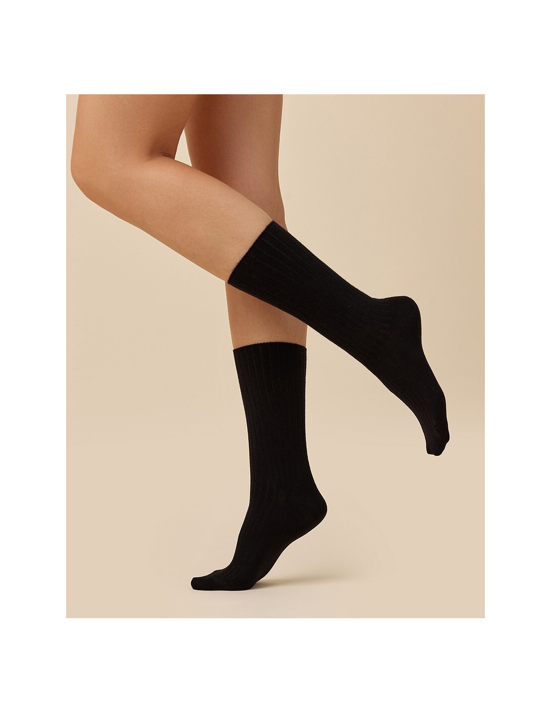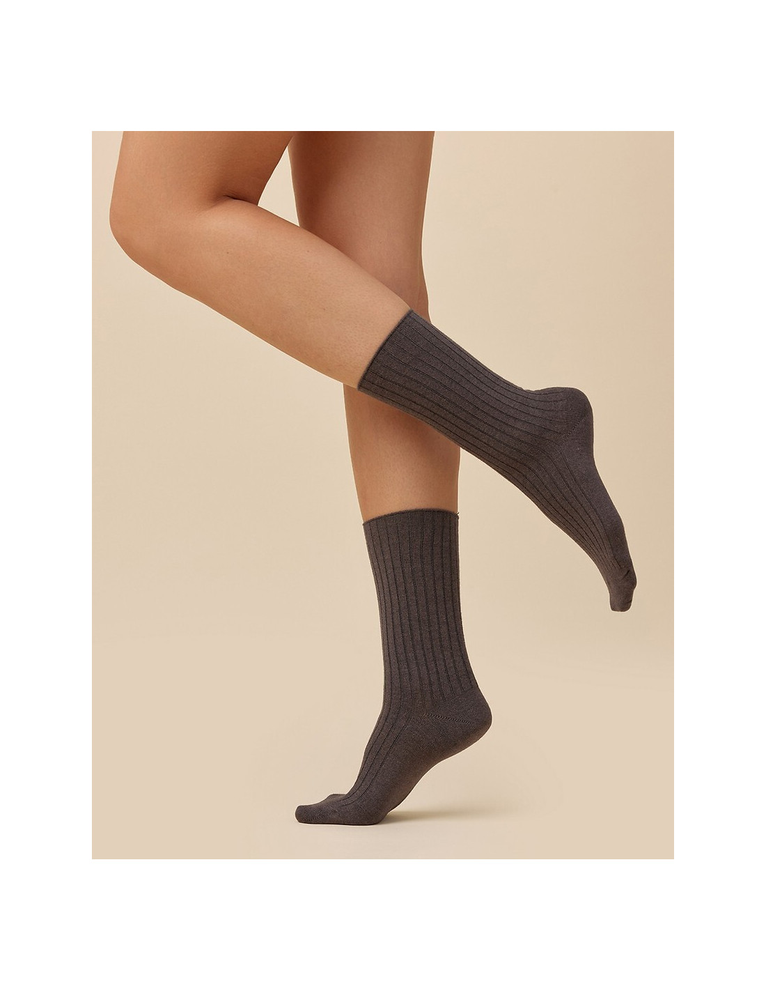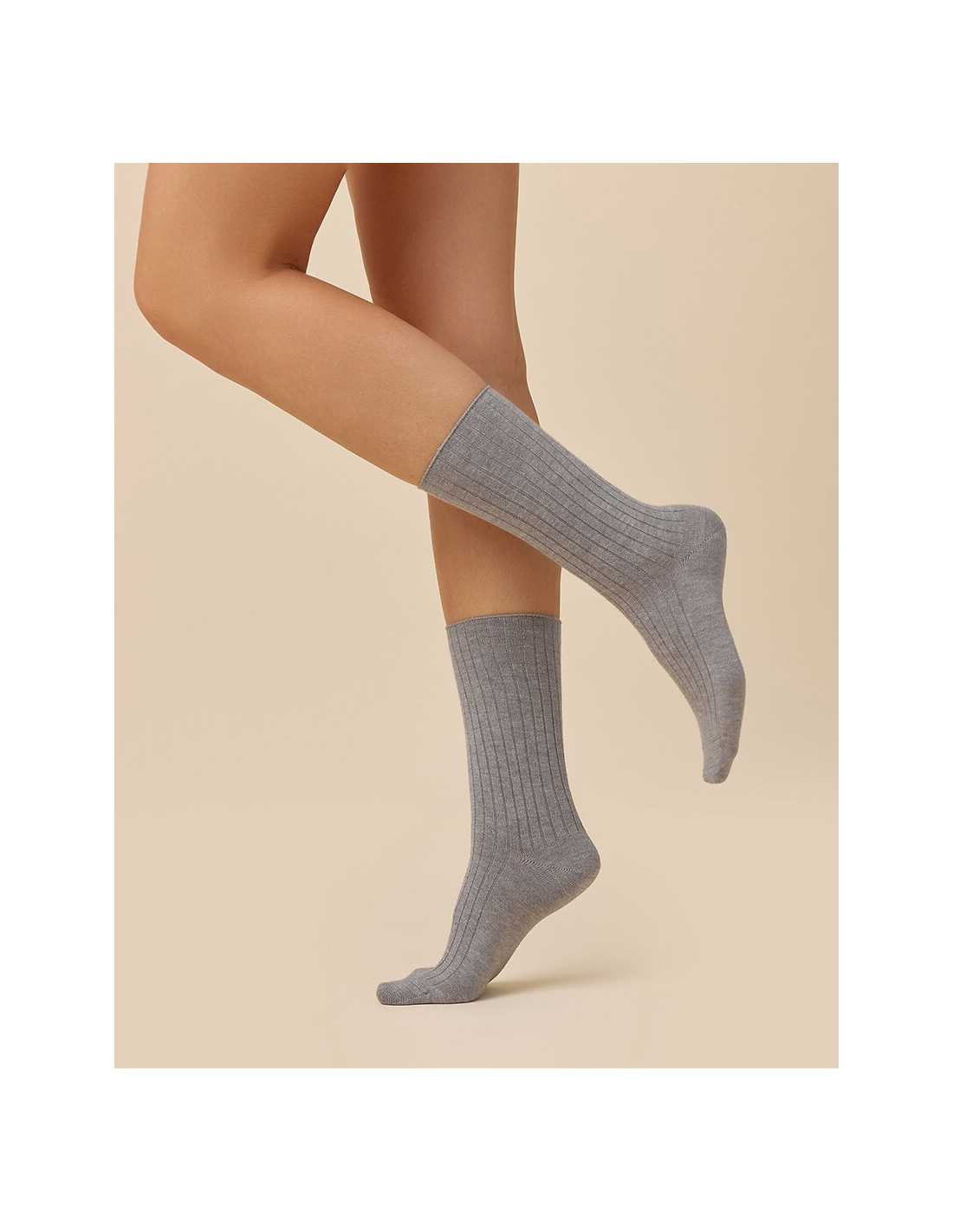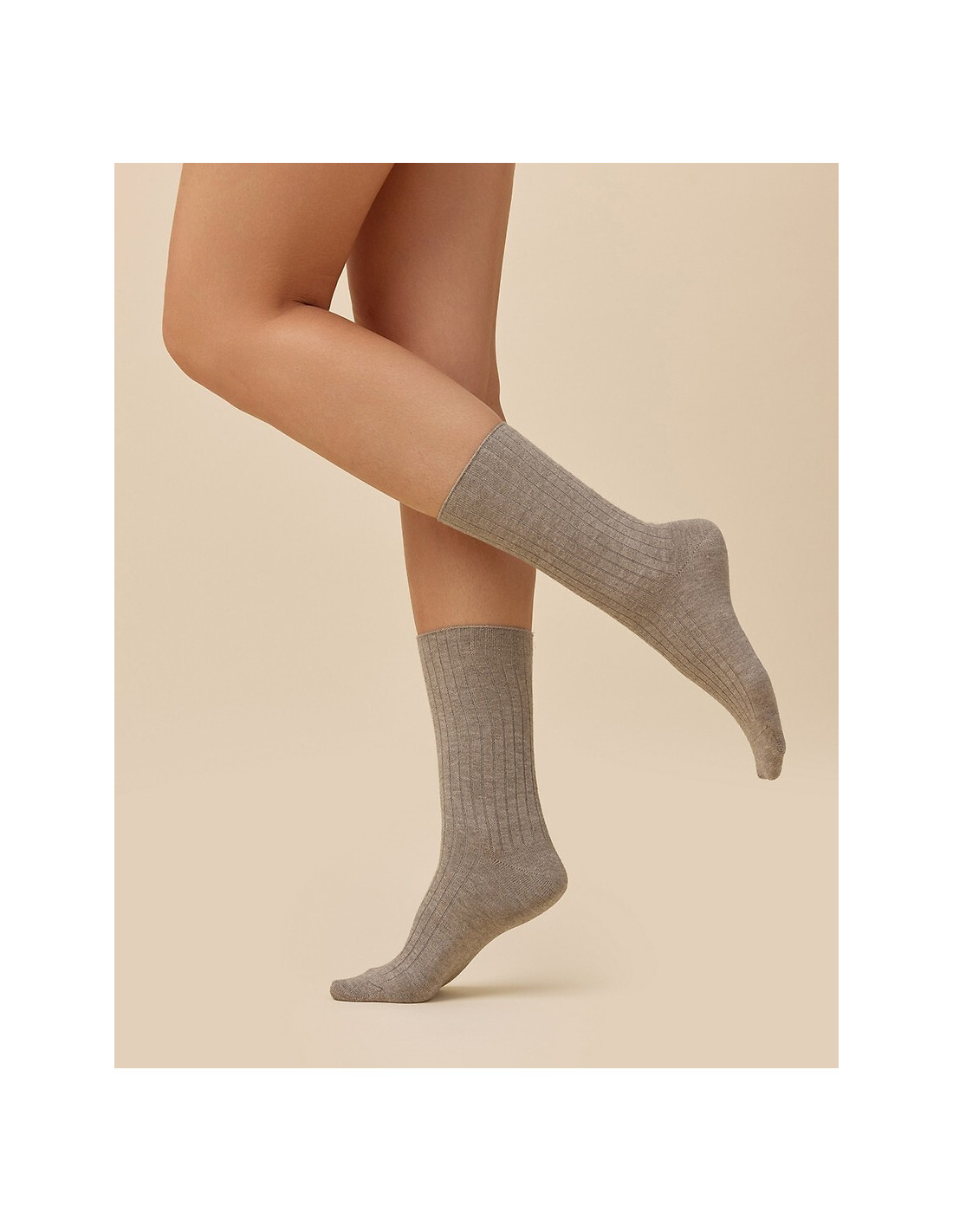 Moteriškos kojinės - pagamintos iš malonaus trikotažo ir vilnos mišinio - minkštas trikotažas su plonais briaunuotais kraštais - nespaudžiantis raištis