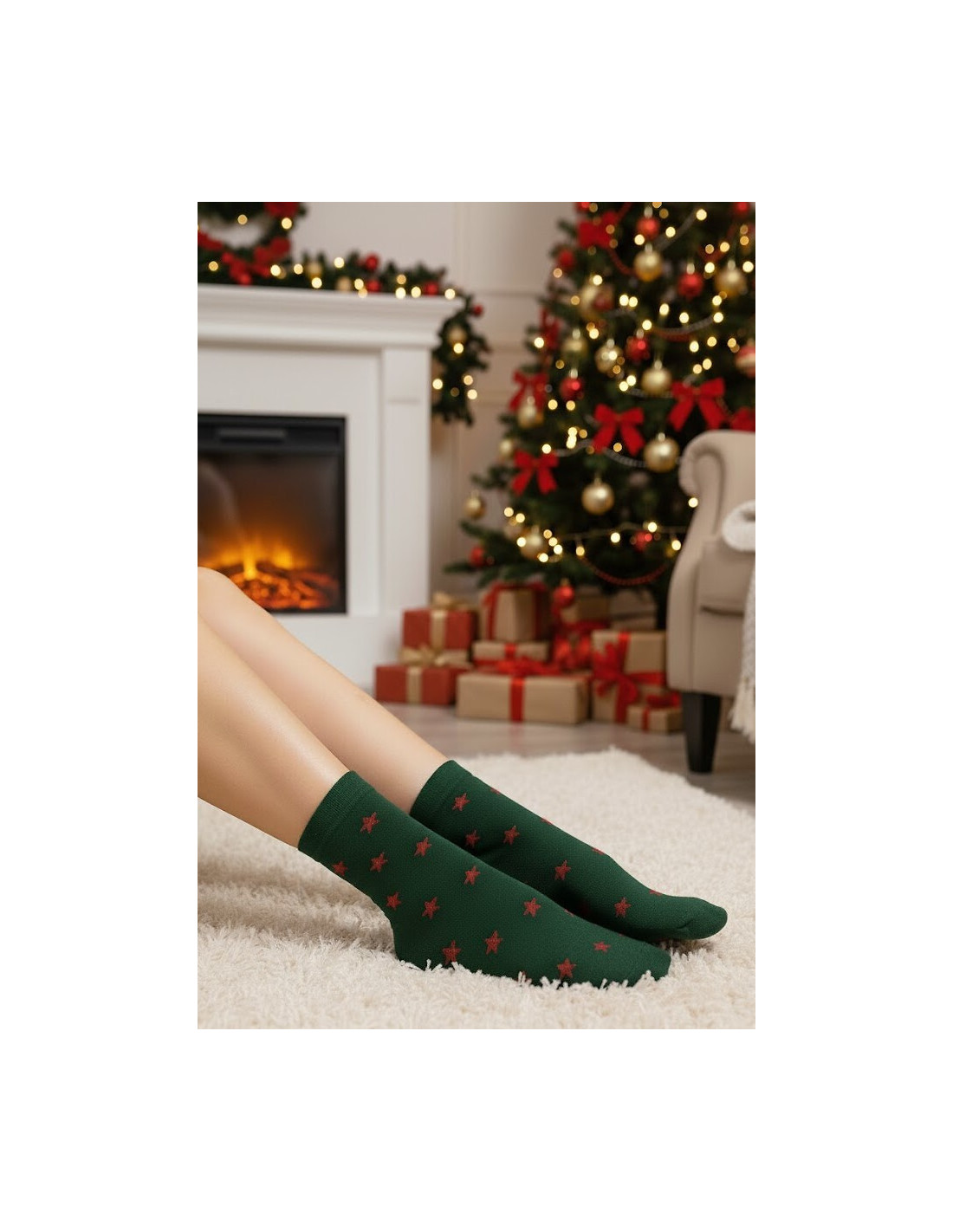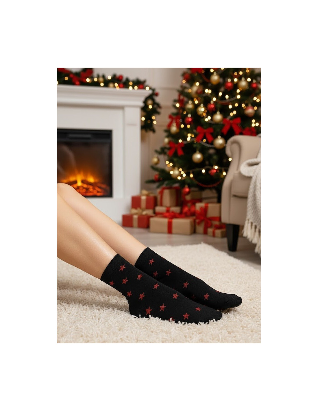 Moteriškos kojinės - minkšto mikropluošto su žvaigždutėmis - raštas su blizgiu lurekso siūlu - plokščios siūlės - patogus briaunavimas