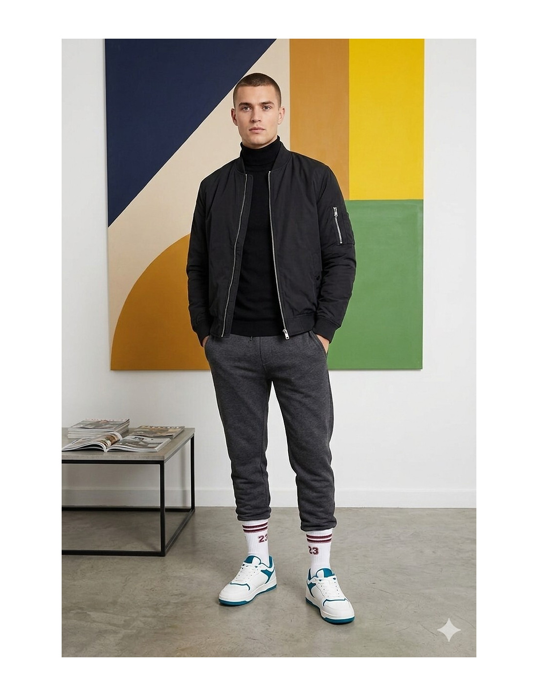 - briaunuotas viršus su kontrastingomis juostelėmis ir skaičiumi "23"