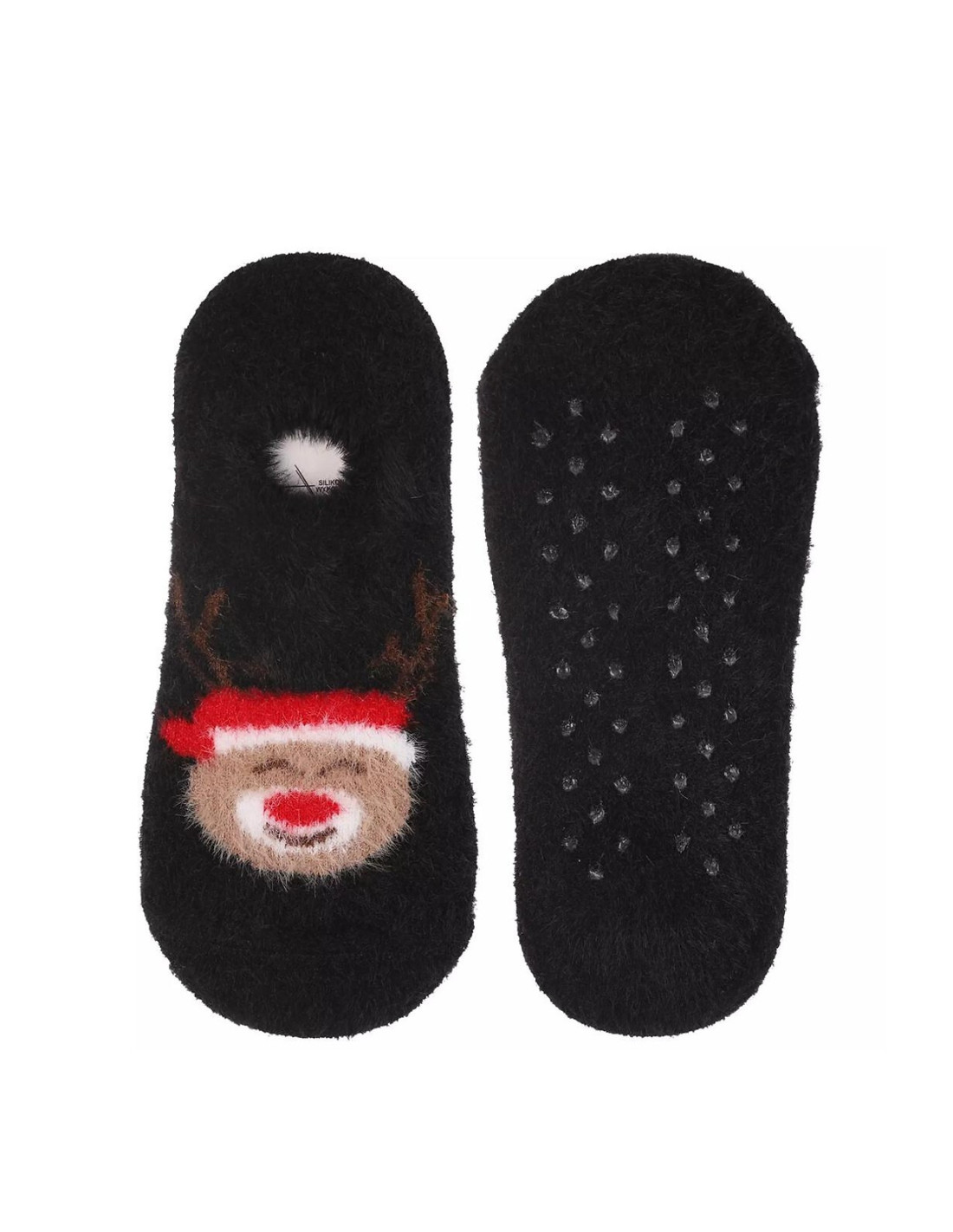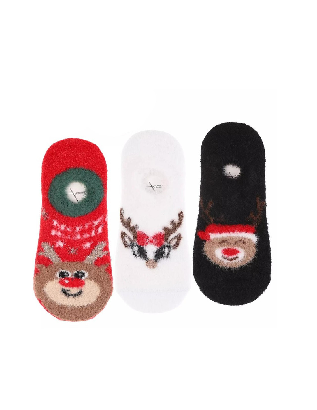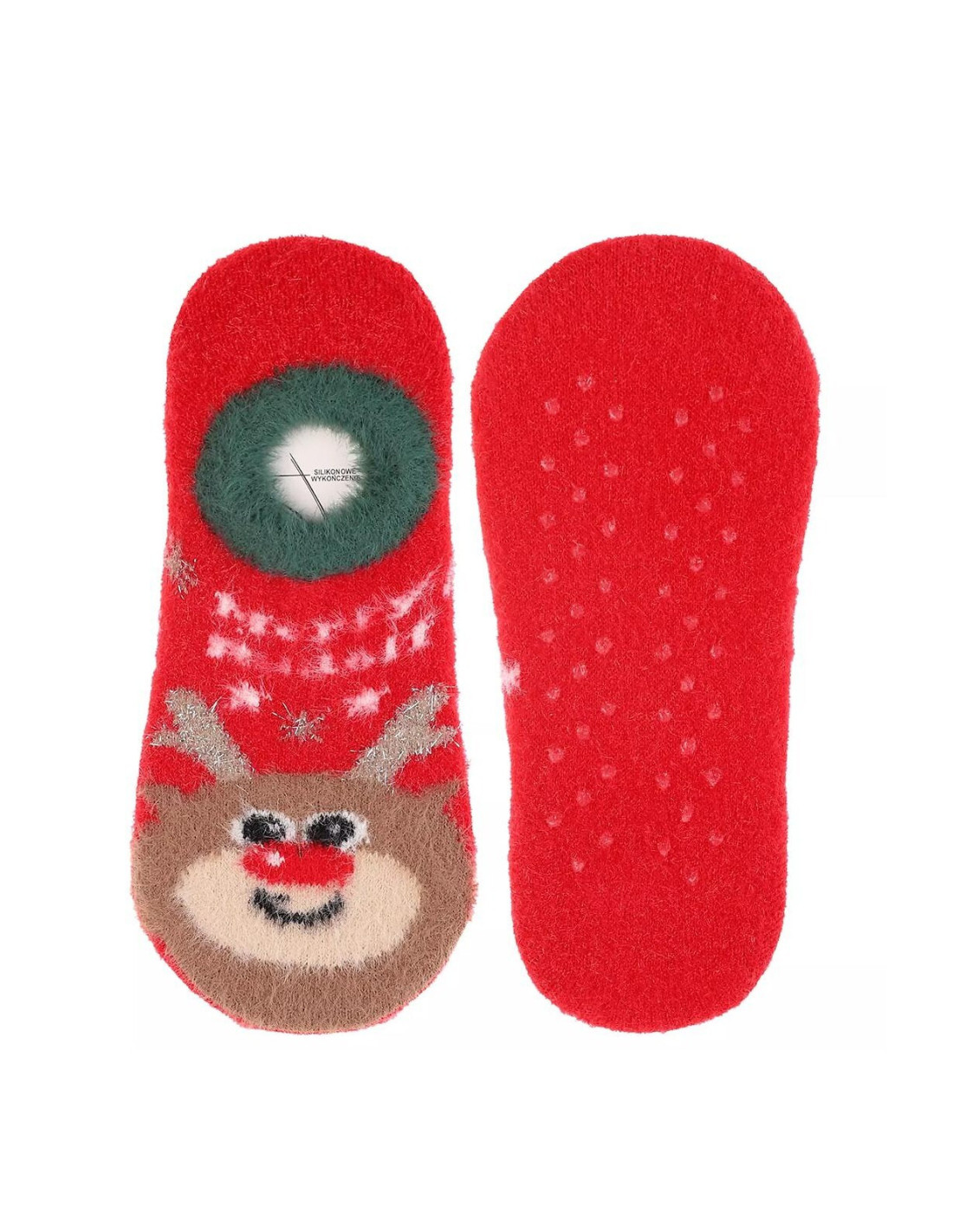 Moterų balerinos - minkštas, pūkuotas trikotažas - puošti šventiniais raštais - plokščios siūlės, nespaudžiantis raištis - aBS neslystantis padas - galimos spalvos: juoda, raudona, balta