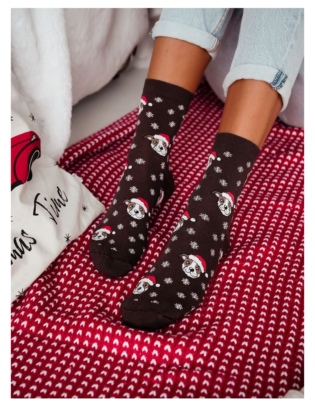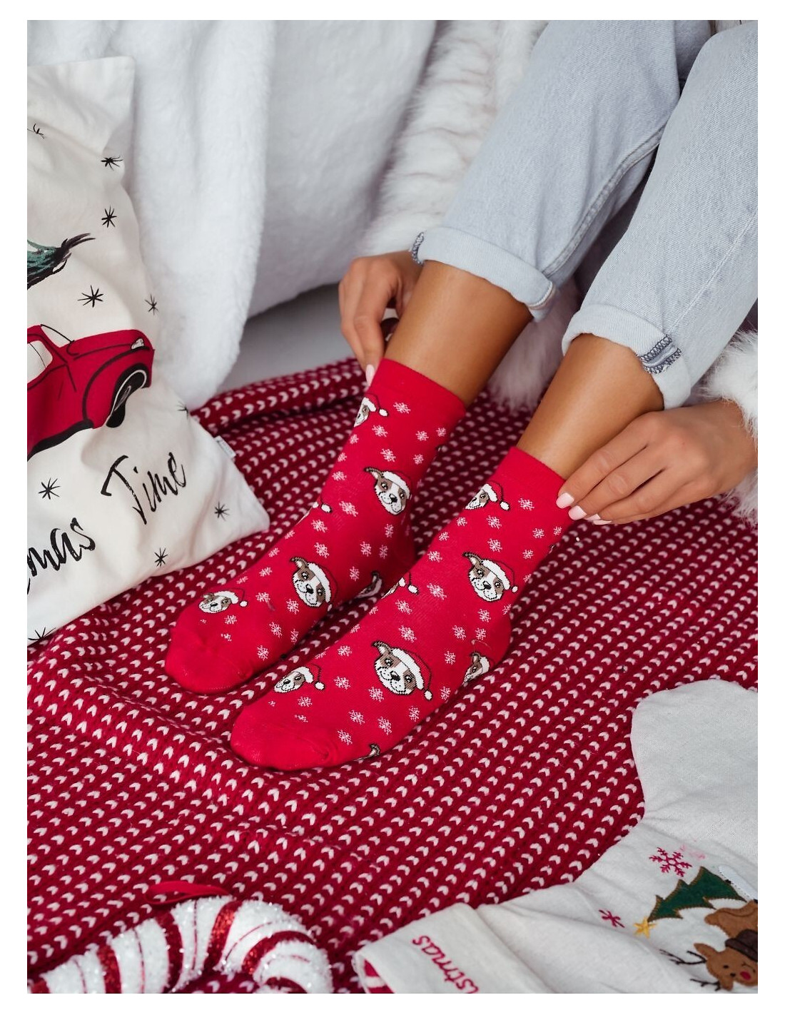 Spalvingos moteriškos kojinės - papuoštos kalėdiniu motyvu - aukštos kokybės medvilnė - idealiai tinka dovanoms