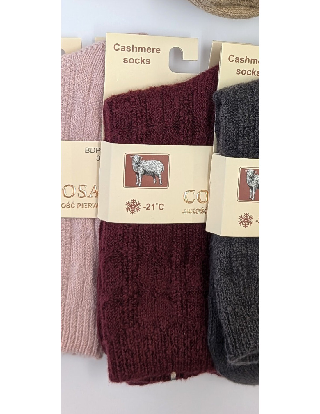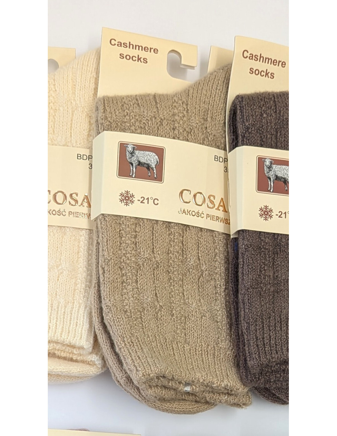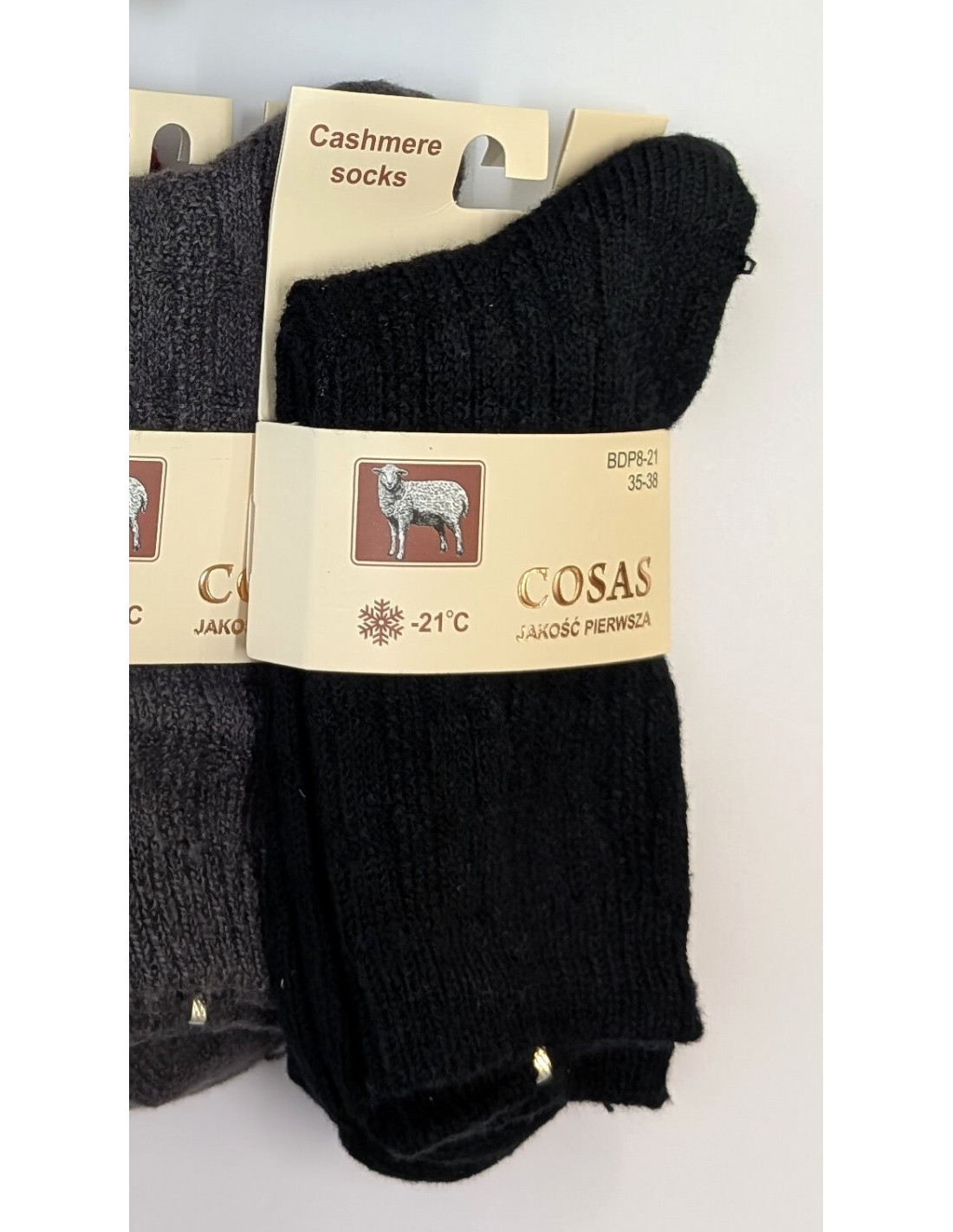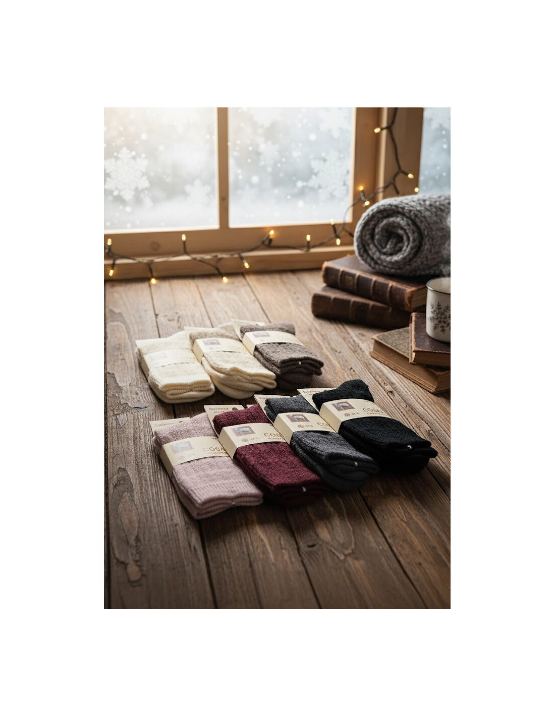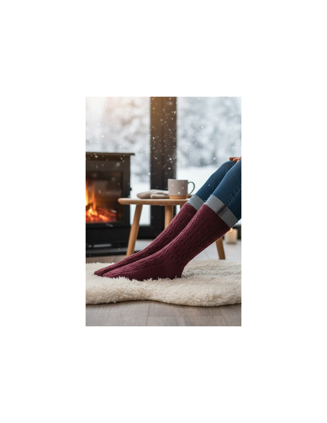 Moteriškos žieminės kojinės - minkštas trikotažas su vilnos priedais - dekoruotos įspaustu raštu - patogus briaunavimas