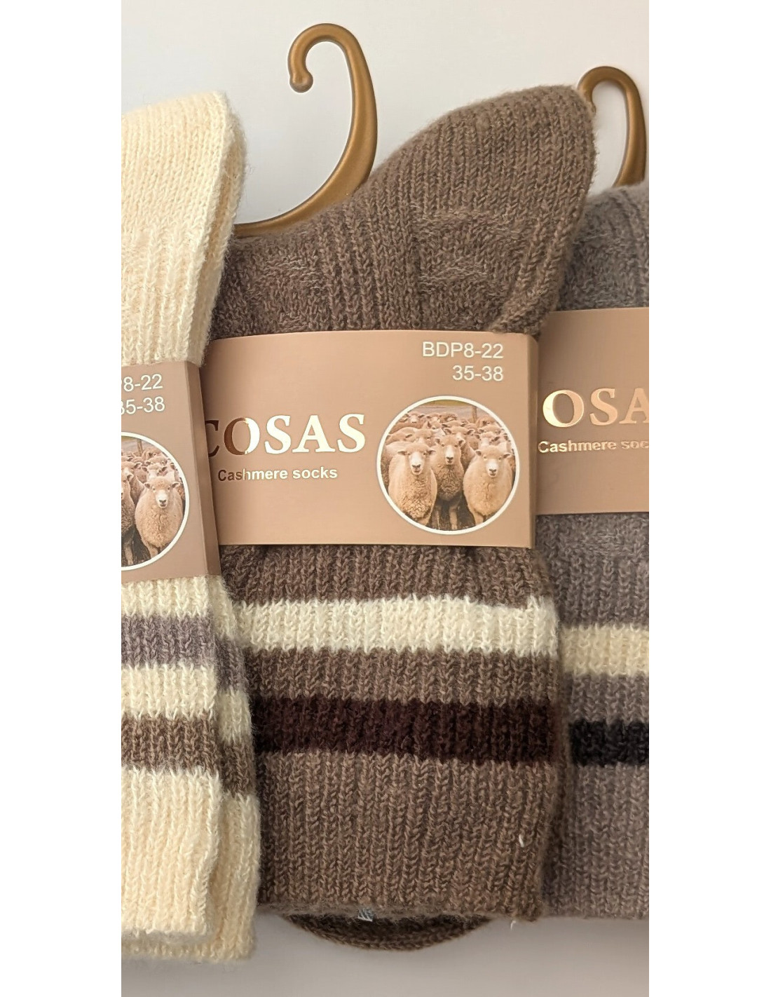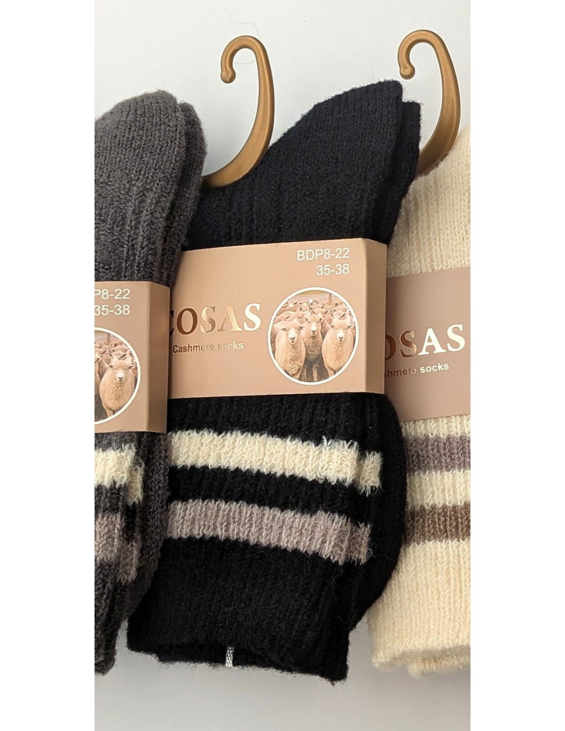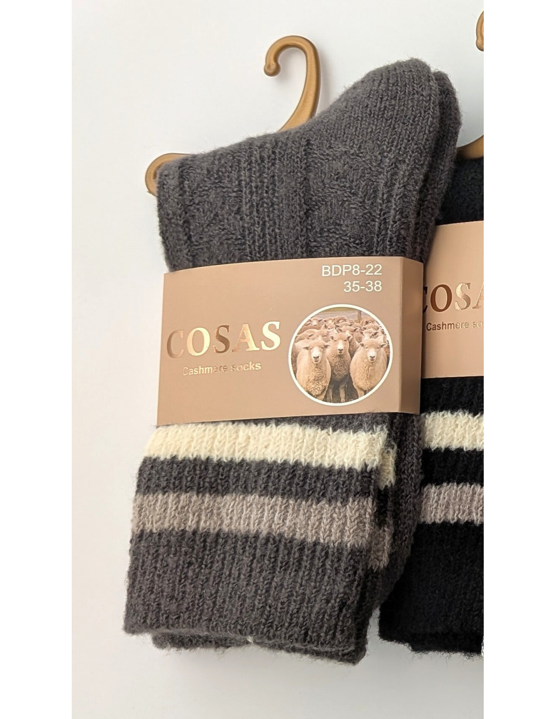 Moteriškos žieminės kojinės - minkštas trikotažas su vilnos priedais - dekoruotos įspaustu raštu ir juostelėmis - patogus briaunavimas
