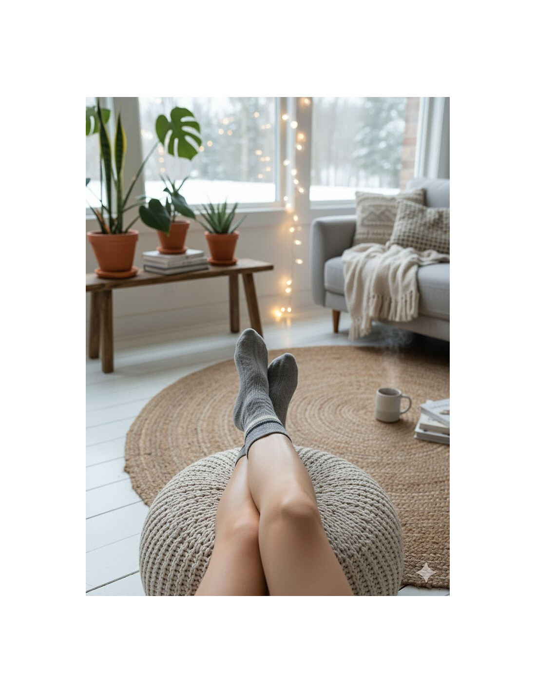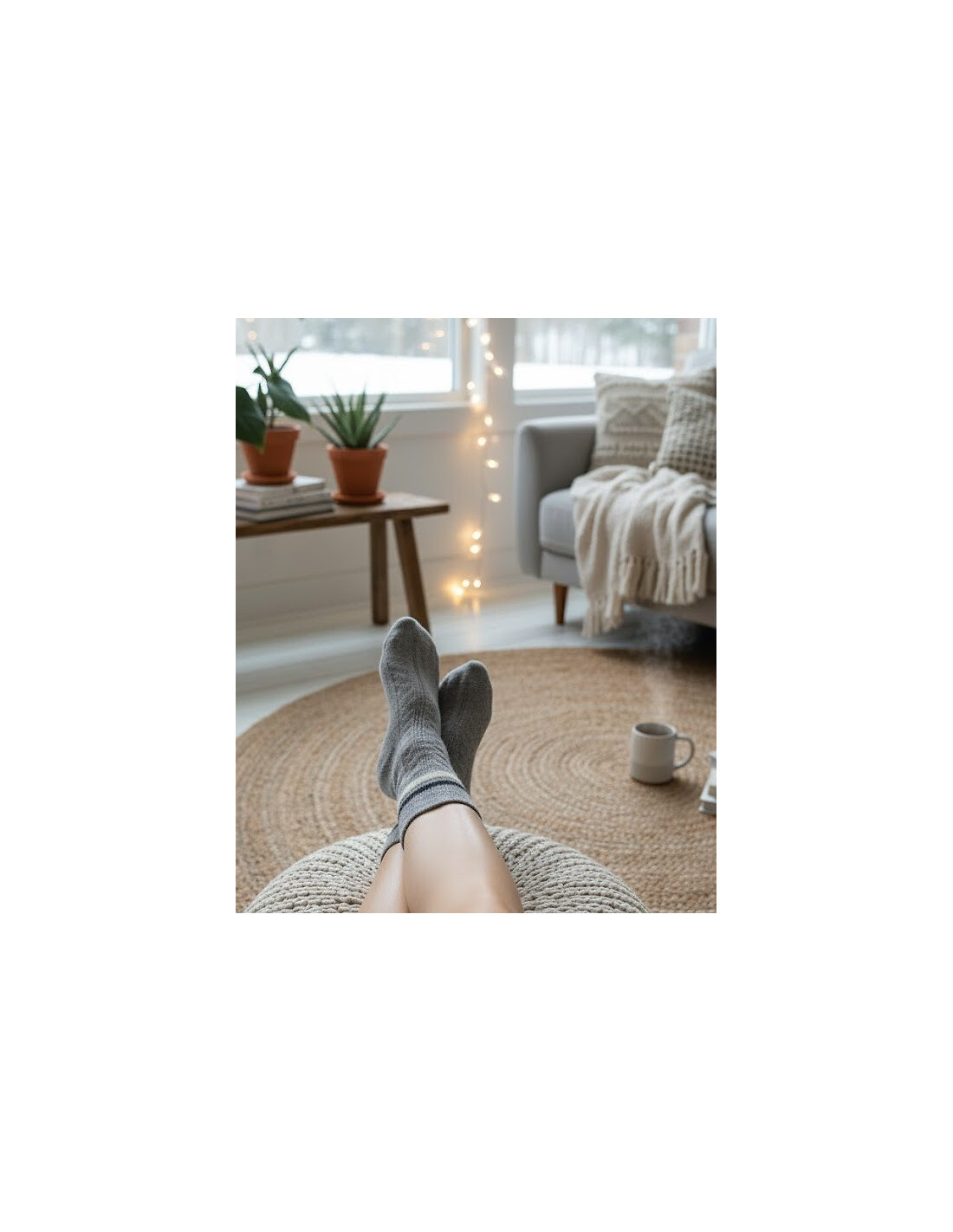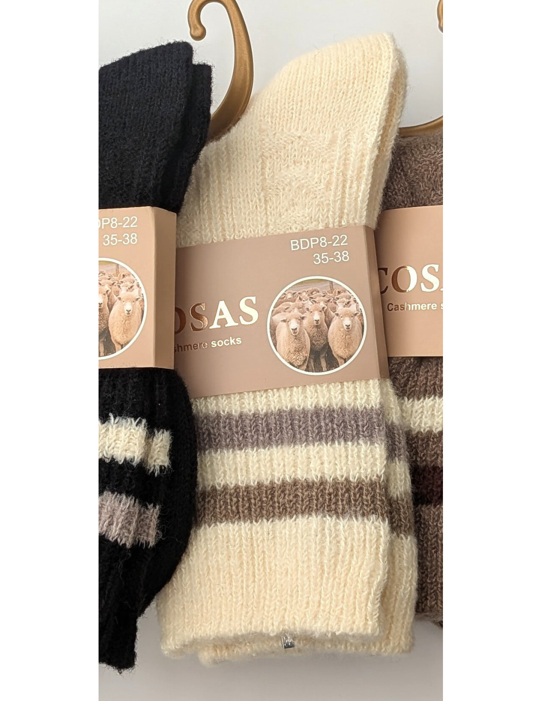 Moteriškos žieminės kojinės - minkštas trikotažas su vilnos priedais - dekoruotos įspaustu raštu ir juostelėmis - patogus briaunavimas
