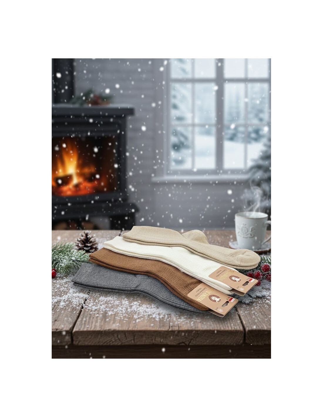 Moteriškos žieminės kojinės - minkštas trikotažas su kašmyro priedu - briaunuotos - patogus briaunuotumas