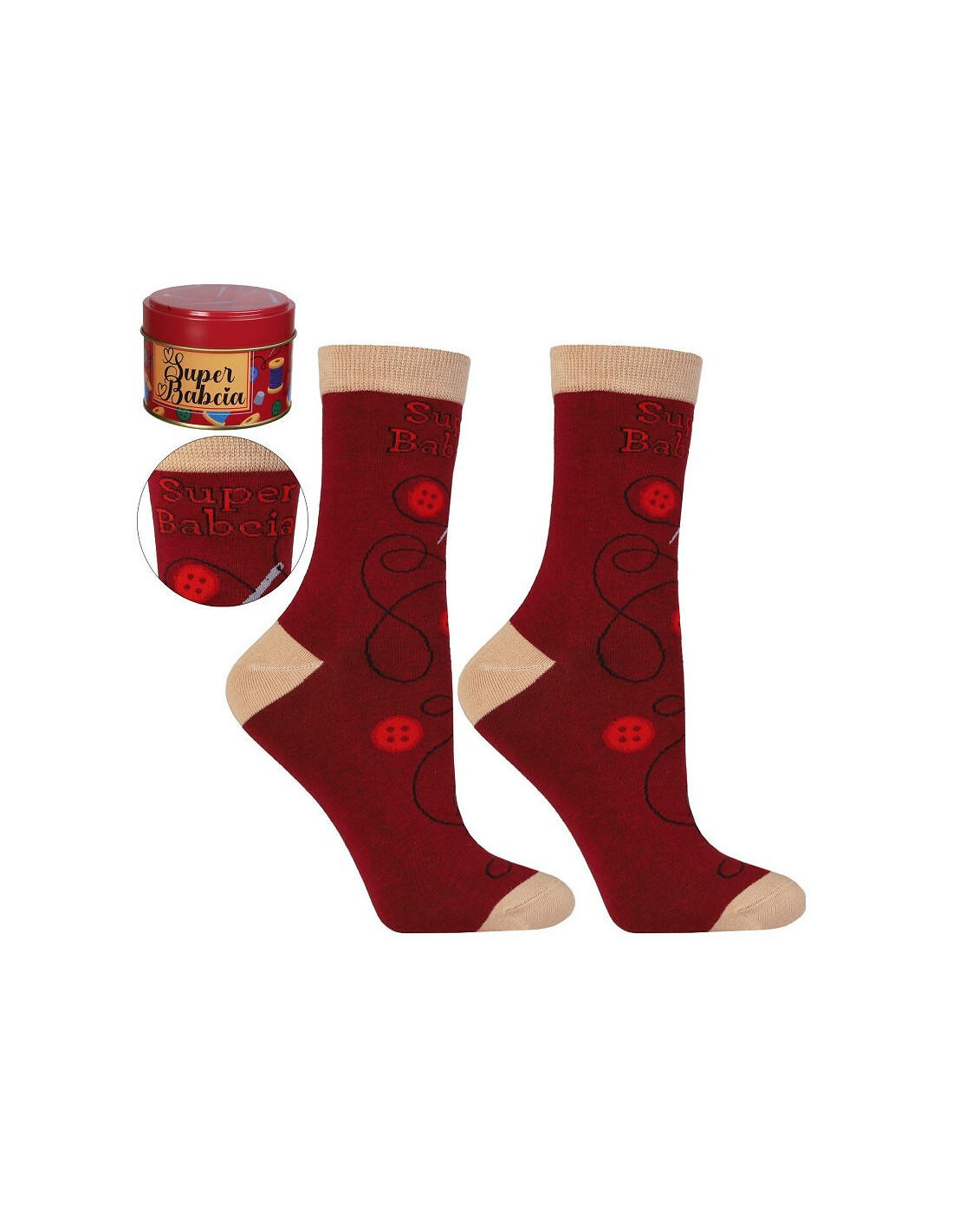 Moteriškos kojinės - aukštos kokybės medvilnė - dekoruotos užrašu Super Granny - supakuotos į skardinę - idealiai tinka dovanai