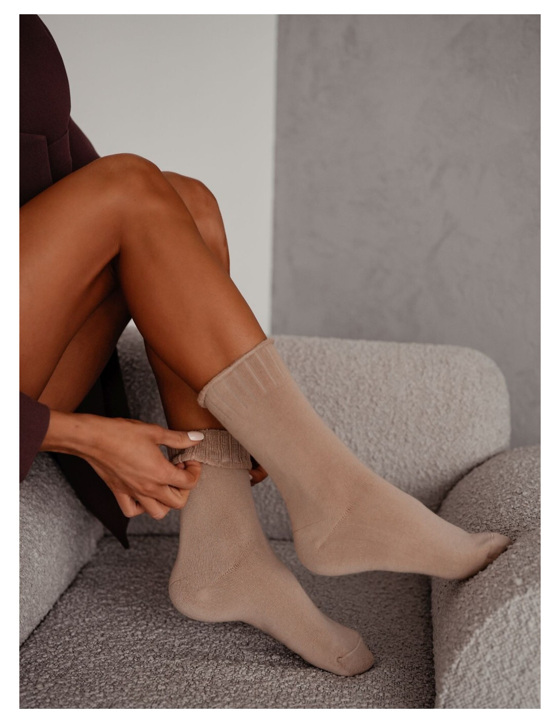 Moteriškos žieminės kojinės - šiltas frotinis audinys vidinėje pėdos pusėje - briaunuotas, nespaudžiantis raištis - gali būti pasukamos į viršų