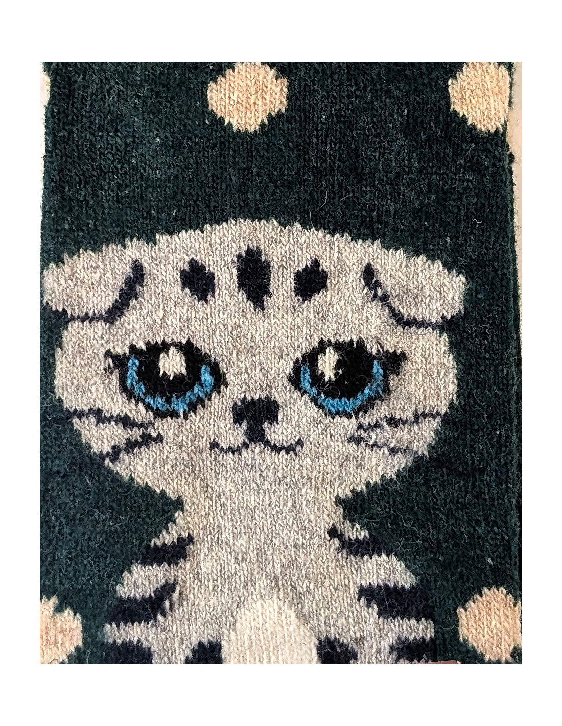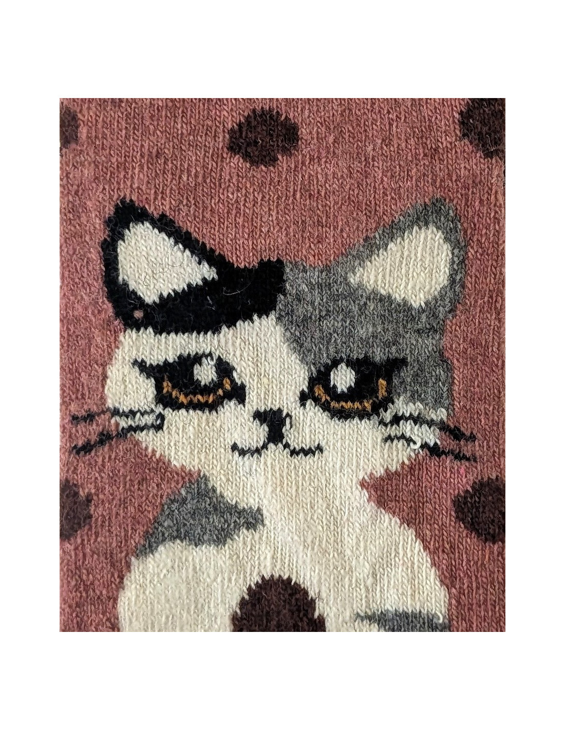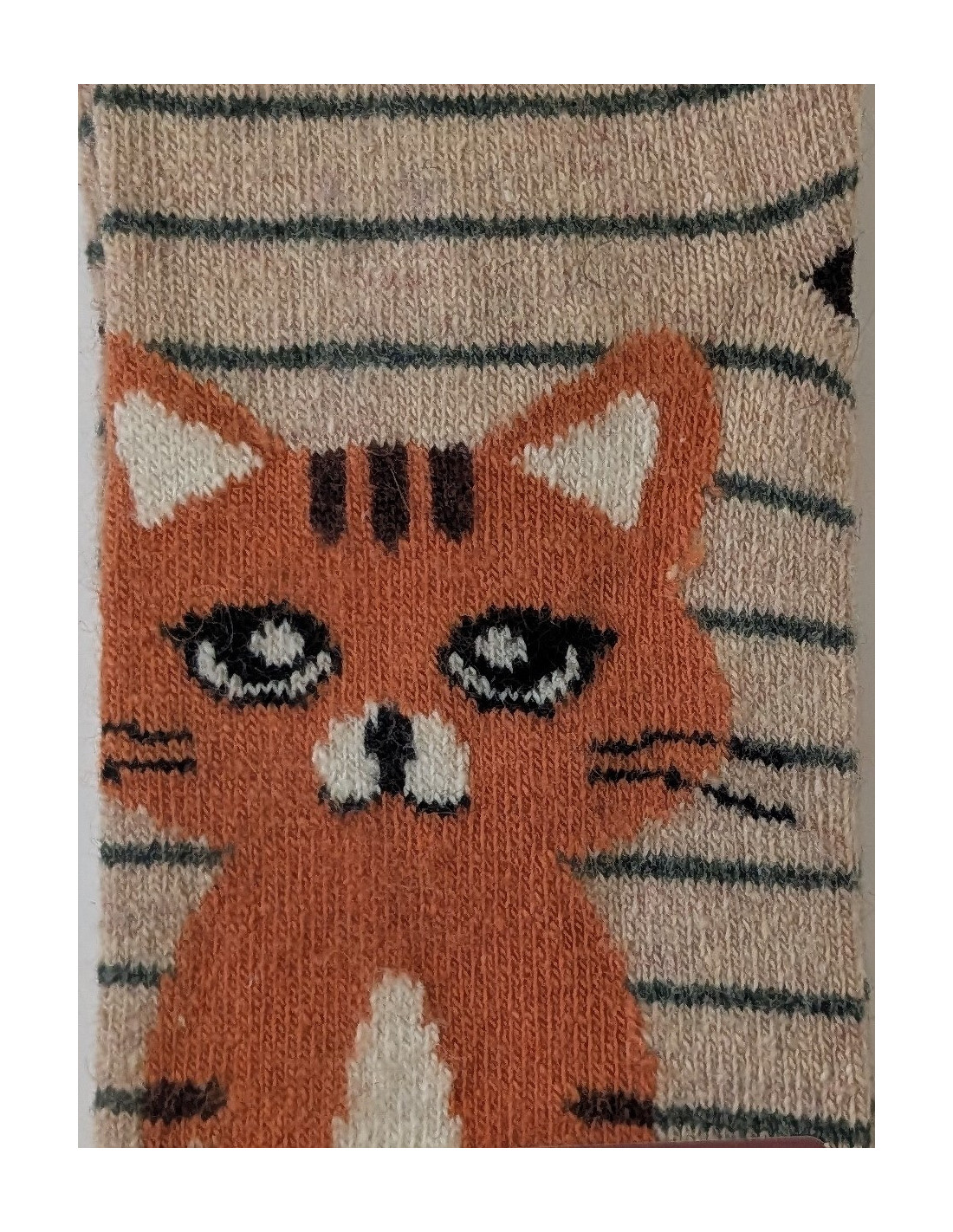 Moteriškos kojinės - šiltas žirnių arba dryžių trikotažas - dekoruotos katėmis - nespaudžiantis apvadas