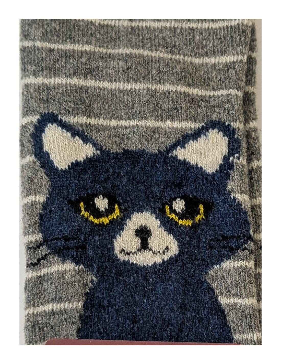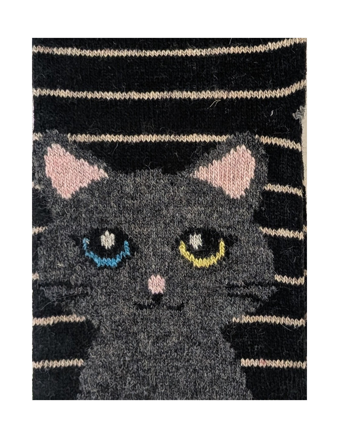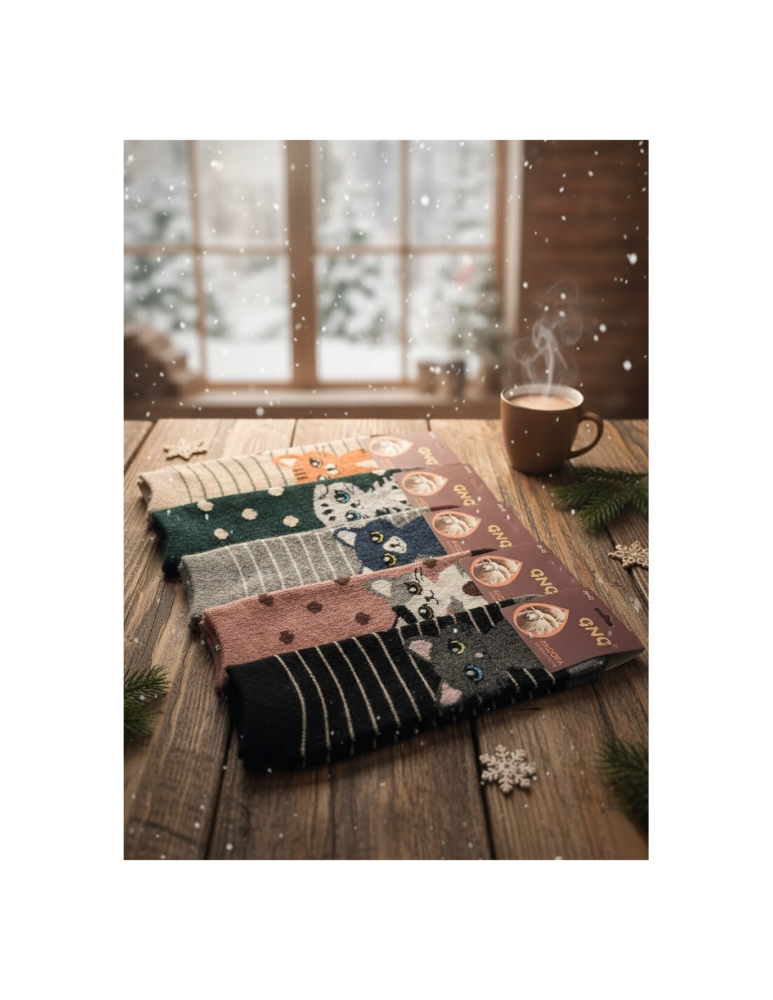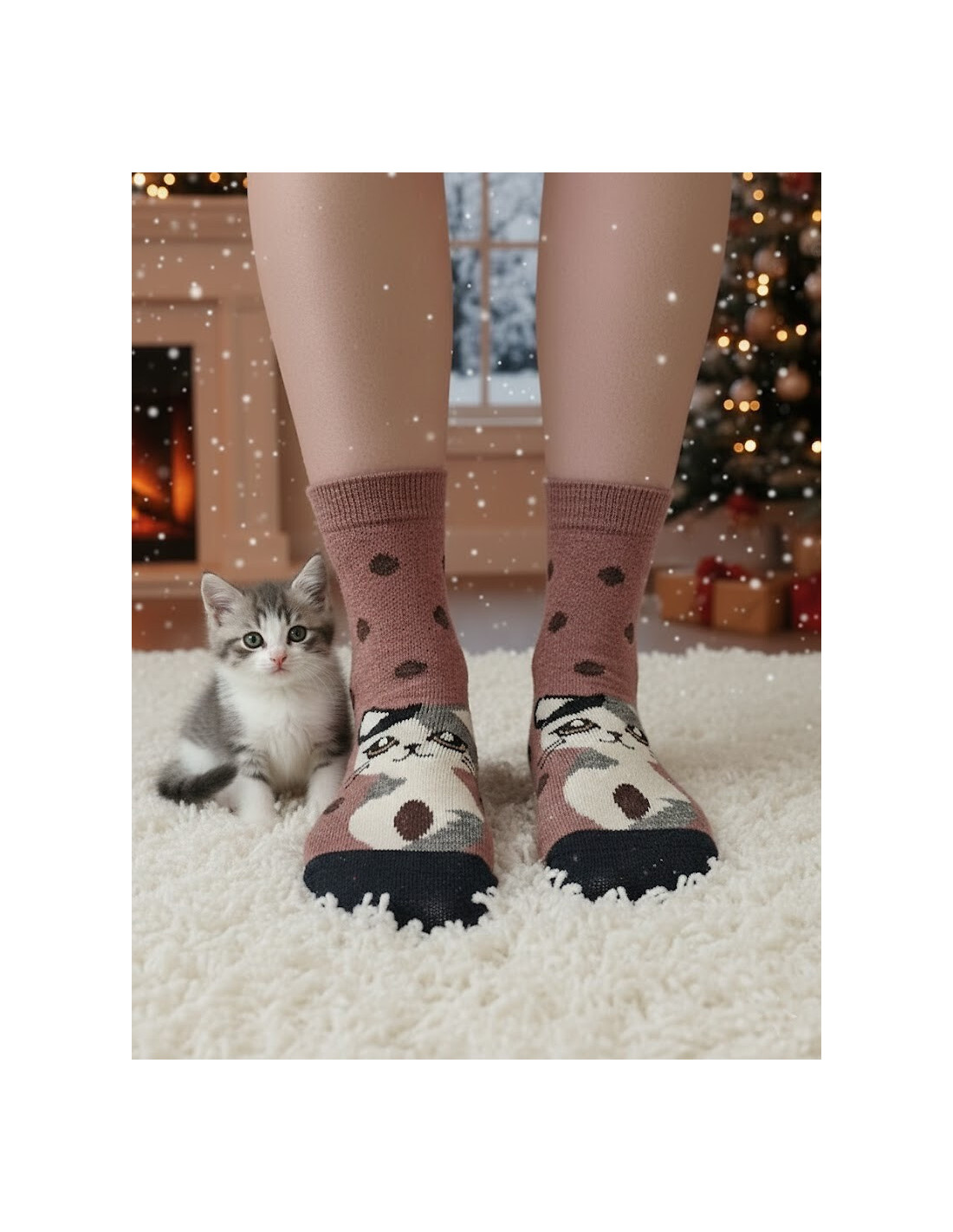 Moteriškos kojinės - šiltas žirnių arba dryžių trikotažas - dekoruotos katėmis - nespaudžiantis apvadas