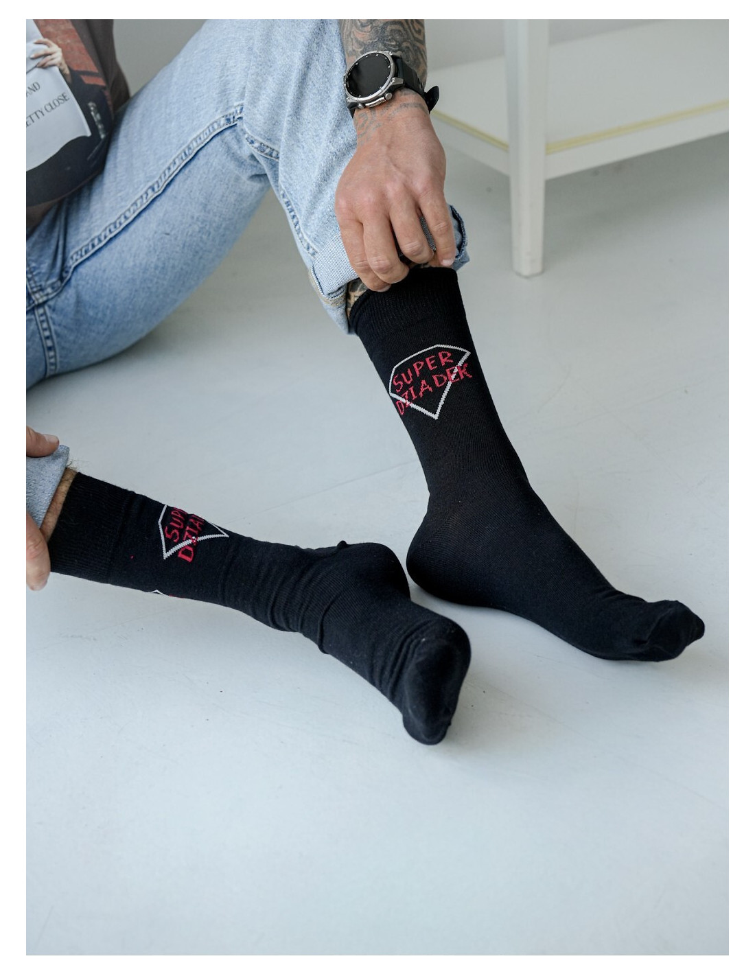 Skarpety z kolorowym nadrukiem - idealus na prezent z okazji Dnia Dziadka - płasko łączone szwy - nieuciskający ściągacz