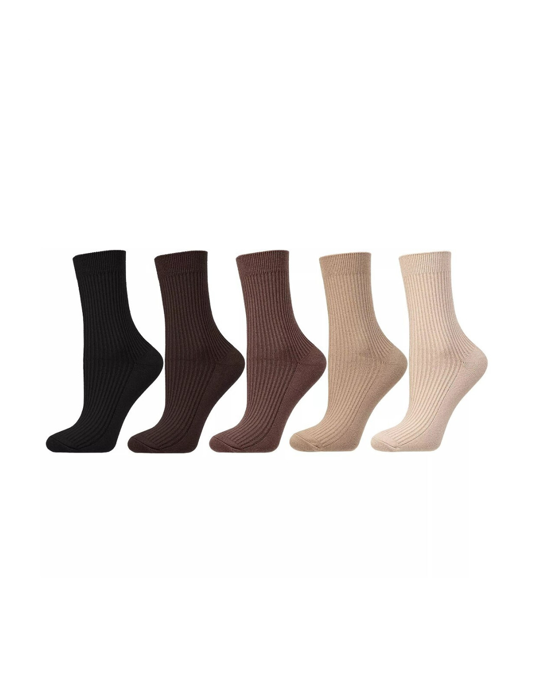 Skarpety damskie - wykonane z miłej w dotyku dzianiny - miękka dzianina w drobny prążek - dostępne kolory: czarny, brązowy, jasny beżowy, ciemny beżowy, czekoladowy - wybierane losowo