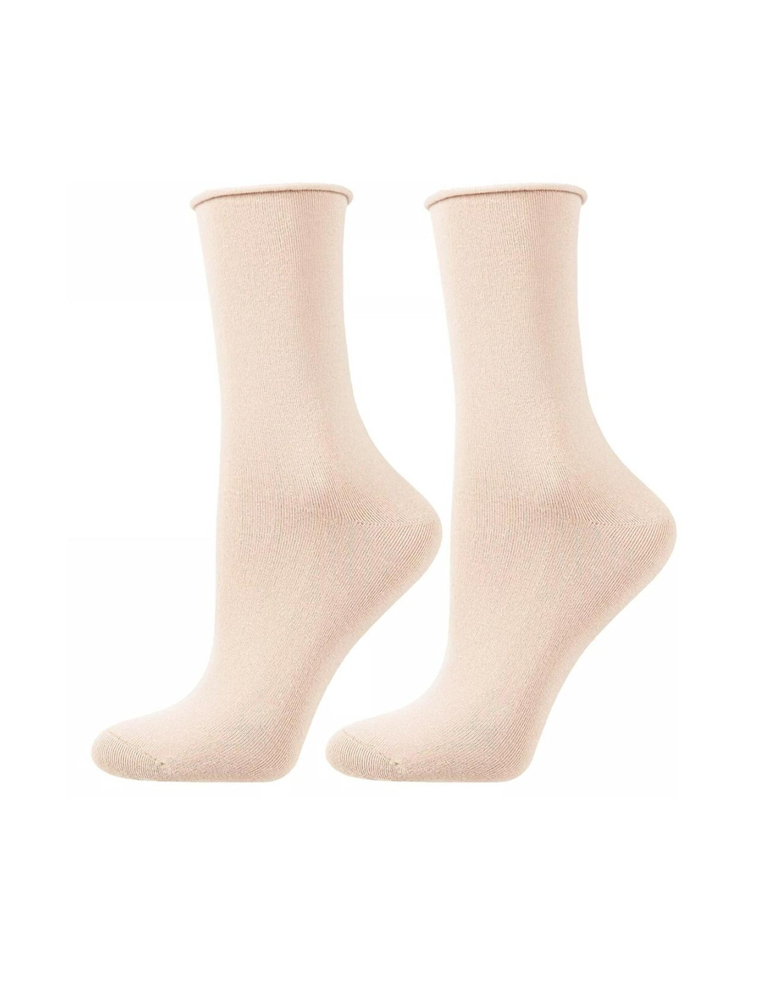 Skarpety damskie - wykonane z miękkiej bawełny - idealiai przylegają do stopy - bezuciskowe wykończenie - bardzo miłe w dotyku - dostępne kolory, wybierane losowo: beżowy, ecru, czarny