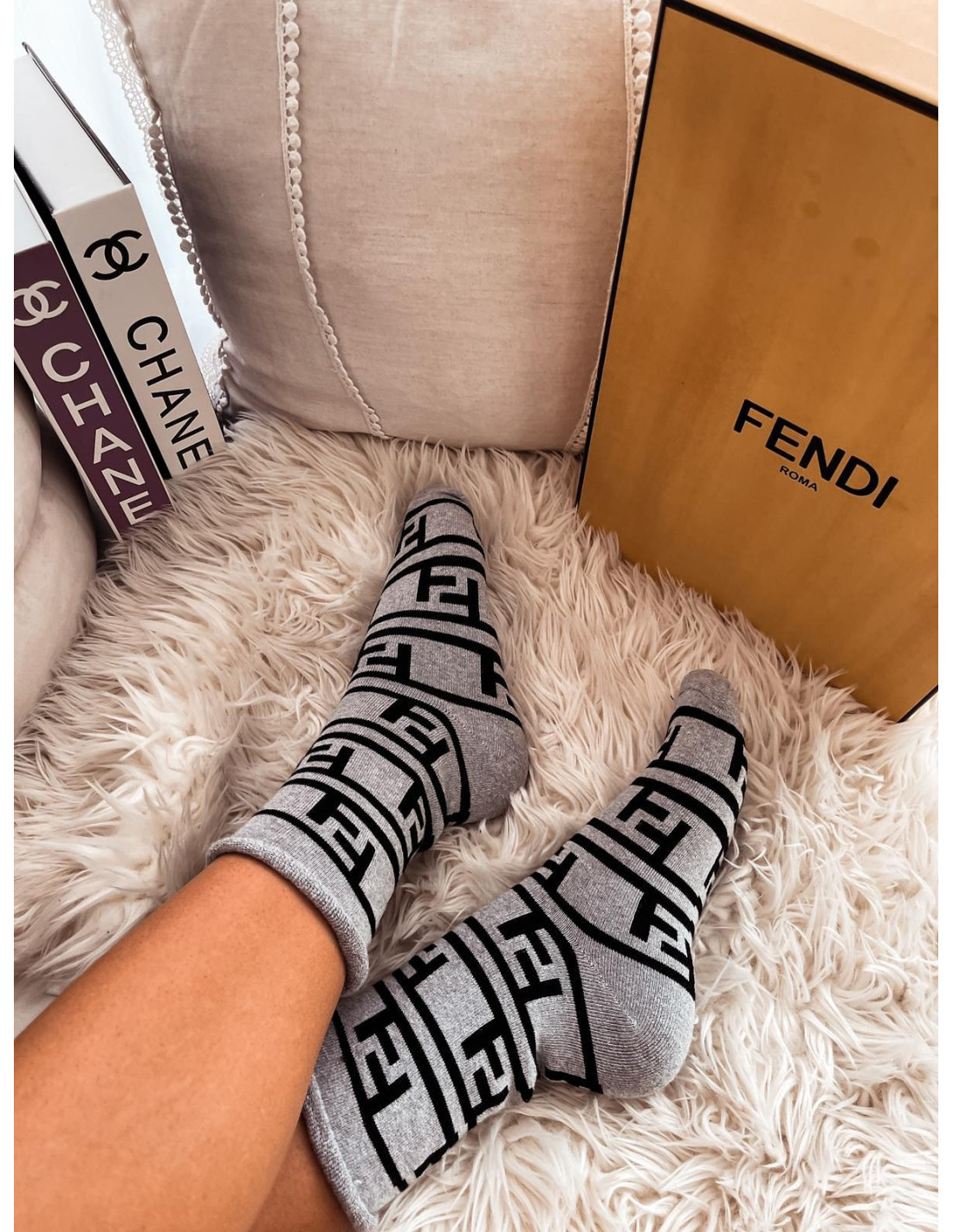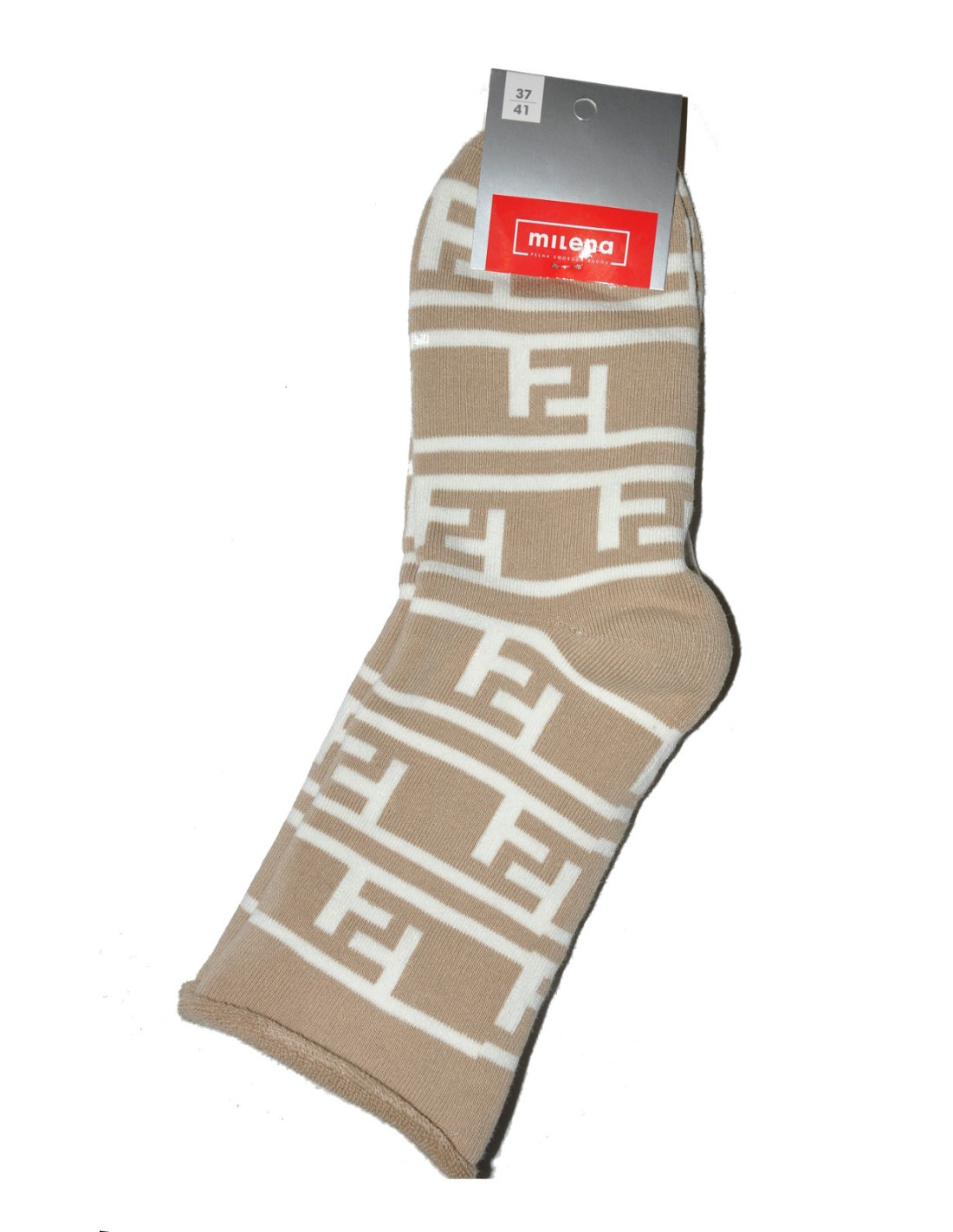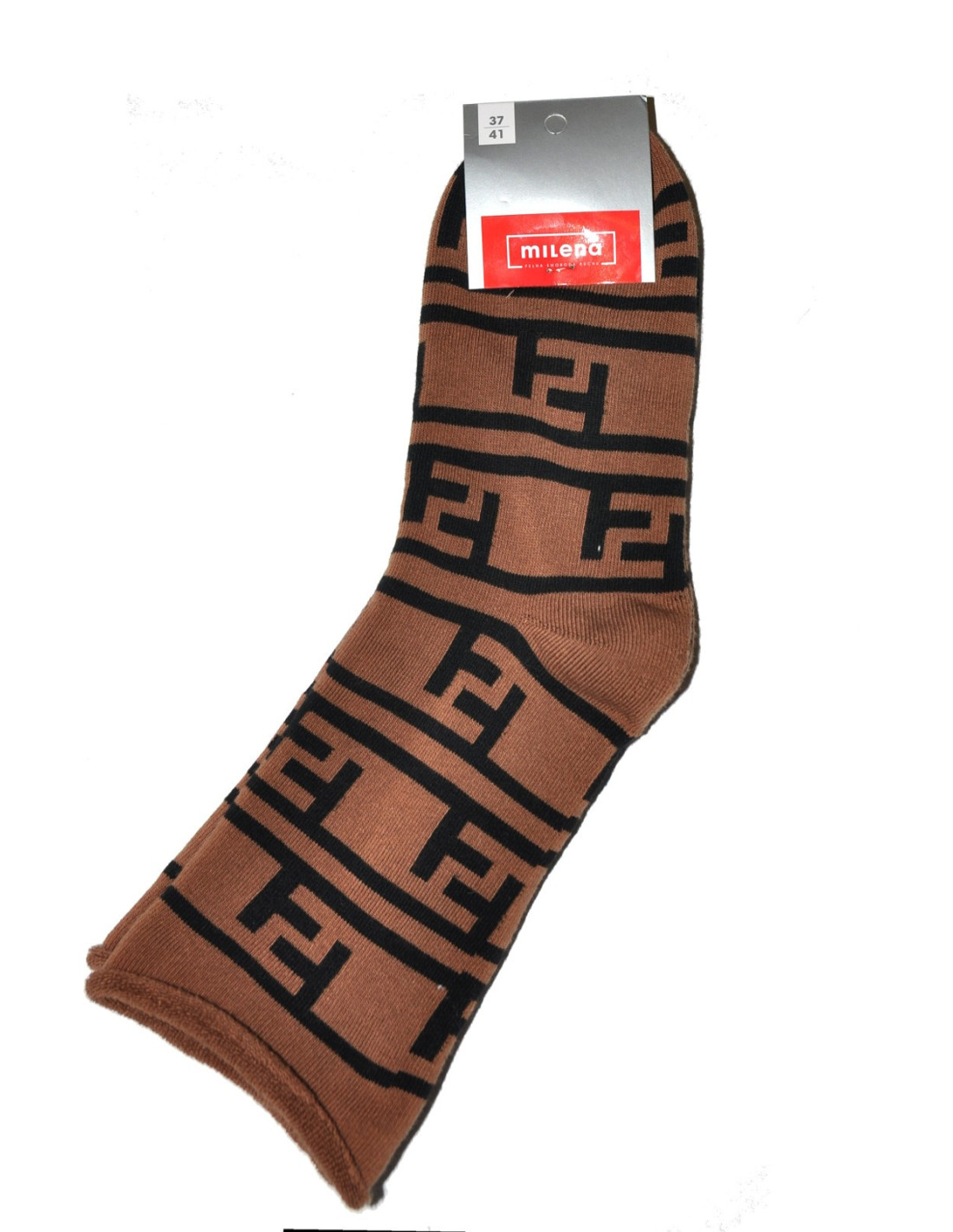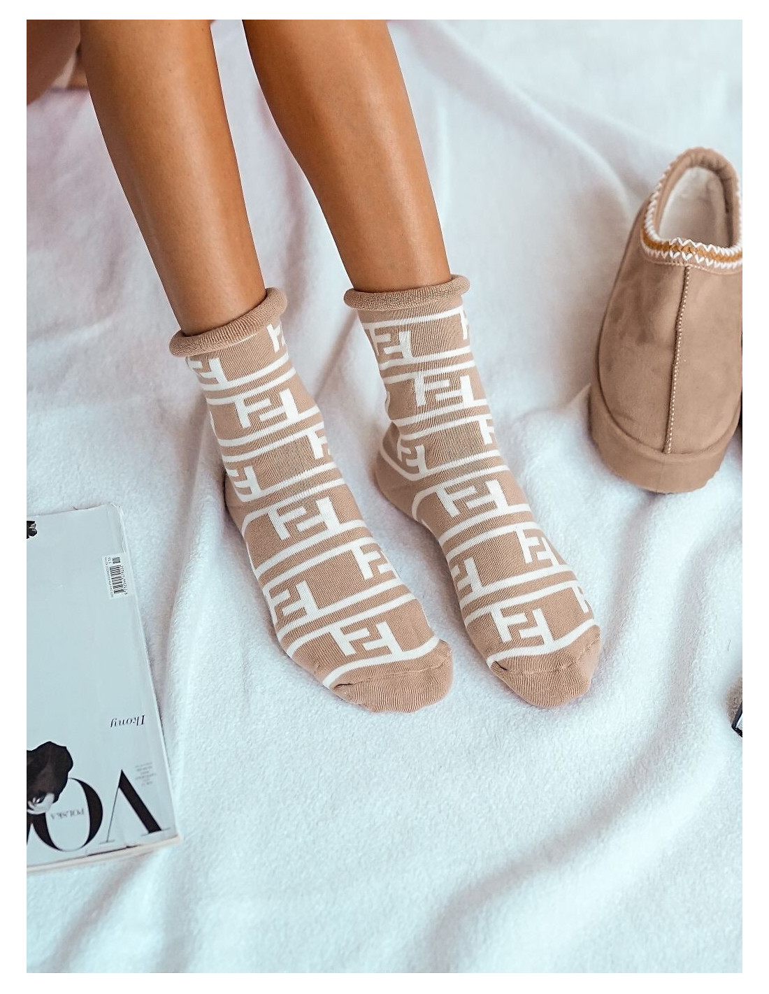 Skarpety damskie na zimę - ozdobione geometrycznym wzorem - od wewnętrznej strony ciepła frotta - szeroki, bezuciskowy ściągacz