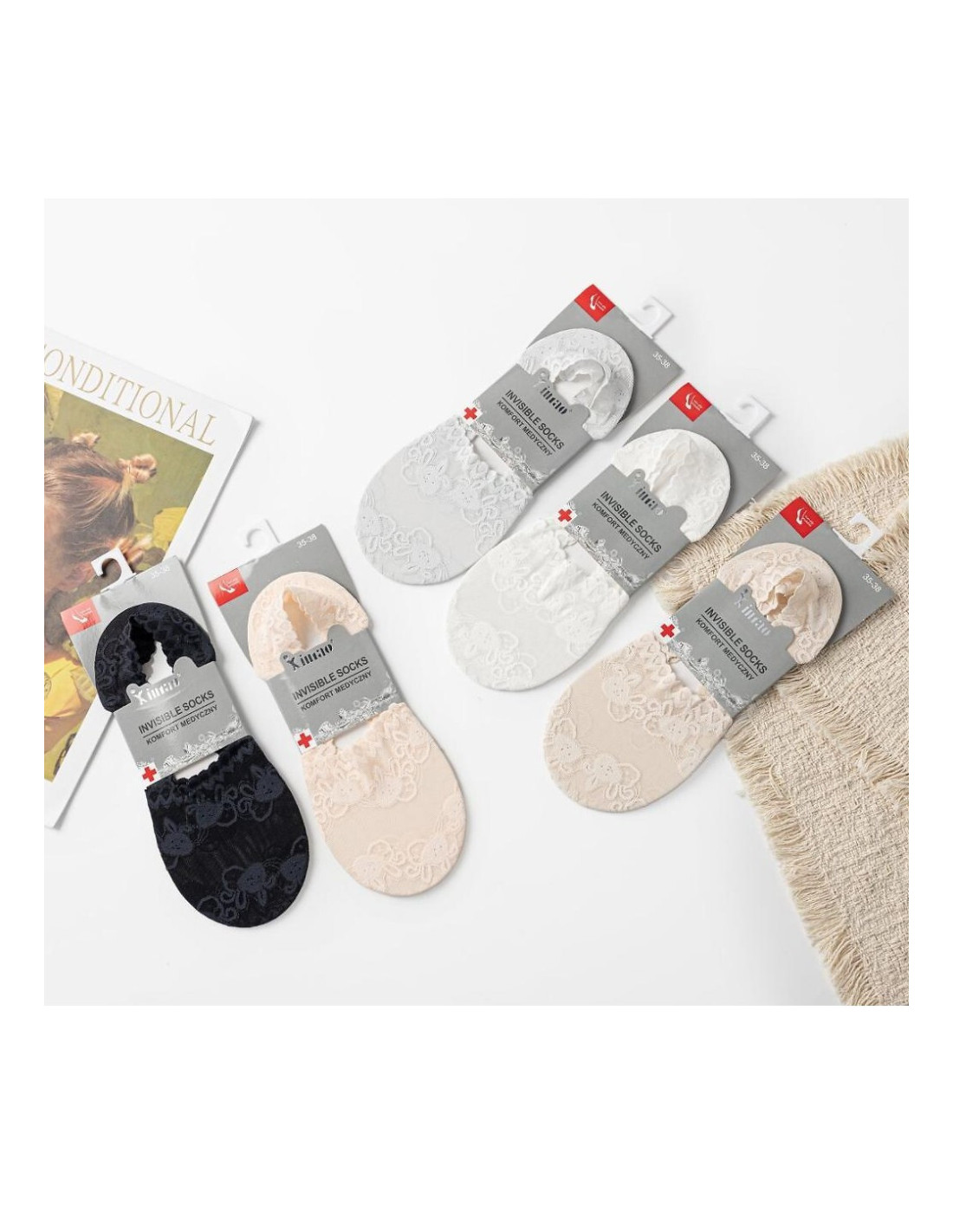 Skład: wierzch 95% bawełna, 5% elastan; podeszwa 88% bambus, 12% elastan
