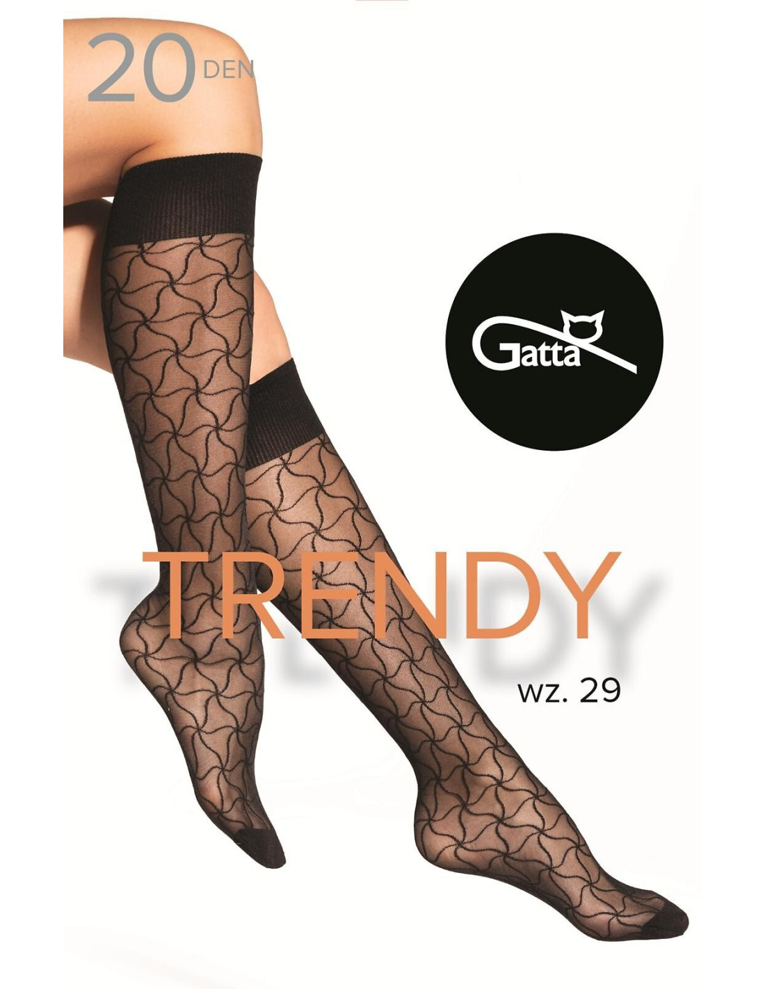 Podkolanówki damskie - grubość 20 den - efektowny wzór mozaiki - nieuciskający ściągacz