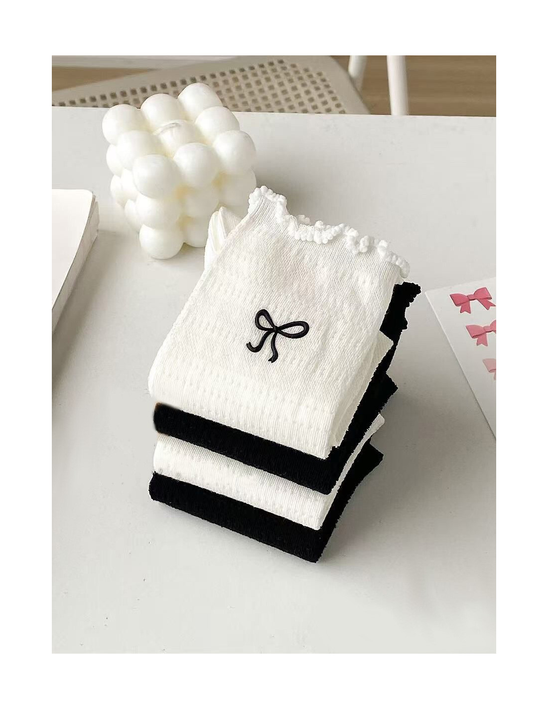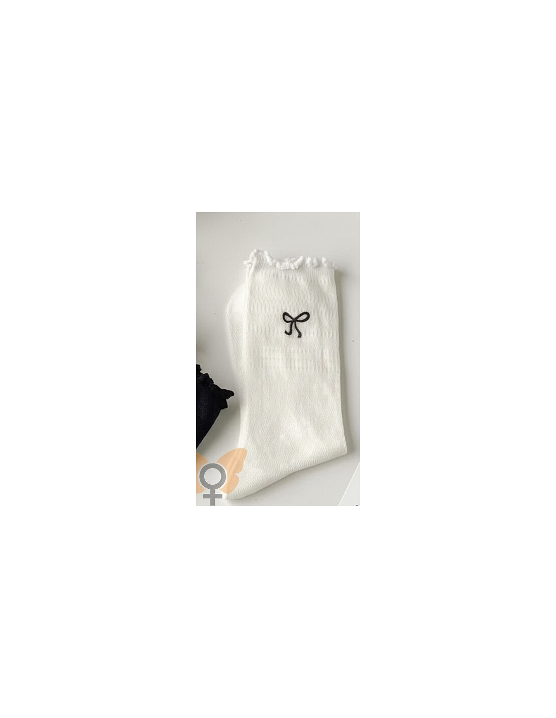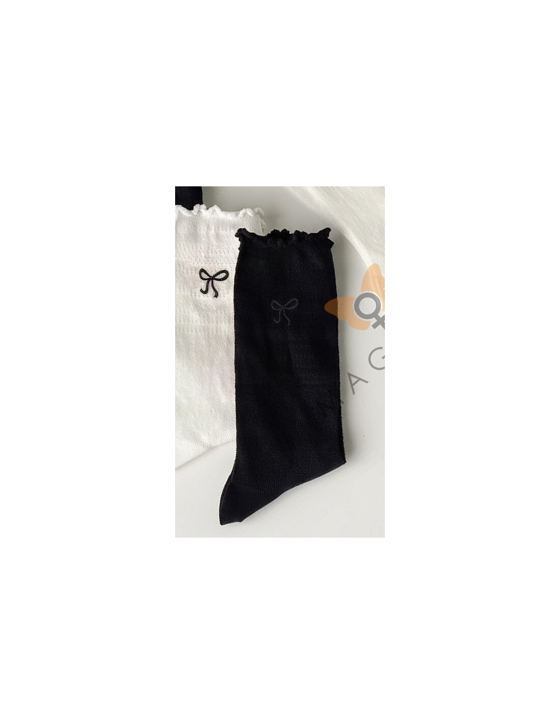 Skarpety damskie - wykonane z ażurowej bawełny - ściągacz wykończony falbanką - idealiai przylegają do stopy