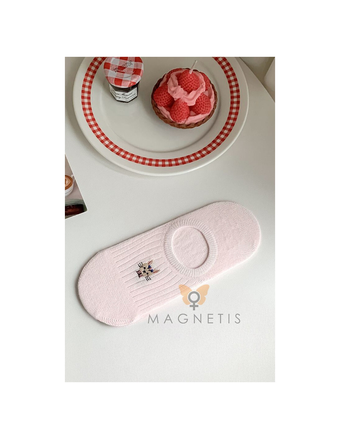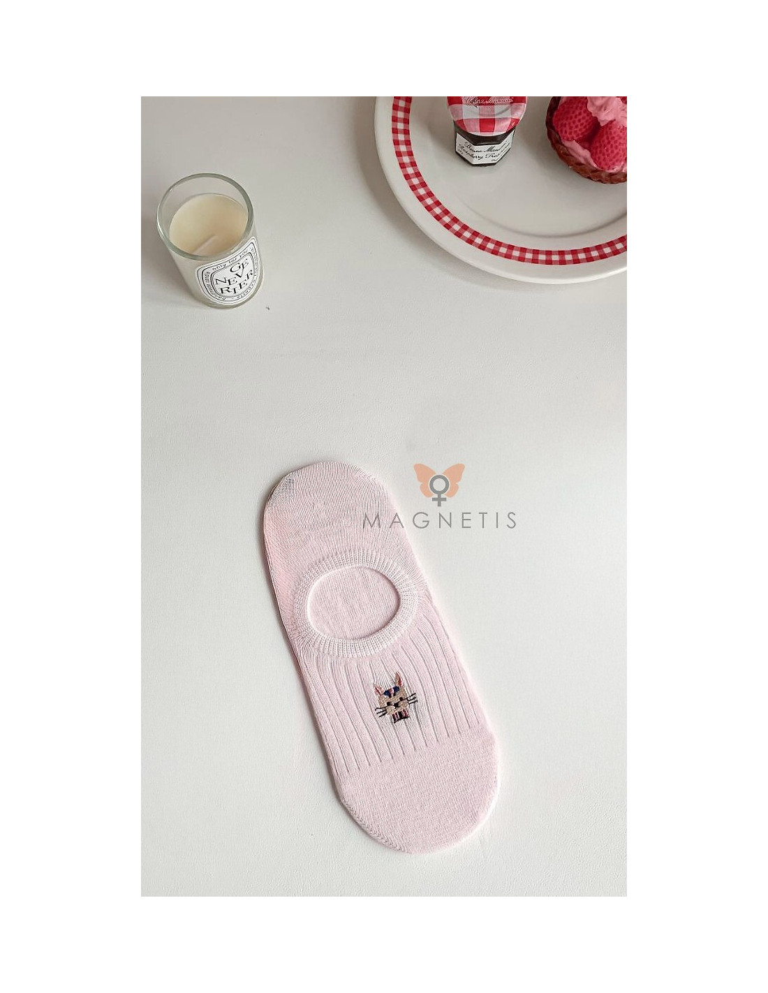 Bawełniane baleriny damskie - prążkowana dzianina - ozdobny haft z króliczkiem - płaskie szwy, nieuciskający ściągacz - na pięcie od wewnętrznej strony silikon zapobiegający zsuwaniu