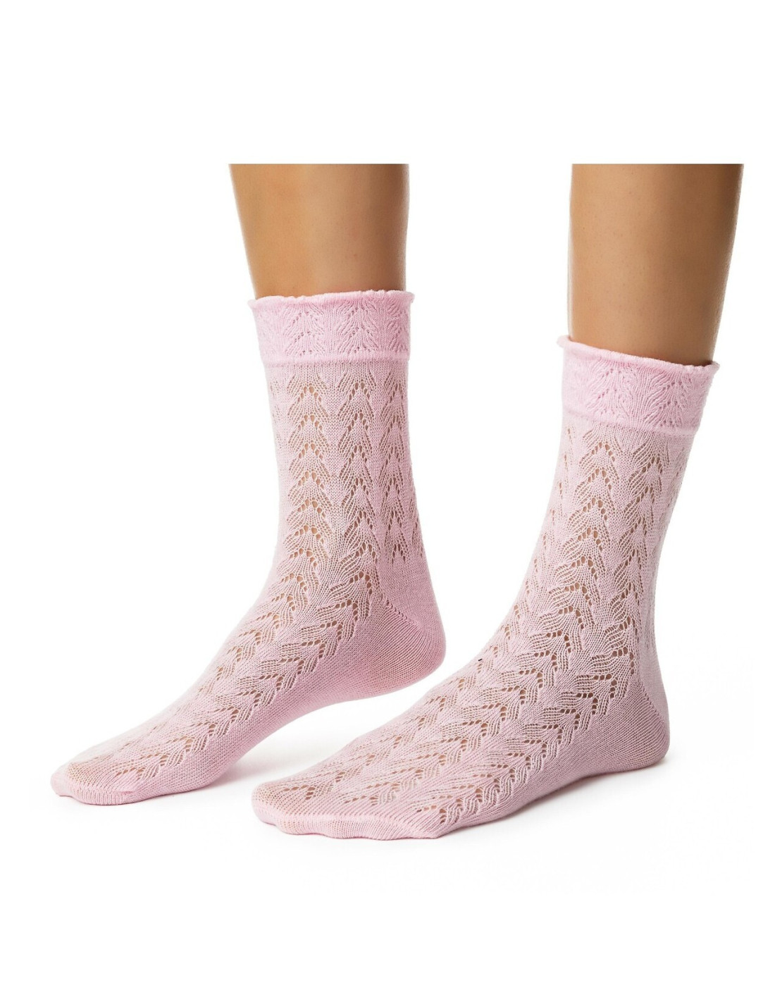 Skarpetki damskie - ozdobione ażurowym wzorem - z wyjątkowo miłej w dotyku bawełny - z nieuciskającym ściągaczem