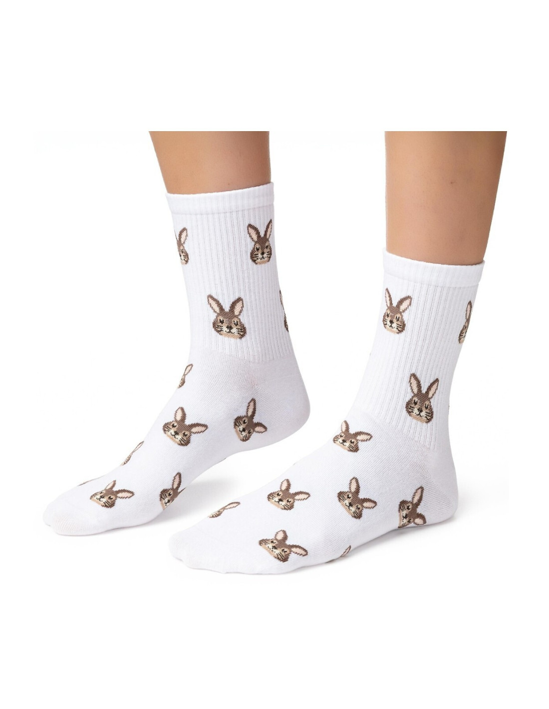 Skarpety damskie - z wysokiej kokybės przędzy bawełnianej - wzór w zajączki - technologia bezszwowych łączeń