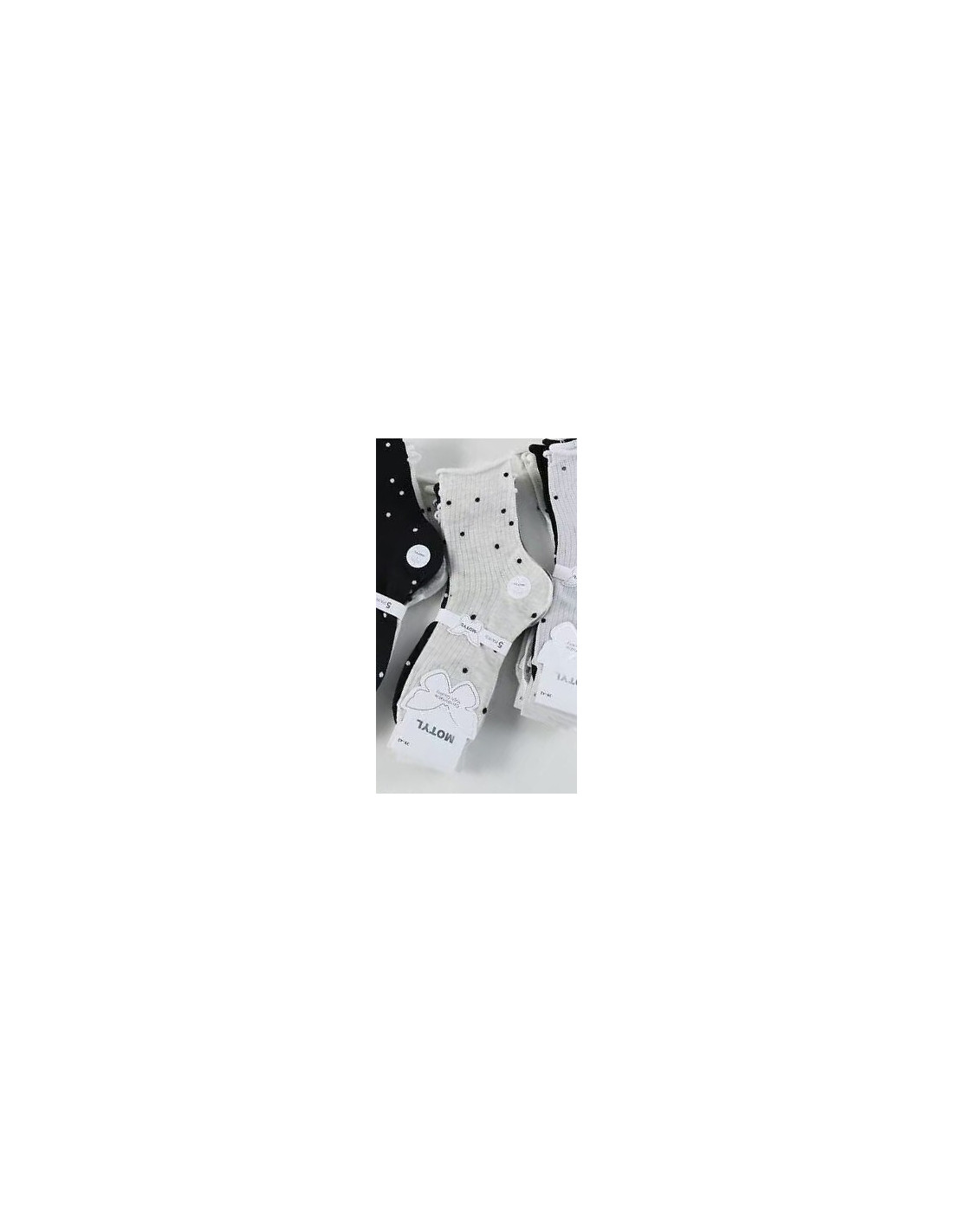 Bawełniane skarpetki damskie - prążkowane, ozdobione wzorem w kropki - wywijany, nieuciskający ściągacz - doskonale sprawdzą się w codziennych stylizacjach - idealiai dopasowują się do stóp