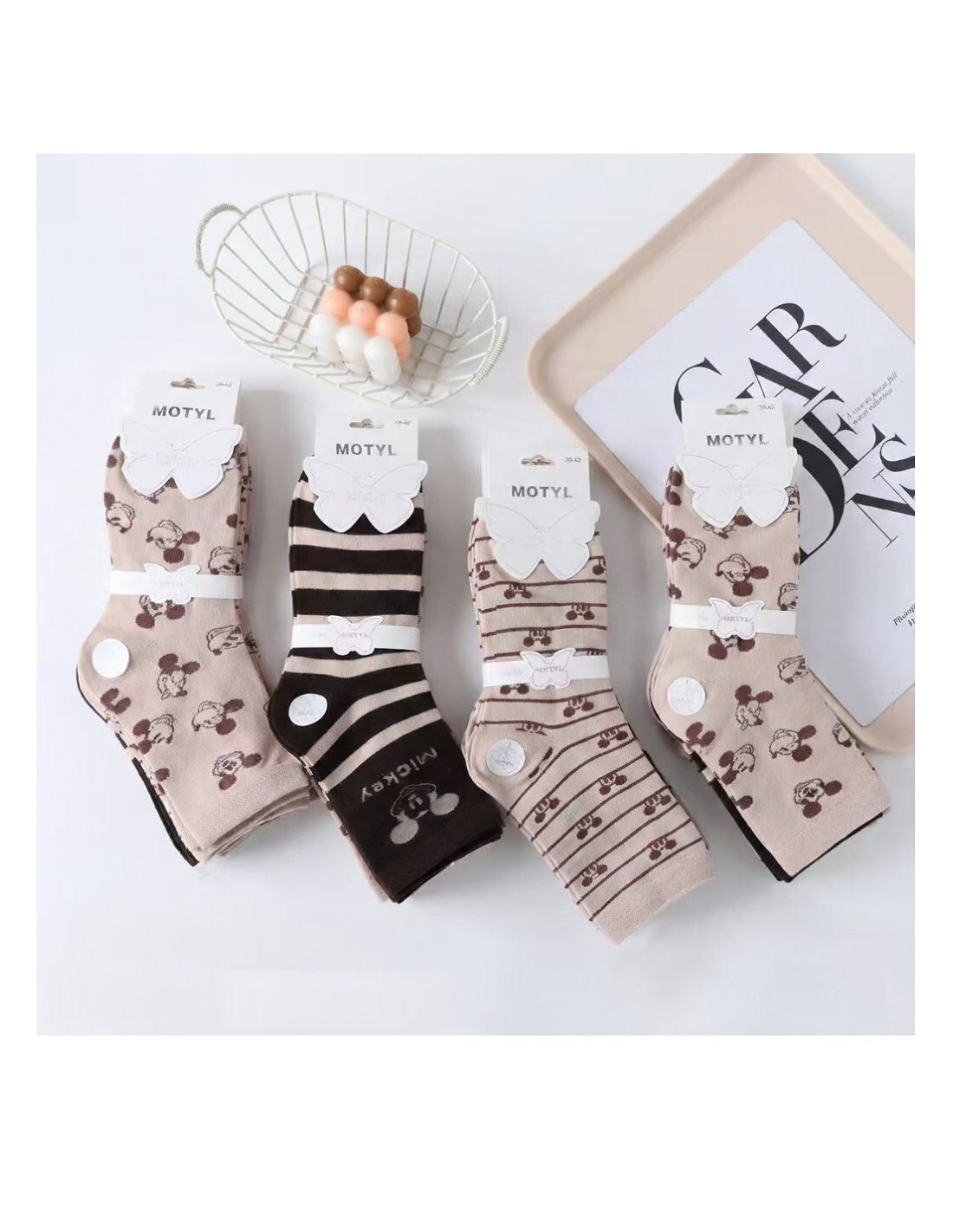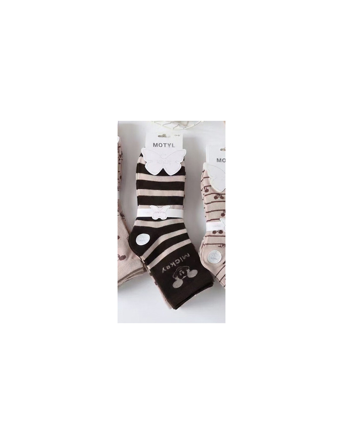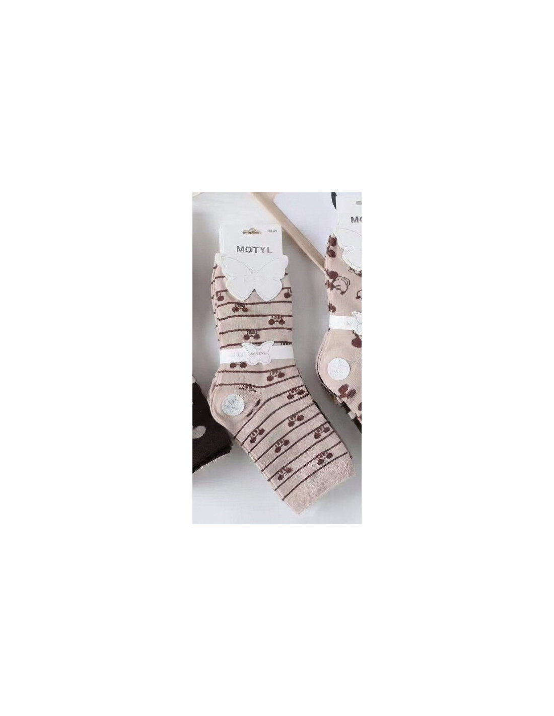Bawełniane skarpety damskie - ozdobione wzorami z myszką Mini - z nieuciskającym ściągaczem - płaski szew - wyprofilowana pięta