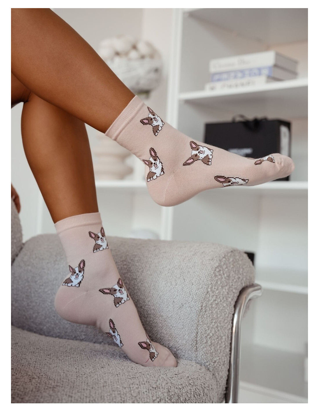 Skarpety damskie - aukštos kokybės bawełna - ozdobione kolorowym wzorem w pieski - idealiai przylegają do stopy