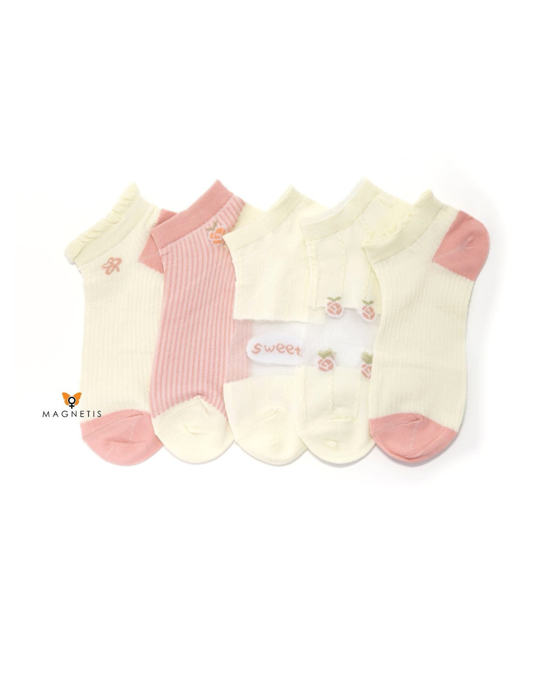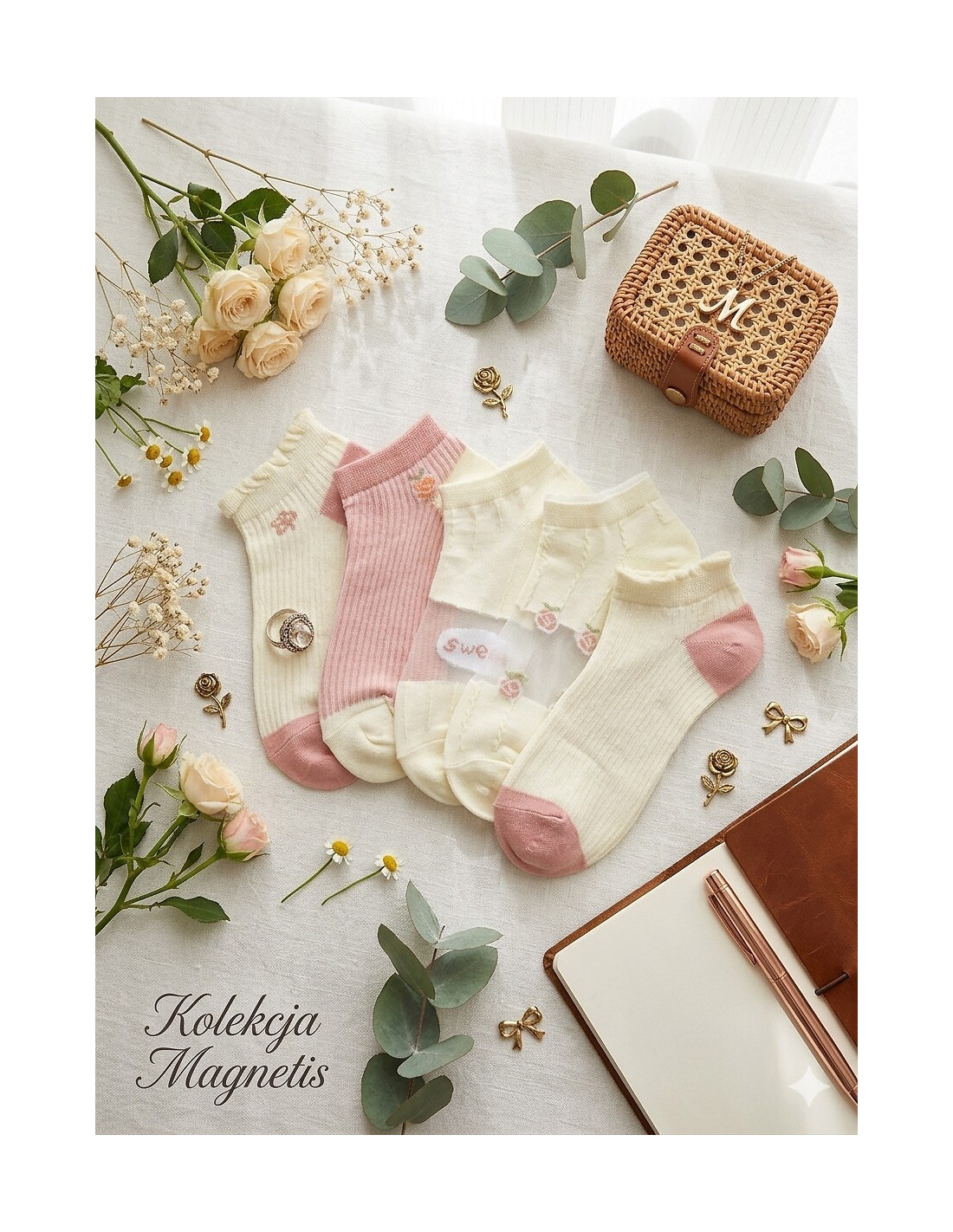 Bawełniane stopki damskie - ozdobione delikatnym wzorem - ściągacz różnie zakończony, w zależności od wzoru - idealiai przylegają do stopy - miłe w dotyku - kolor dostępny ecru, różowy ozdobiony wzorem w prążek, kwiatki, napisy